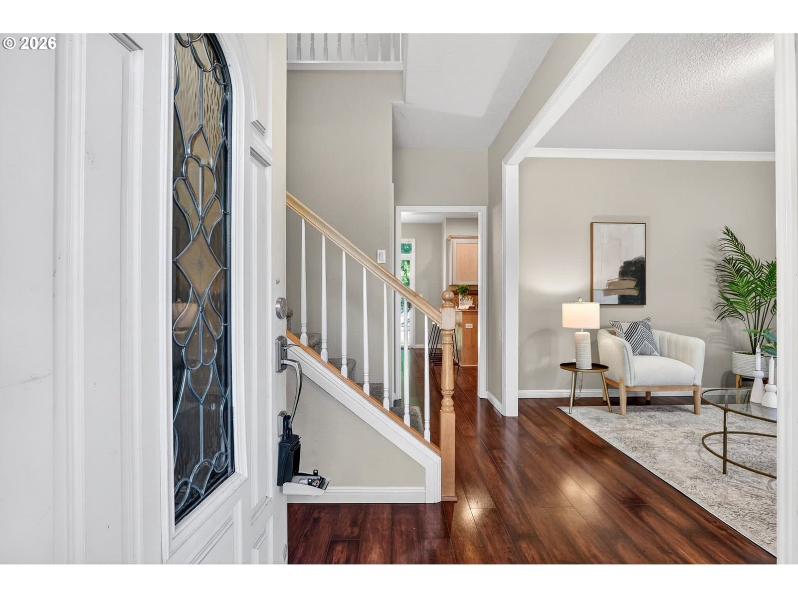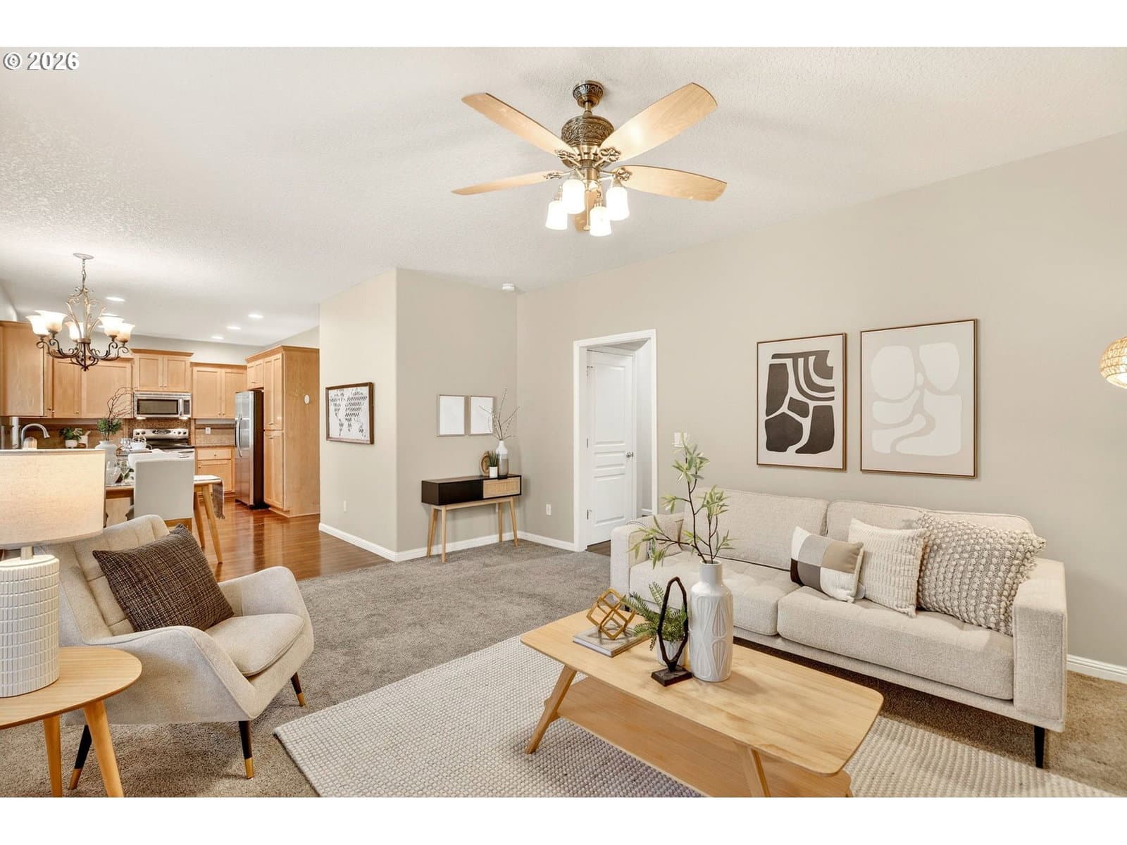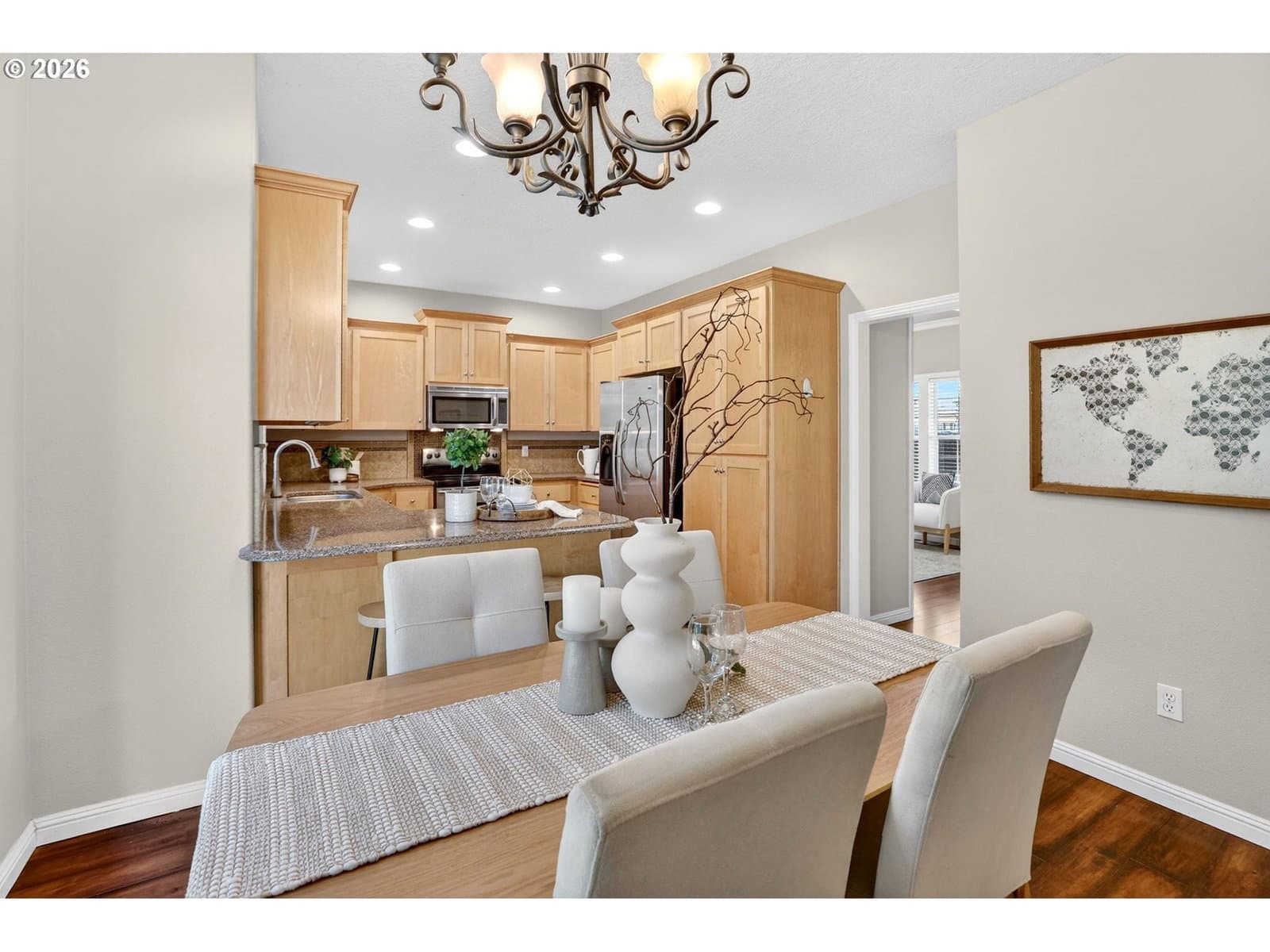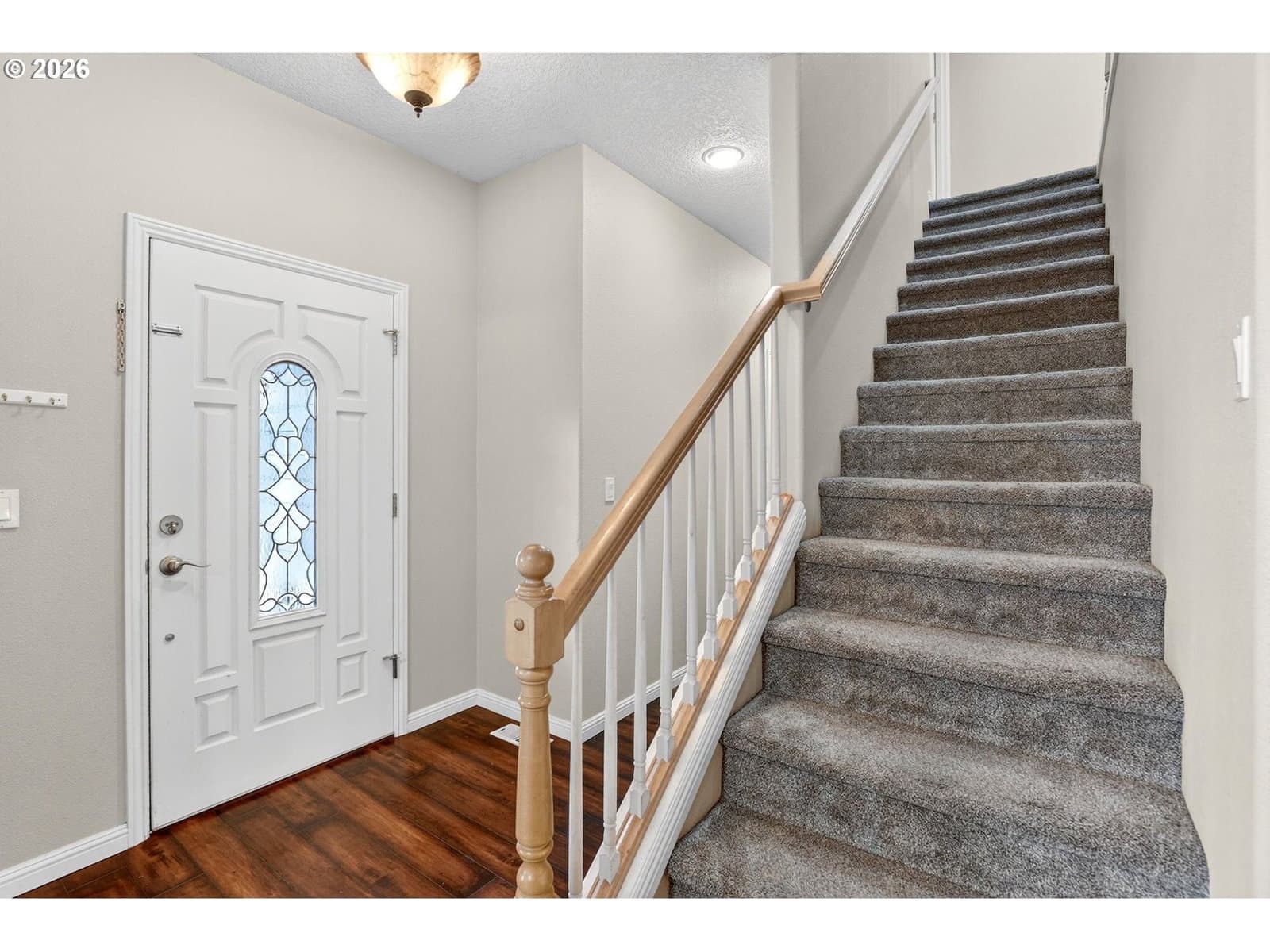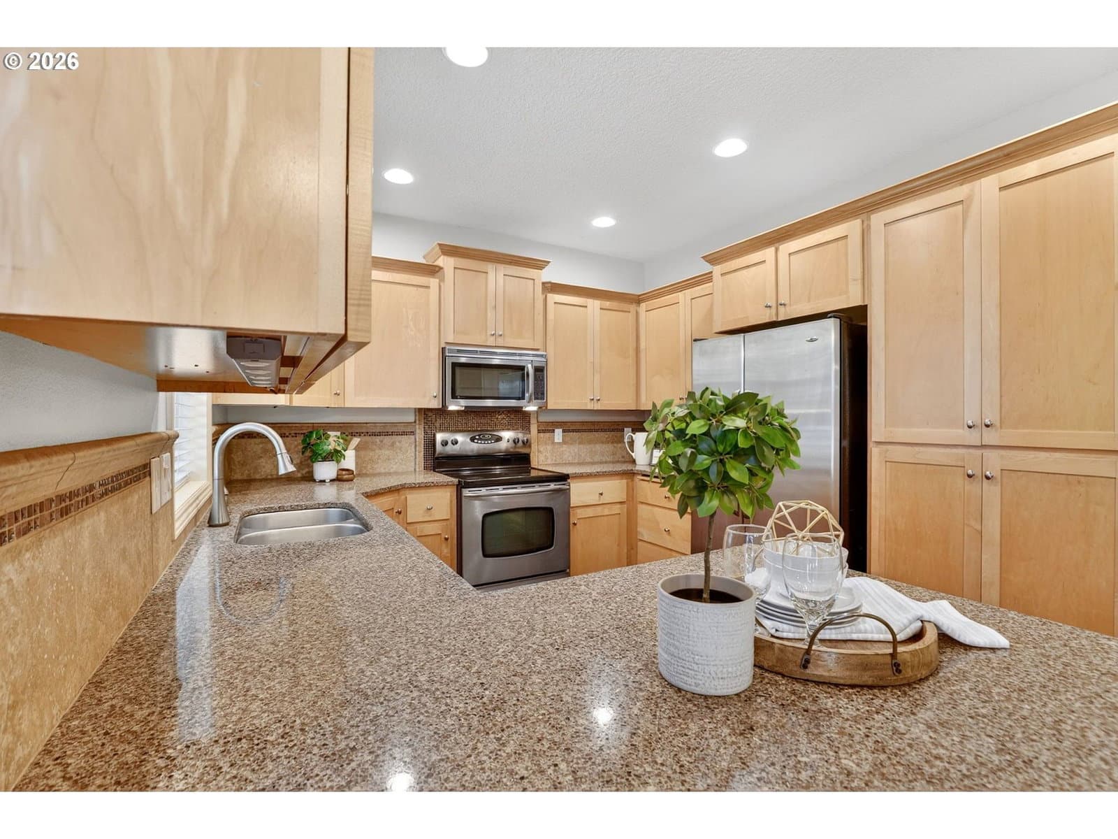This well-designed 2-story home offers comfortable everyday living with a spacious kitchen featuring granite countertops, stainless steel appliances, and an eating bar that opens seamlessly to the family room and dining area. A cozy fireplace anchors the space, while a sliding door leads to the fully fenced backyard for easy indoor-outdoor living. The generous primary suite includes a private bath with dual vanities, a jetted tub, and a large walk-in closet. Additional highlights include a main-level office, laundry room with utility sink and storage, oversized two-car garage, and ample parking with space for an RV or trailer, plus a side-yard shed. Interior paint and carpet were updated in 2020. Located within Union High School and the new Emerald Elementary boundaries.