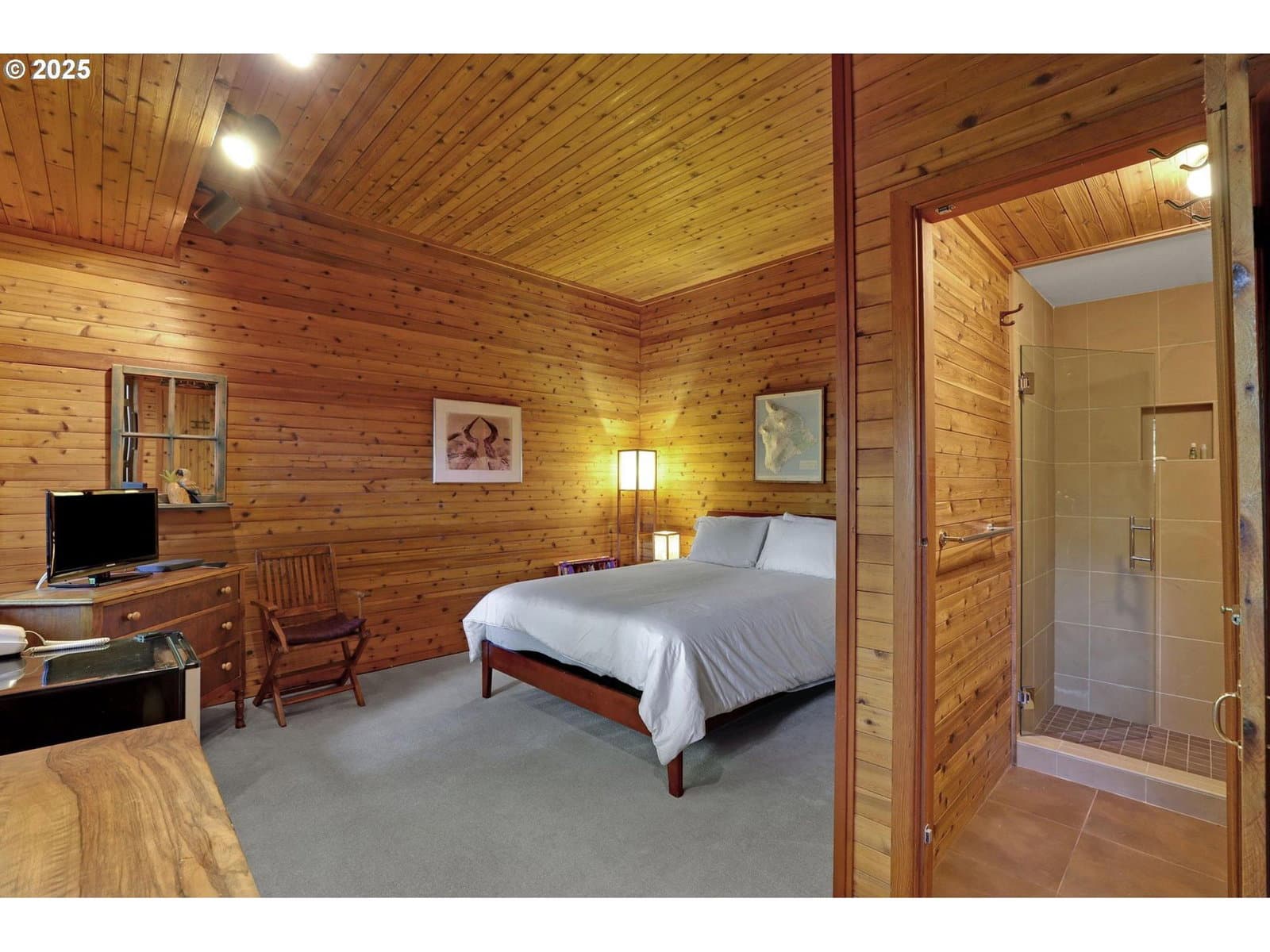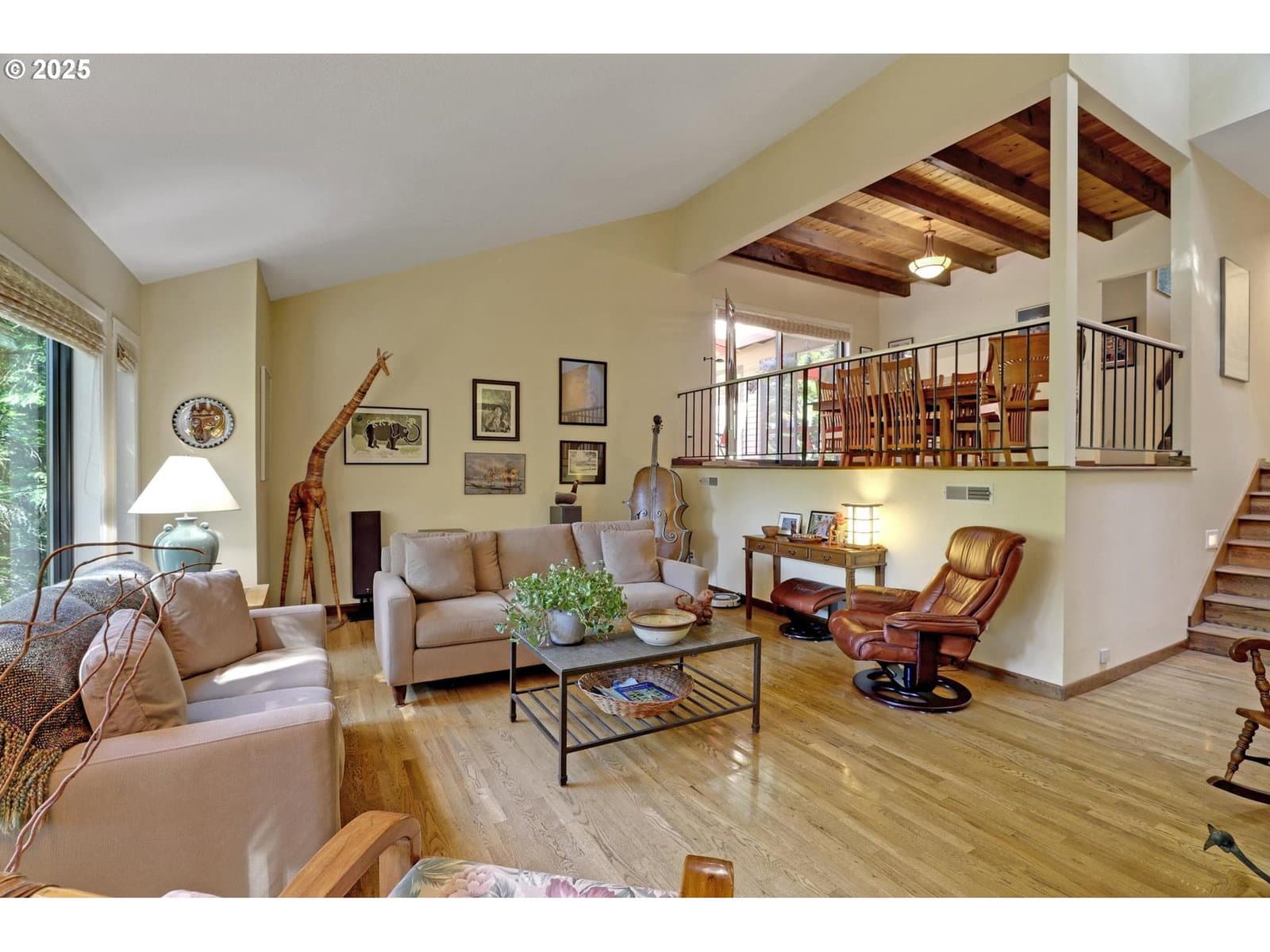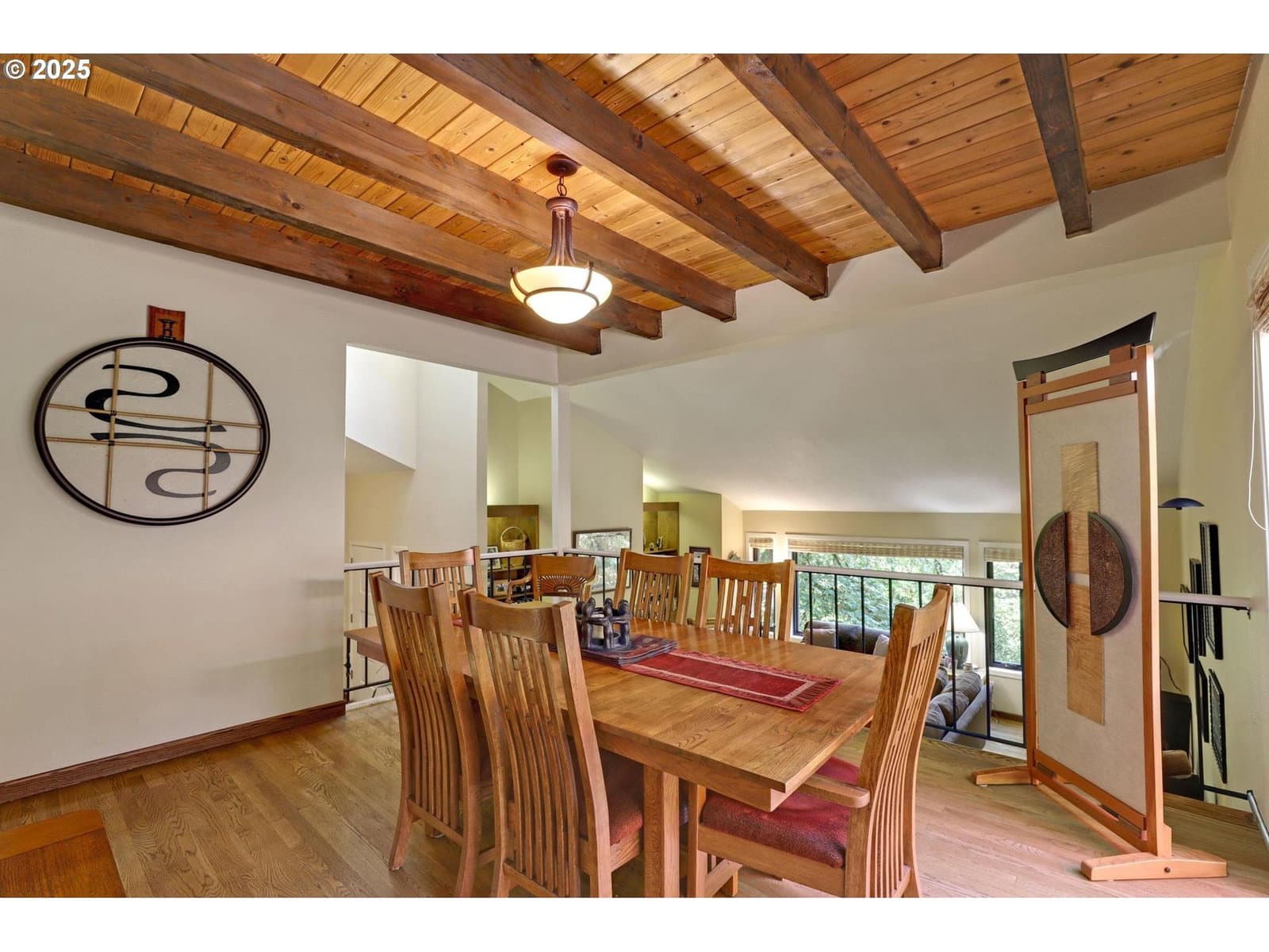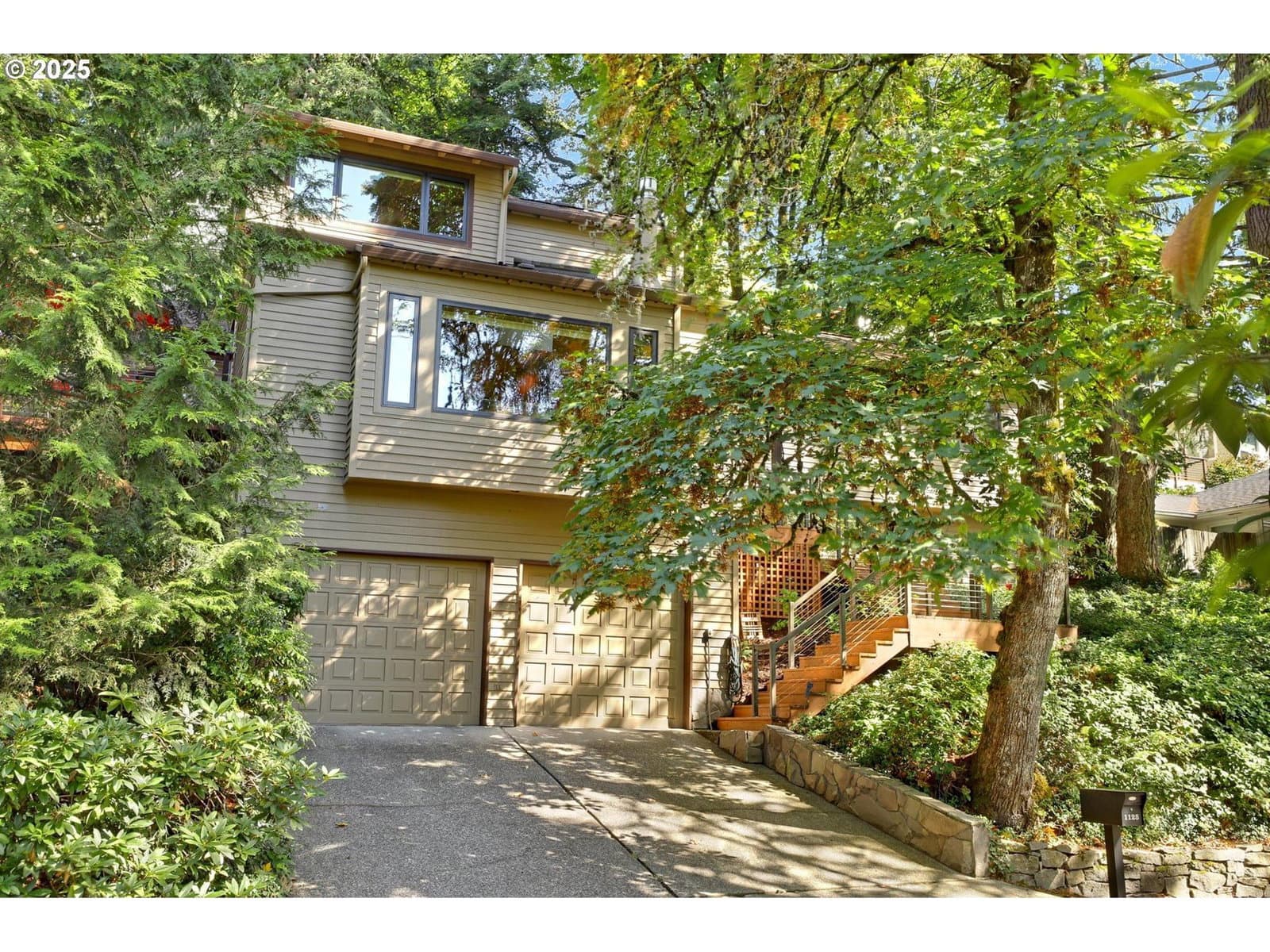 Architect designed NW Contemporary in the heart of the West Hills, perfectly situated between the Hillsdale shopping area, the Farmer's Market, a public library, transit, a short walk to the village, OHSU and the SW Trails. Filled with warm wood accents and soaring ceilings, and with walls of windows that bring the outside in, this home represents everything that the Pacific NW has to offer. The airy and open living and dining space is the heart of the home and has stunning vaulted ceilings, a gas fireplace, and sliding doors out to a sunny deck with forest views. Built to accommodate both elegant and casual entertaining, the kitchen features a Great Room, complete with vaulted ceilings, a wall of glass doors and a wood burning fireplace. The kitchen is a host's delight, with granite countertops, thoughtful storage, copious bamboo cabinets, double ovens, 5 burner gas cooktop and a breakfast bar. The primary suite features stunning South facing views of the forest with 2 walk-in closets, skylights and a special "port window" in the bath. There is a separate entrance to the guest suite, which features vintage cedar paneling in both the bedroom and bathroom. The two-car garage has plenty of space for vehicles and additional storage. [Home Energy Score = 1. HES Report at https://rpt.greenbuildingregistry.com/hes/OR10242008]
