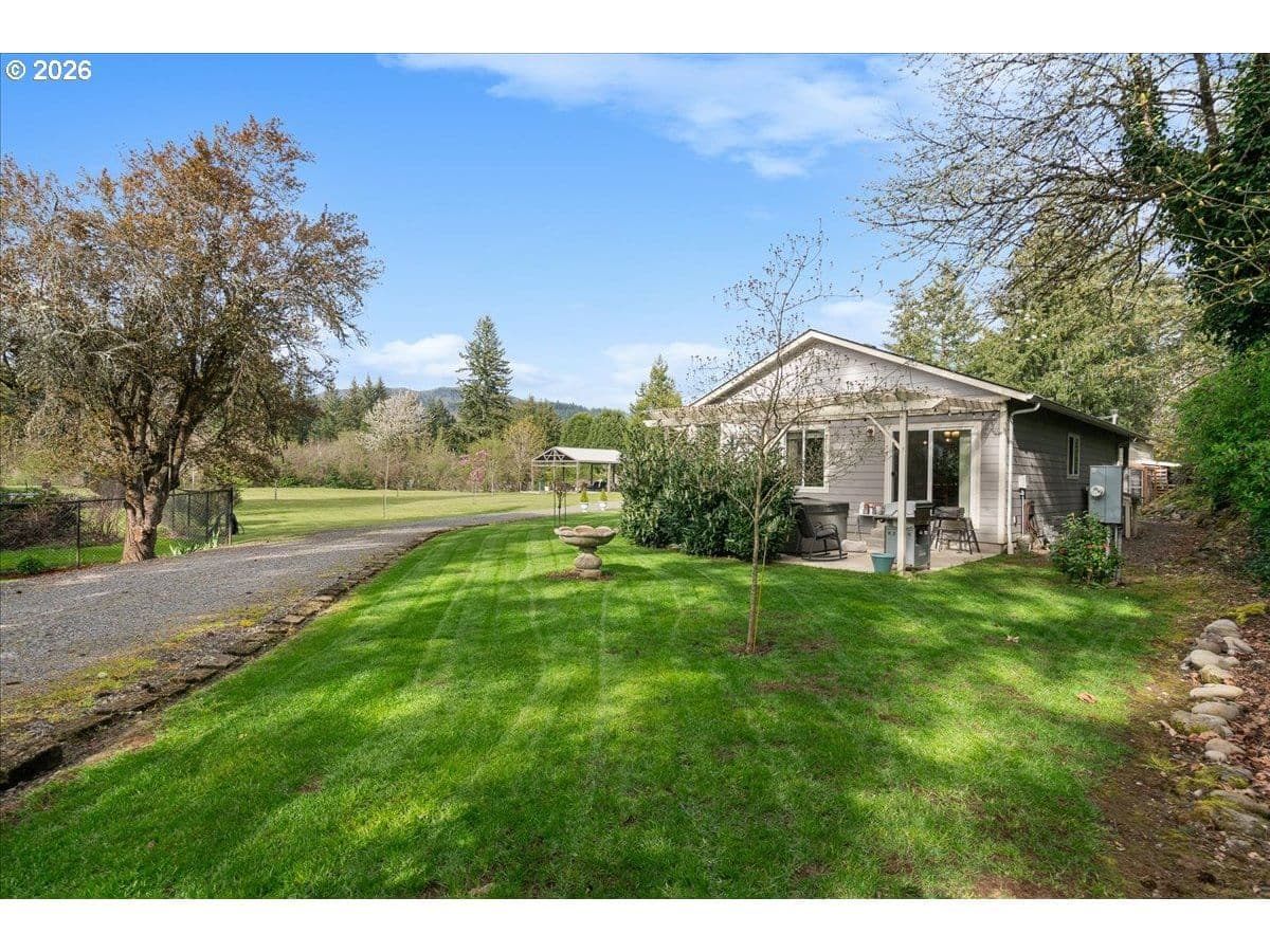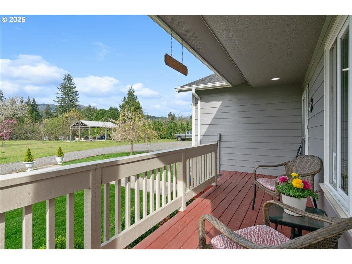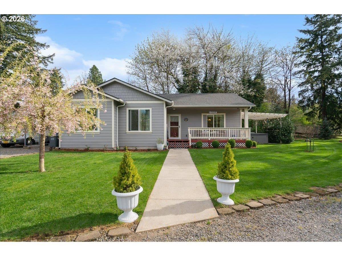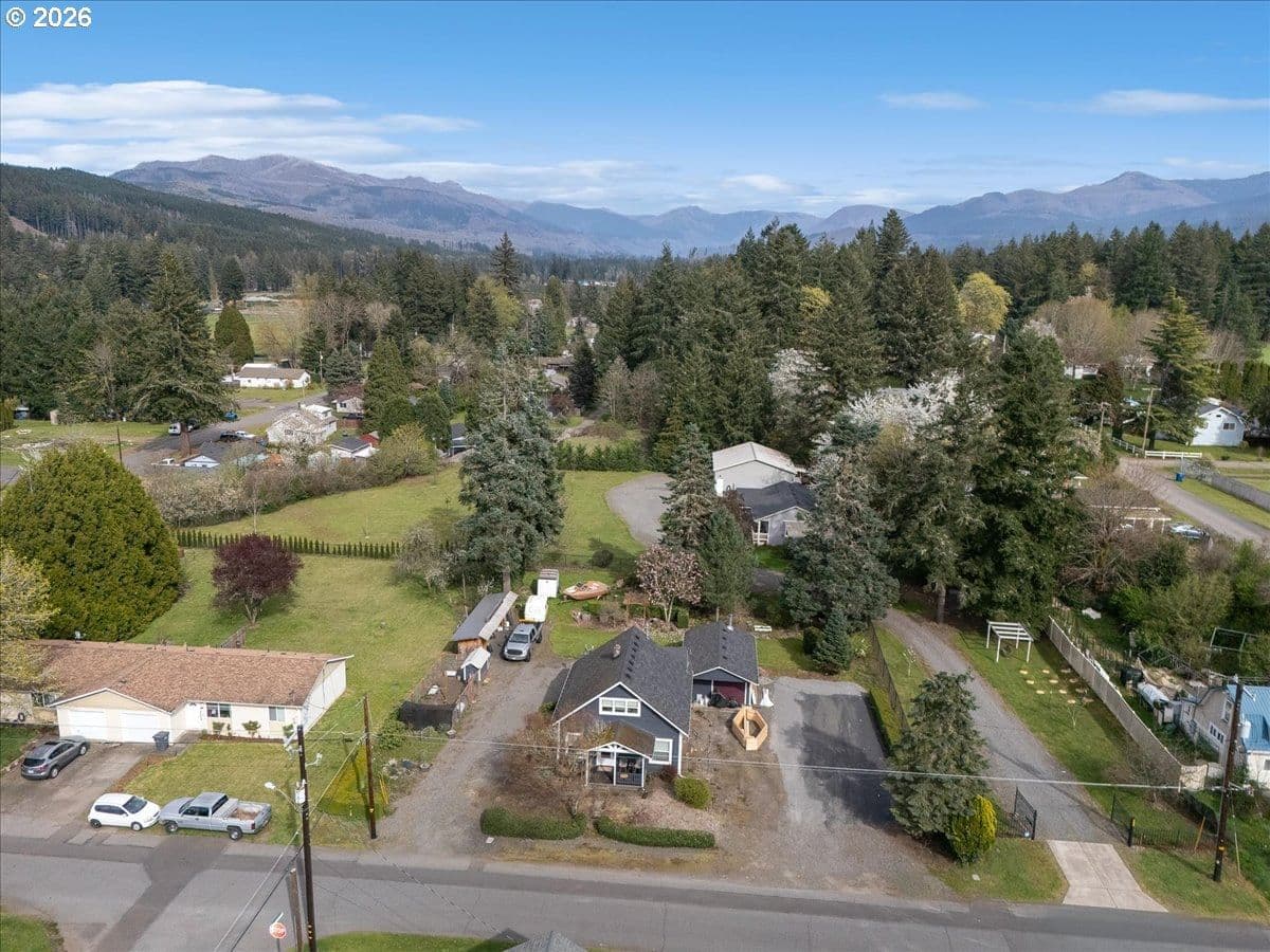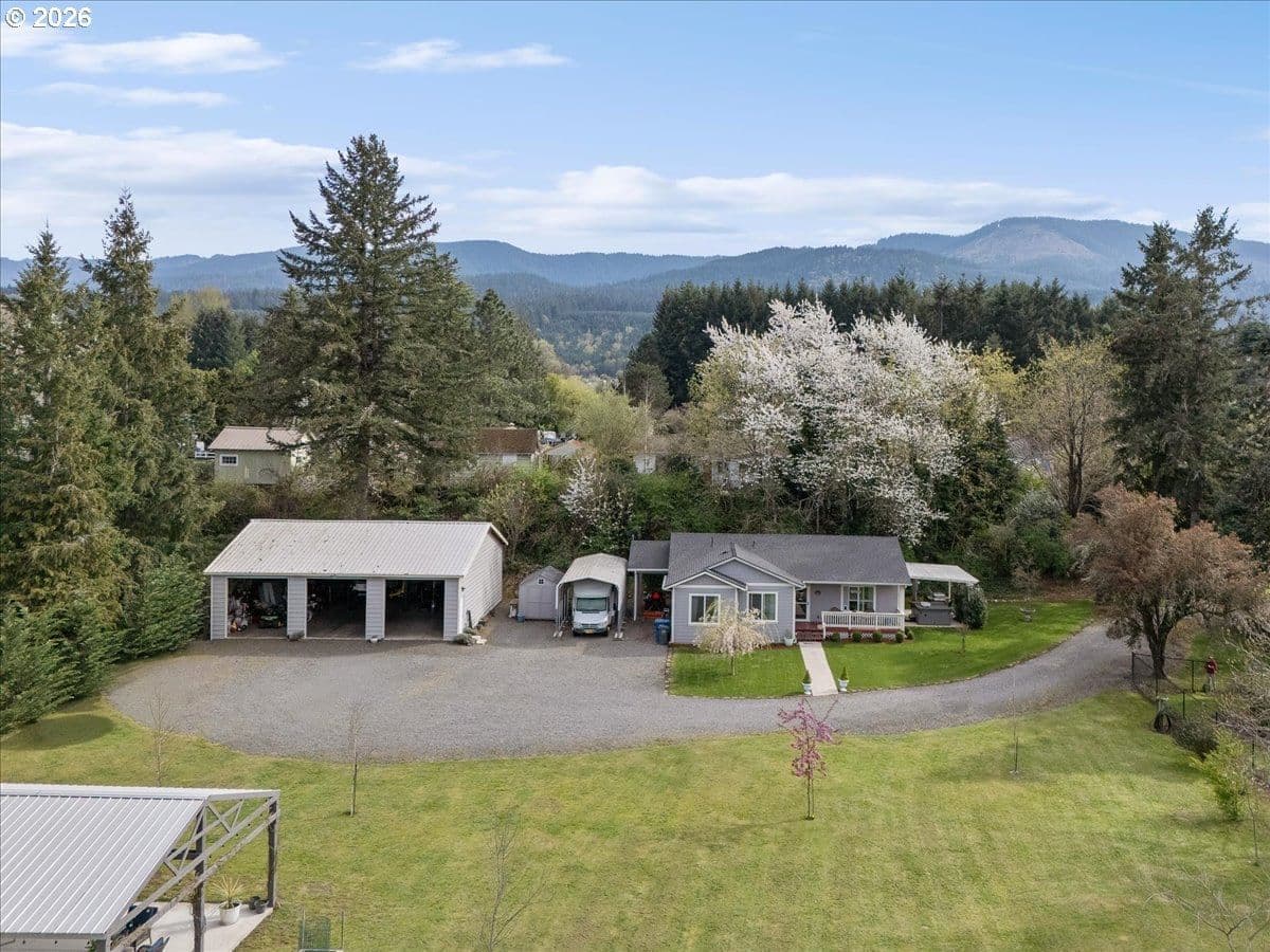 This property truly has it all. Modern living, outdoor space, privacy & incredible amenities. Enjoy peaceful living in this well-maintained 2019-built home in Mill City! 1,202 sq ft with 3 br & 2 br, this property sits on 1.13 flat, private acres. Relax on the covered front porch or enjoy the covered outdoor space with hot tub. The property features a large gazebo with power. Perfect for year round entertainment! Plus, a spacious 36x40 shop complete with a 10,000 lb hoist. Room for an RV!