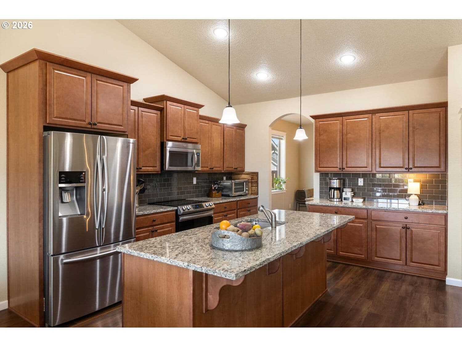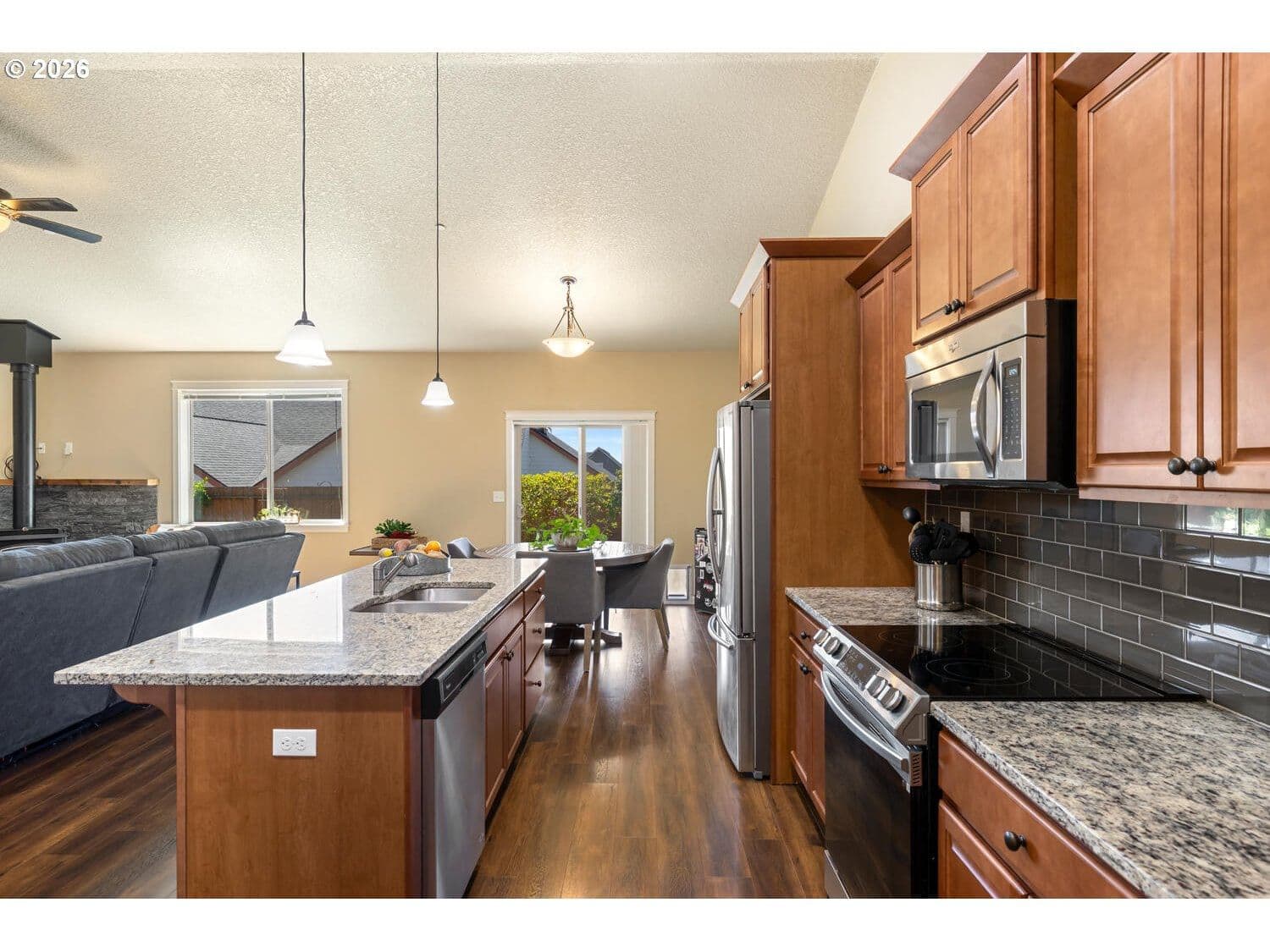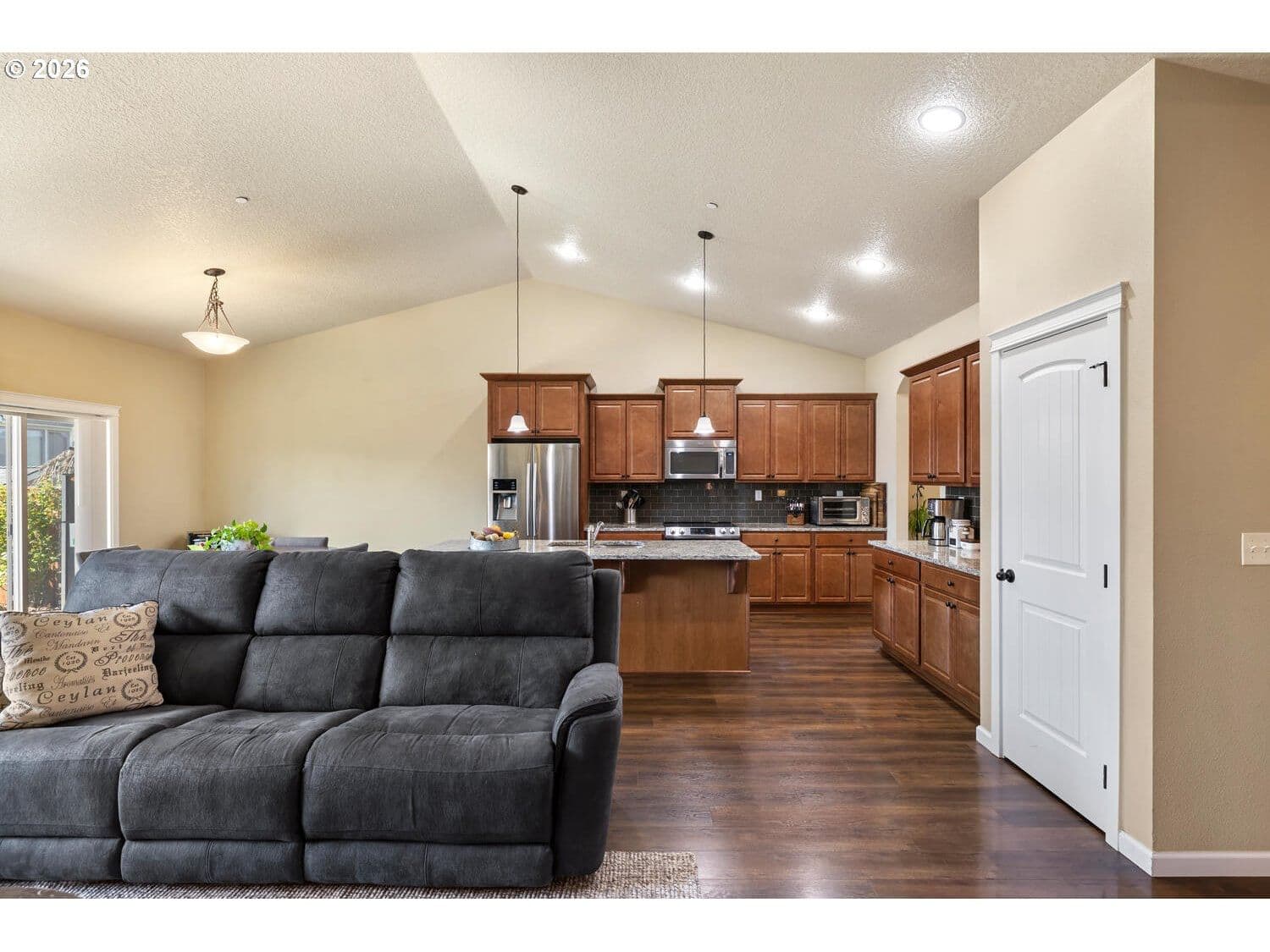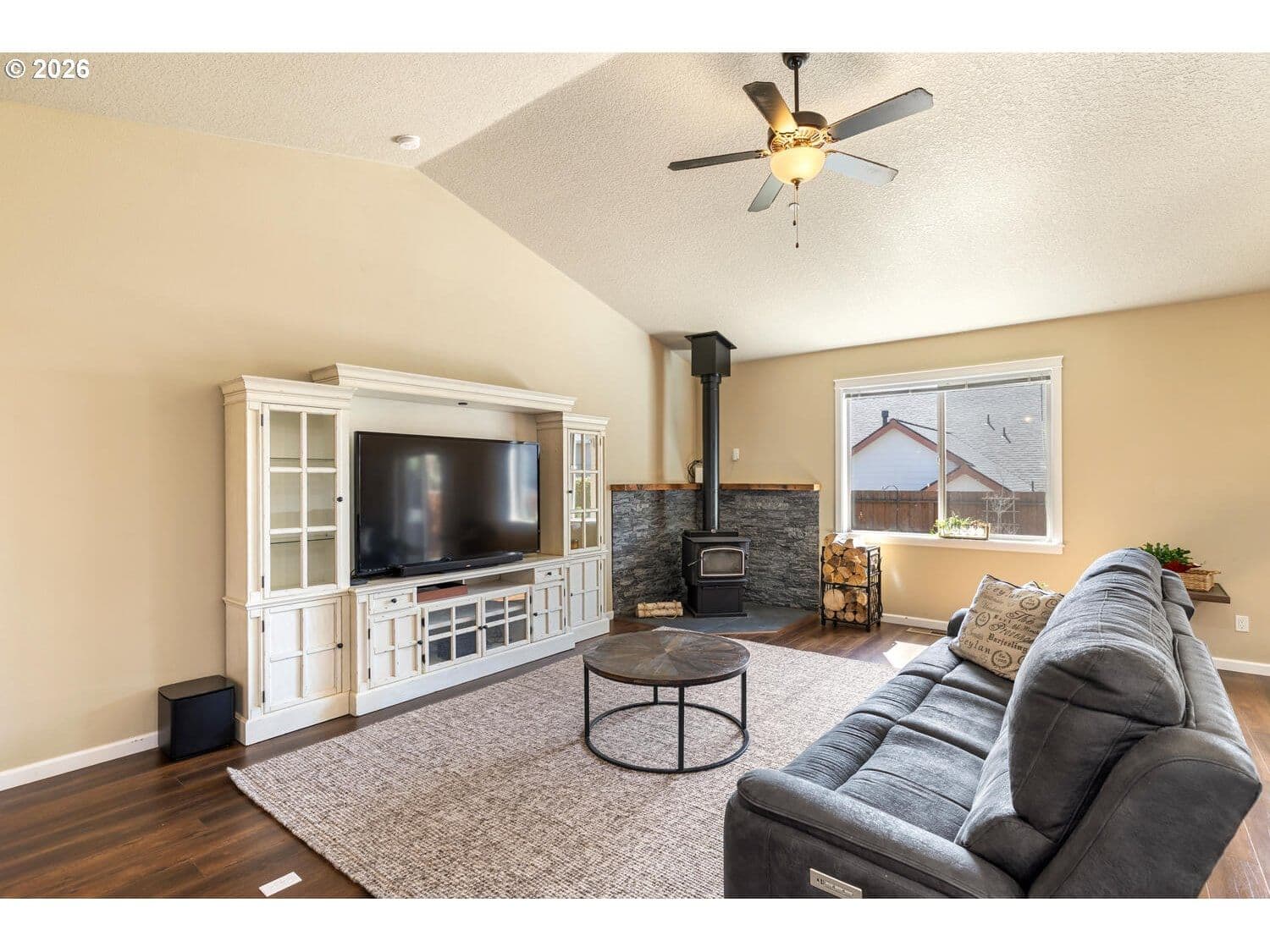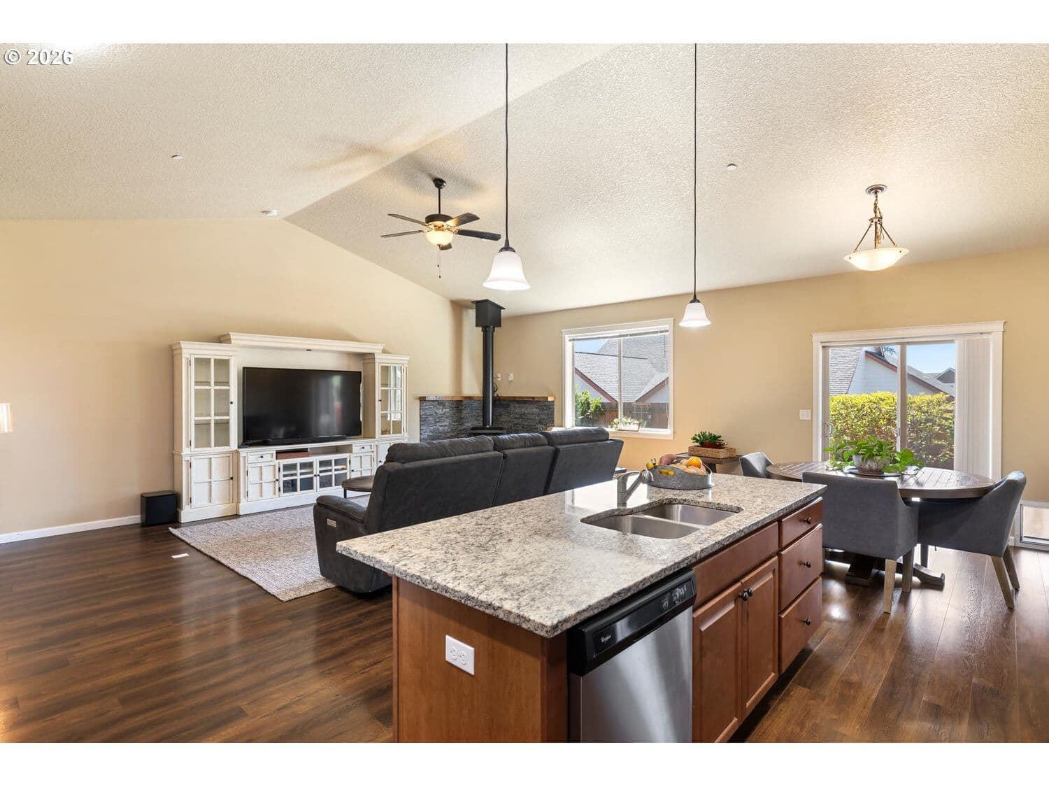 There’s something straightforward about a well-designed single-level home. Movement is easy, spaces connect naturally, and daily life doesn’t require much thought or adjustment. Open kitchen and family room sit under vaulted ceilings, giving a sense of volume while keeping everything connected. It’s open without feeling oversized, and functional without feeling tight. Outside of the living space, the property offers a different kind of flexibility. A 3-car garage plus 12 foot gate span side access (with 30 AMP) creates room for the things that don’t always fit neatly—RVs, vans, trailers, or simply extra space to spread out. Original driveway extended 15 X 50. With owned solar and new exterior paint, the focus shifts away from maintenance and toward long-term usability. New freestanding wood stove, a ductless HVAC system for the garage & new Bryant Evolution Fan coil & 20 SEER Heat Pump. It’s a home that supports how people actually live— simple to navigate, adaptable, and built to handle both routine and change.