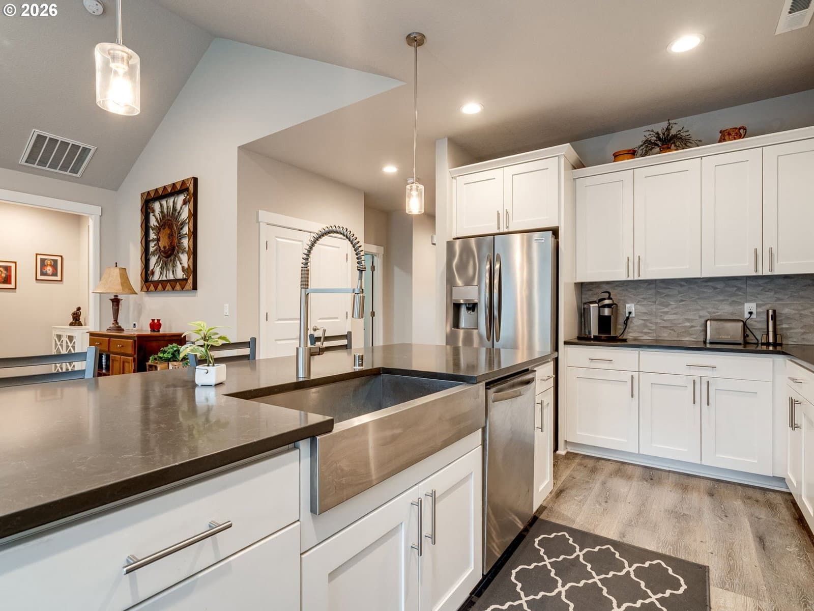 Better Than New in the Union High School District! Built in 2019 and impeccably maintained, this move-in-ready home offers the modern style of new construction—without the wait or added expense. Located in the highly rated Union High School District, it’s close to parks, shopping, and everyday conveniences. The main level features LVP flooring, high ceilings, recessed lighting, and abundant transom windows, plus a private office with glass doors. The open great room with vaulted ceilings and gas fireplace flows into a beautifully upgraded kitchen with a quartz island, white cabinetry, gas cooktop and vent hood, built-in oven and microwave, pantry with spice rack, and USB outlets. The main-level primary suite includes a spa-like bath with dual sinks, soaker tub, glass-enclosed tile shower, separate water closet, and a large walk-in closet. Upstairs offers high ceilings, a flexible loft, generous bedroom closets, and a stylish full bath with quartz counters and tile floors. Outside, enjoy fully completed landscaping, added pavers and pathways, a three-zone sprinkler system, and drip irrigation—features rarely included with new construction. Additional highlights include extra garage storage, top-down/bottom-up honeycomb blinds, a 65-gallon water heater, and included washer, dryer, and refrigerator with a full-price offer. A polished, upgraded home that truly is better than new!