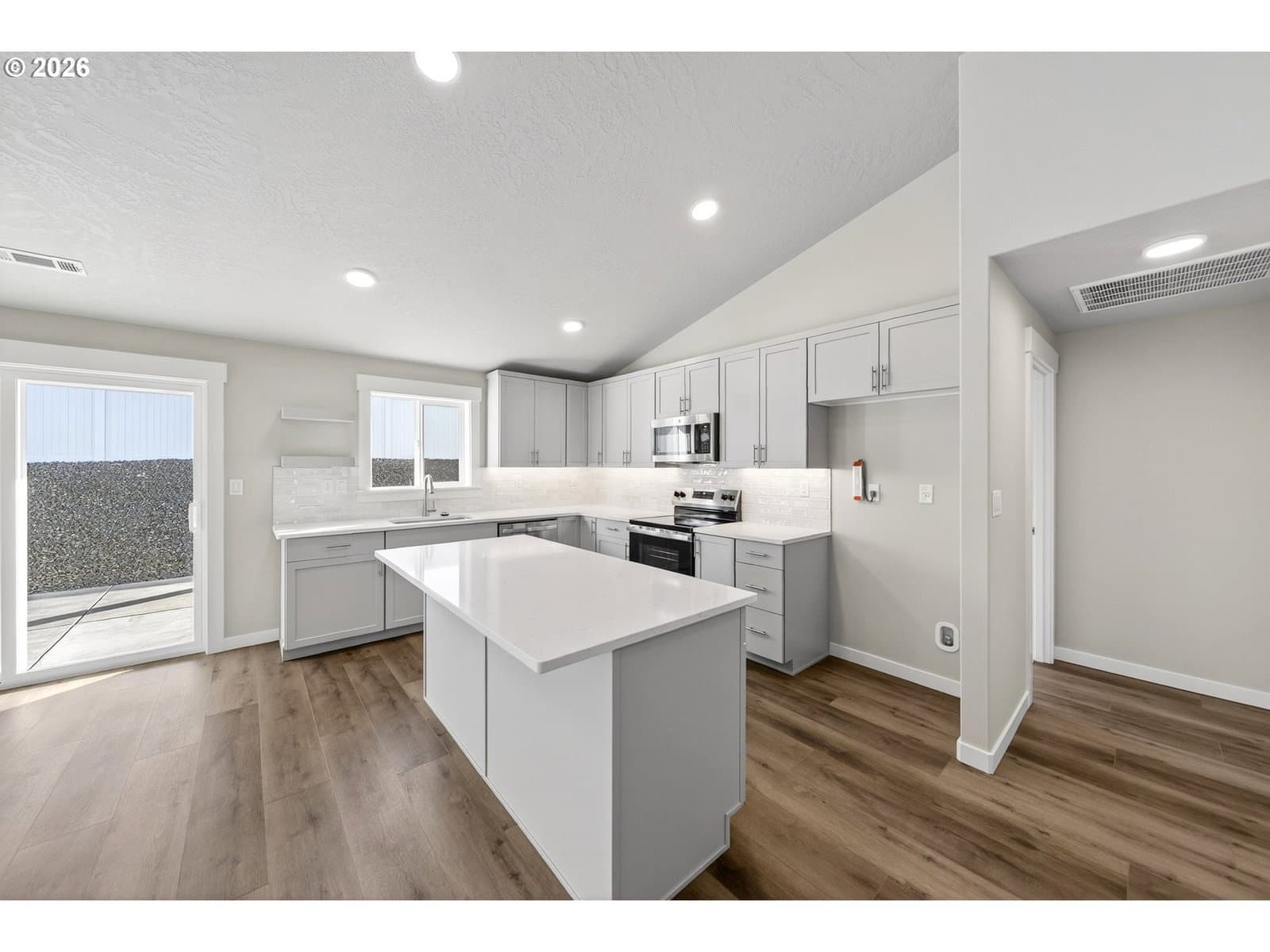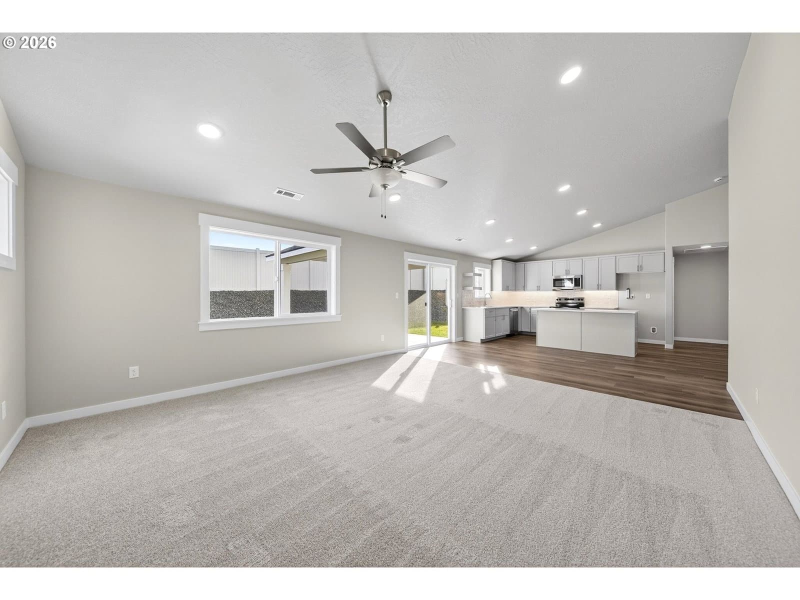 Unlock 2026 Home Savings Event Happening Now! Contact our Community Manager to learn more. Move in Ready, full landscaping and full fencing! At 1692 square feet, The Keizer is a mid-size home that makes the most of its single-story layout. This thoughtfully designed space begins as you enter the home with a convenient coat closet off the entryway. From there, you’re welcomed into the main living space by stunning vaulted ceilings, where you’ll find the great room, dining room and kitchen featuring an oversized island with seating and a large pantry. The vaulted ceiling continues into the private main suite, where you’ll find a dual vanity bathroom and spacious closet. On the other wing of the home lives the shared bathroom and two additional bedrooms, each with generous closets.