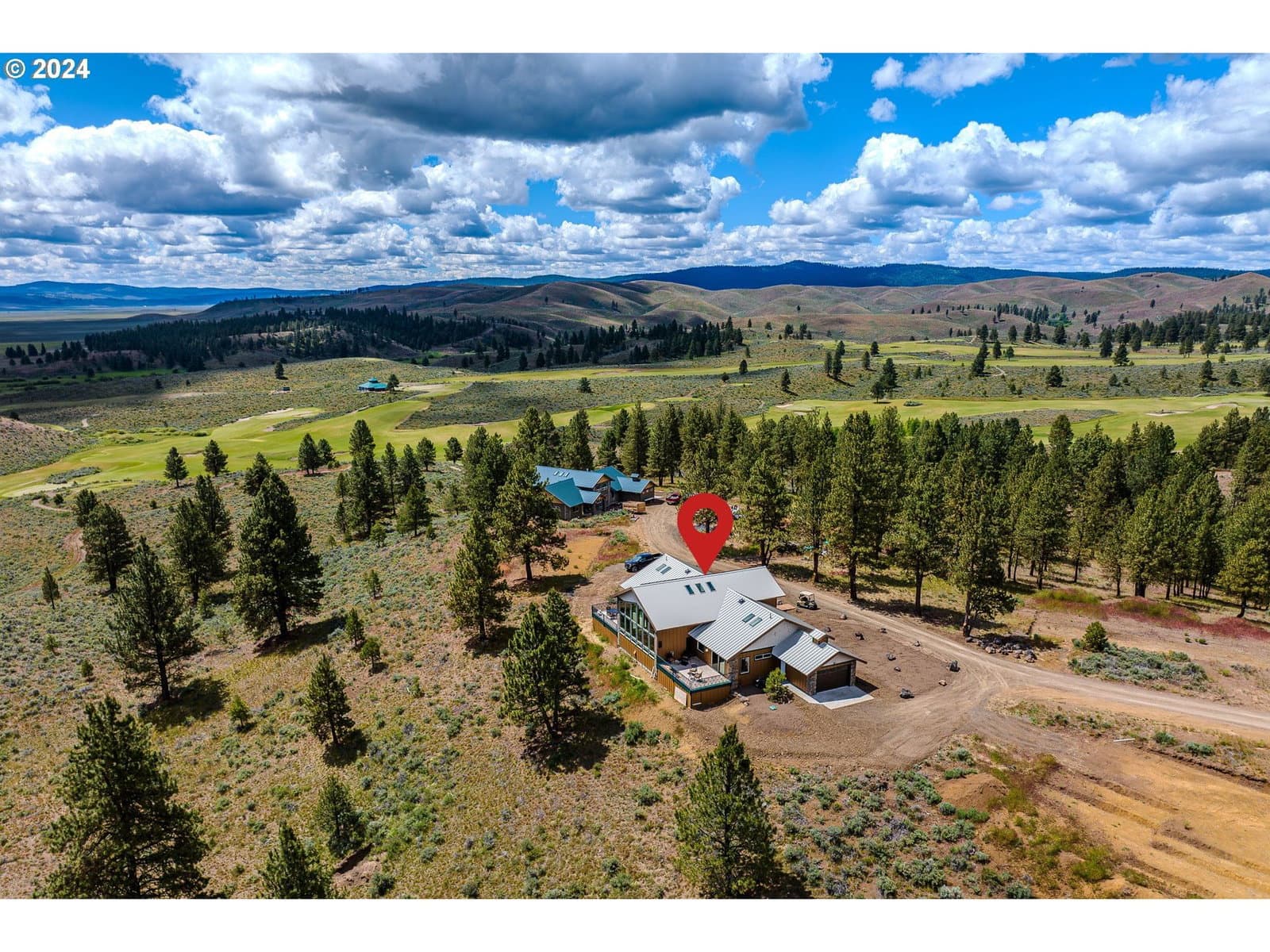 Welcome to an extraordinary off-grid, eco-luxury cabin nestled in the heart of Silvies Valley Ranch! This stunning cabin blends opulence with sustainability, offering an unparalleled living experience in one of the most picturesque landscapes of Eastern Oregon. As you enter, a striking stone wall, adorned with your custom family emblem, captures your attention, setting the tone for the unique craftsmanship found throughout. Knotty pine shiplap walls and natural wood accents lend a warm, inviting ambiance that harmonizes with the rugged beauty of the surroundings. The details exude luxury, creating a space that is both grand and intimate in the functional dining/family room, featuring vaulted ceilings, floor-to-ceiling windows, and custom antler chandeliers. A well-appointed kitchen beckons with its generous counter space, state-of-the-art appliances, and breakfast bar, making it the perfect gathering spot. The floor plan is thoughtfully designed with two primary suites that open onto private patios and feature luxurious ensuite bathrooms complete with a soaking claw-foot tub and a see-through fireplace. An additional bedroom offers flexible space, ideal for guests or a home office to meet your needs. Adding a touch of convenience to your lifestyle, the concierge room is equipped with 2 convertible refrigerator/freezers, and locks off to the utility room entrance. Step outside onto one of the two decks, where you can dine alfresco or stargaze on summer evenings after a day on the ranch. The property’s eco-friendly features, including solar panels, reflect a commitment to sustainability, ensuring that your environmental footprint is as minimal as the cabin is magnificent. All furnishings/appliances in photos included. Resort features include two world class golf courses, pool, spa, dining lodge/bar, horseback riding, ATV tours, hiking, and much more! Additional sites available.