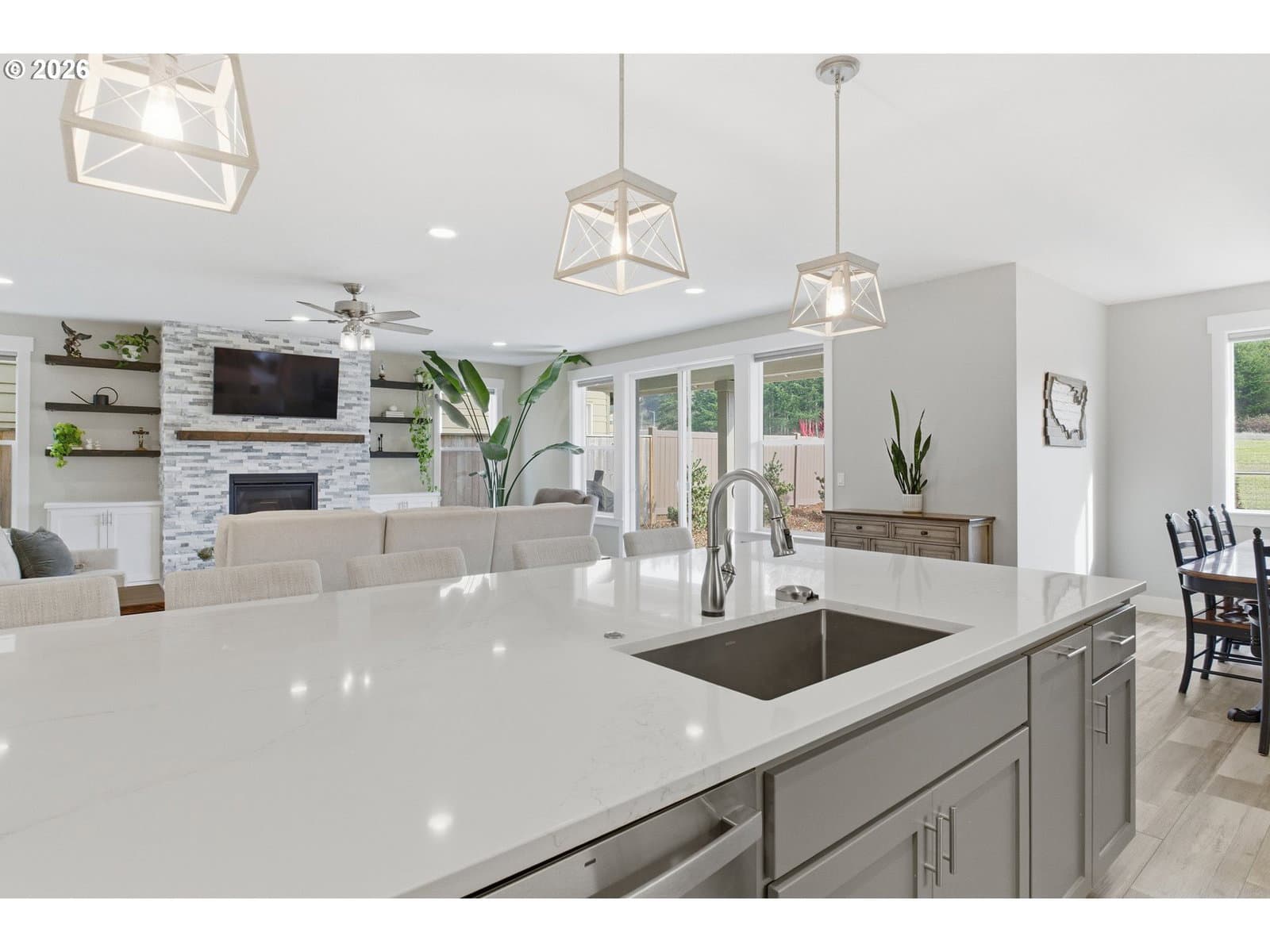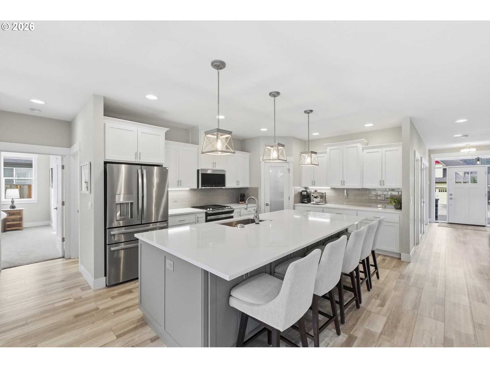 Stunning newer construction built in 2021, this beautifully designed 3,068 sq ft 2story home blends modern style with thoughtful functionality. From the moment you arrive, you’ll appreciate the professionally landscaped front and backyard, extended patio with pavers, and inviting outdoor spaces perfect for entertaining or relaxing. Inside, the home features luxury LVP flooring, quartz countertops, stainless steel and gas appliances, and an oversized kitchen island that anchors the open-concept living area. The main level offers a spacious primary suite complete with a spa-like bathroom featuring a soaking tub, glass shower, and a large walk-in closet. Two additional bedrooms are located on the main level, while the upper floor boasts a generous bonus room with a wet bar and an additional bedroom with its own walk-in closet—ideal for guests, a home office, or media space. With 4 bedrooms, 3 full baths, RV parking, a storage shed, and a location within walking distance to a neighborhood park, this home truly has it all. Situated on the edge of town, this modern, move-in ready home is designed for both everyday living and entertaining—this one is a must-see.