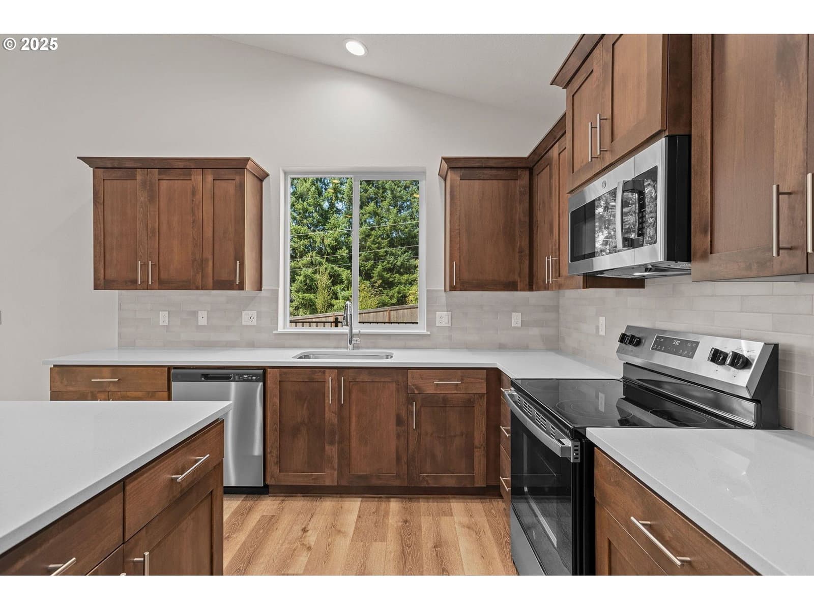 Welcome to your dream home in Faraday Hills, Estacada! This brand-new 1,594 sq. ft. single-level Craftsman offers 3 bedrooms, 2 bathrooms, and a spacious 2-car garage designed for comfortable, modern living. The open-concept great room features vaulted ceilings and flows seamlessly into a stylish kitchen complete with an island, pantry, dishwasher, and energy-efficient appliances—perfect for everyday living and entertaining. Situated on a fully fenced 6,200 sq. ft. lot, the home includes front yard landscaping with irrigation and a covered patio for year-round enjoyment. Also enjoy access to 17 acres of community greenspace with walking trails. Additional highlights include an energy-efficient heat pump, double-pane windows, and thoughtful finishes throughout. This home is completed. Actual images are shown this home offers the perfect blend of comfort, efficiency, and Northwest lifestyle. Sales Office located at 3675 NE Claire Rd, open daily from 10am–5pm.