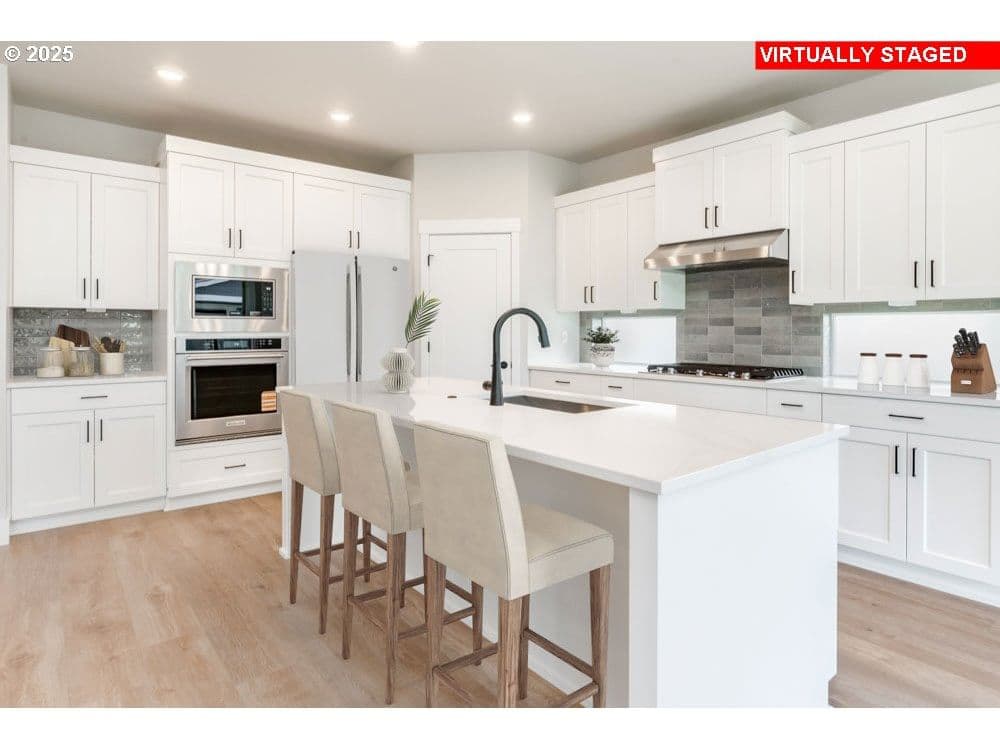 **Stunning One level** Brand new and move-in ready. This traditionally designed one-level home in South Hillsboro’s Butternut Creek built by Street of Dreams award winner, offers both comfort and convenience. With a front-facing garage and private finished backyard, it blends timeless architecture with practical living. Inside, coffered ceilings and large windows create an airy, inviting space filled with natural light. The gourmet kitchen features quartz countertops, a spacious island, and a full-height backsplash, seamlessly connecting to the great room and dining area—ideal for gatherings. Thoughtful details such as wide hallways and a walk-in pantry enhance everyday functionality, and luxury finishes are included in the price. Located in South Hillsboro’s highly sought-after Butternut Creek community, you’ll have access to nature trails, dog parks, and new amenities like Market of Choice, The Reserve golf course, and local restaurants. The home is zoned for the new Tamarack Elementary School. Whether you're commuting to Portland or planning a weekend getaway to the Oregon Coast or wine country, this location offers exceptional access to it all. Sales Center at 7372 SE Benedict St. Hillsboro, OR 97123. Home Energy Score = 10. HES Report at https://rpt.greenbuildingregistry.com/hes/OR10223091 [Home Energy Score = 10. HES Report at https://rpt.greenbuildingregistry.com/hes/OR10223091] Front landscaping included, commons and management.
