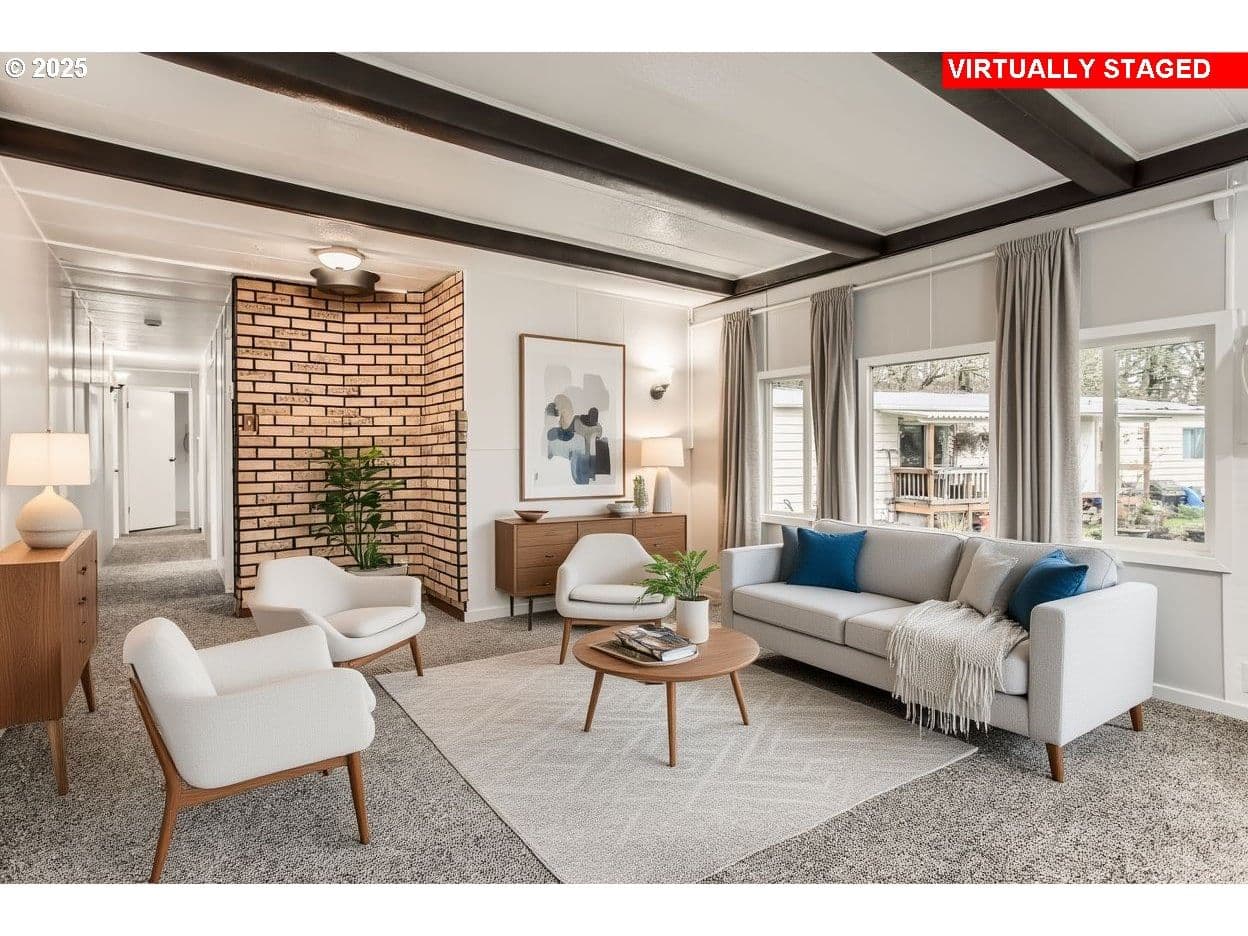 Affordable living in a peaceful, all-age community! This 2-bedroom, 1-bath manufactured home sits in the quiet and private Spartree Mobile Home Park with a monthly space rent of $780 that includes shared septic and well. Recent improvements include a newer roof, all-new insulation underneath the home, new carpet, laminate floors and fresh interior paint. An open living room with a beamed ceiling brings warmth and character, while the kitchen offers a free-standing range, refrigerator, eat-bar, and space for a dining nook. A separate mudroom provides laundry hook-ups and extra storage. Large windows throughout fill the home with great natural light. Parking for up to two vehicles is available in front of the home. Two indoor pets allowed (20 lb max). Park approval required for each adult. Come enjoy a serene rural setting just minutes from town. An ideal opportunity for comfortable and affordable homeownership. Financing options available!