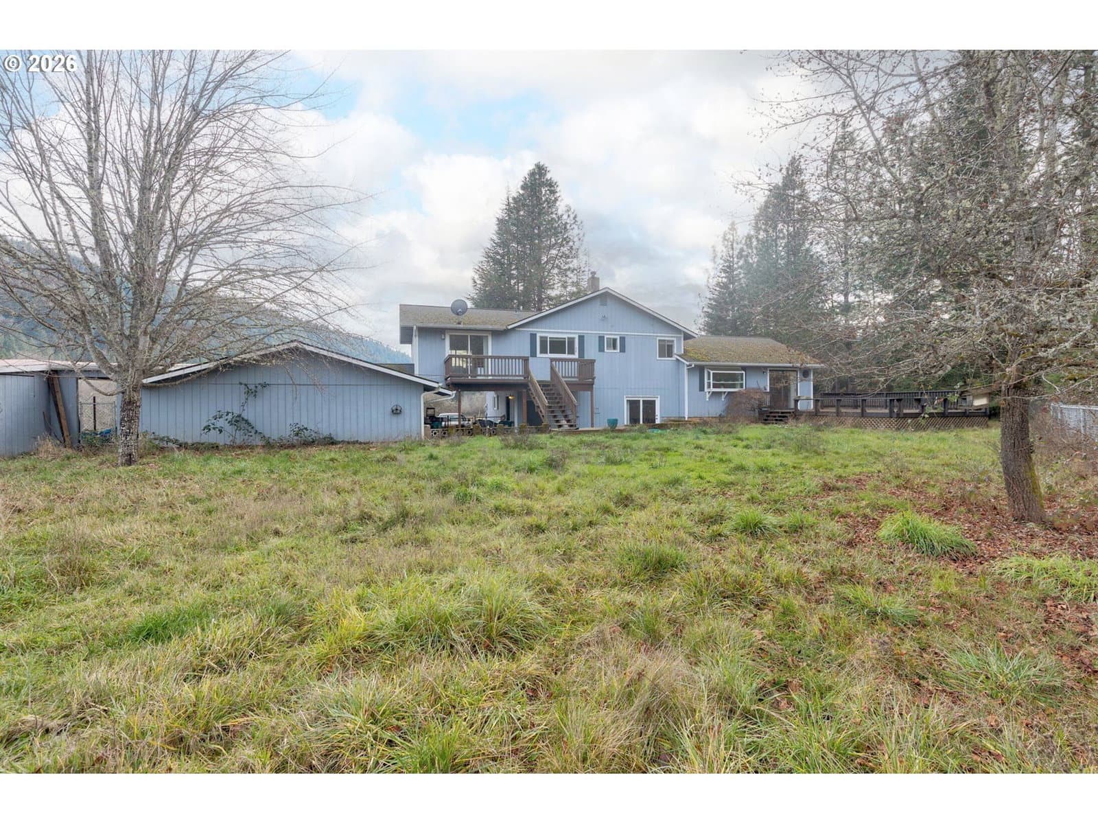 Enjoy peaceful country living with this 1983 split-level home on 5.92 fenced/cross-fenced acres with beautiful pasture and mountain views. The 2,440 sqft home offers 4 beds/3 Baths remodeled in 2004 with Corian counters, newer appliances, and woodstove that efficiently heats the entire home. The primary suite includes double sinks and a walk-in closet. Recent updates include a newer water heater, plumbing fixtures, and a refinished back deck. Outside, the property is well set up for animals and outdoor living or a blueberry farm with a 48x48 hay barn, pasture with horse fencing, garden area, fruit trees, and a fenced yard perfect for dogs. Water rights to the creek and a good producing well add to the property's value and usability. A paved circular driveway provides easy access with attached 2 car garage/additional carport for extra parking/storage. This move in ready property offers space and functionality with beautiful views and room to grow. Come check out Misty Mountain Meadows!