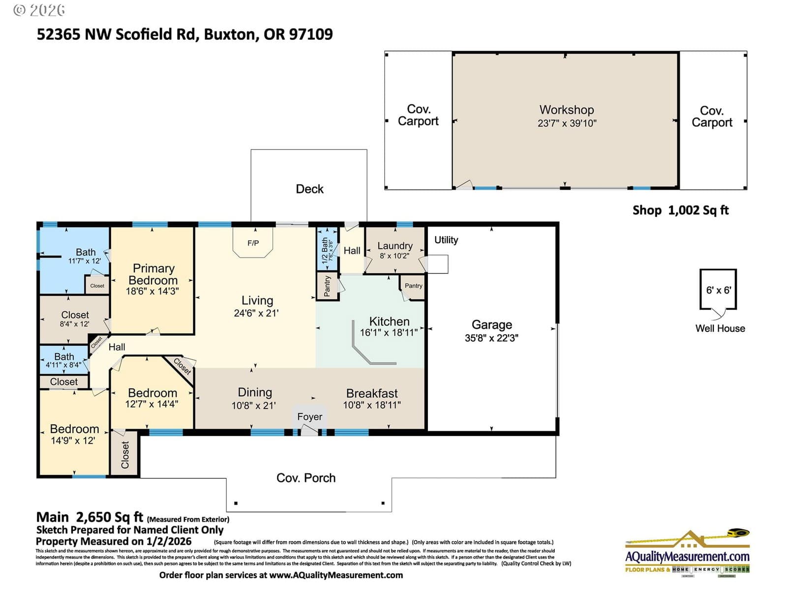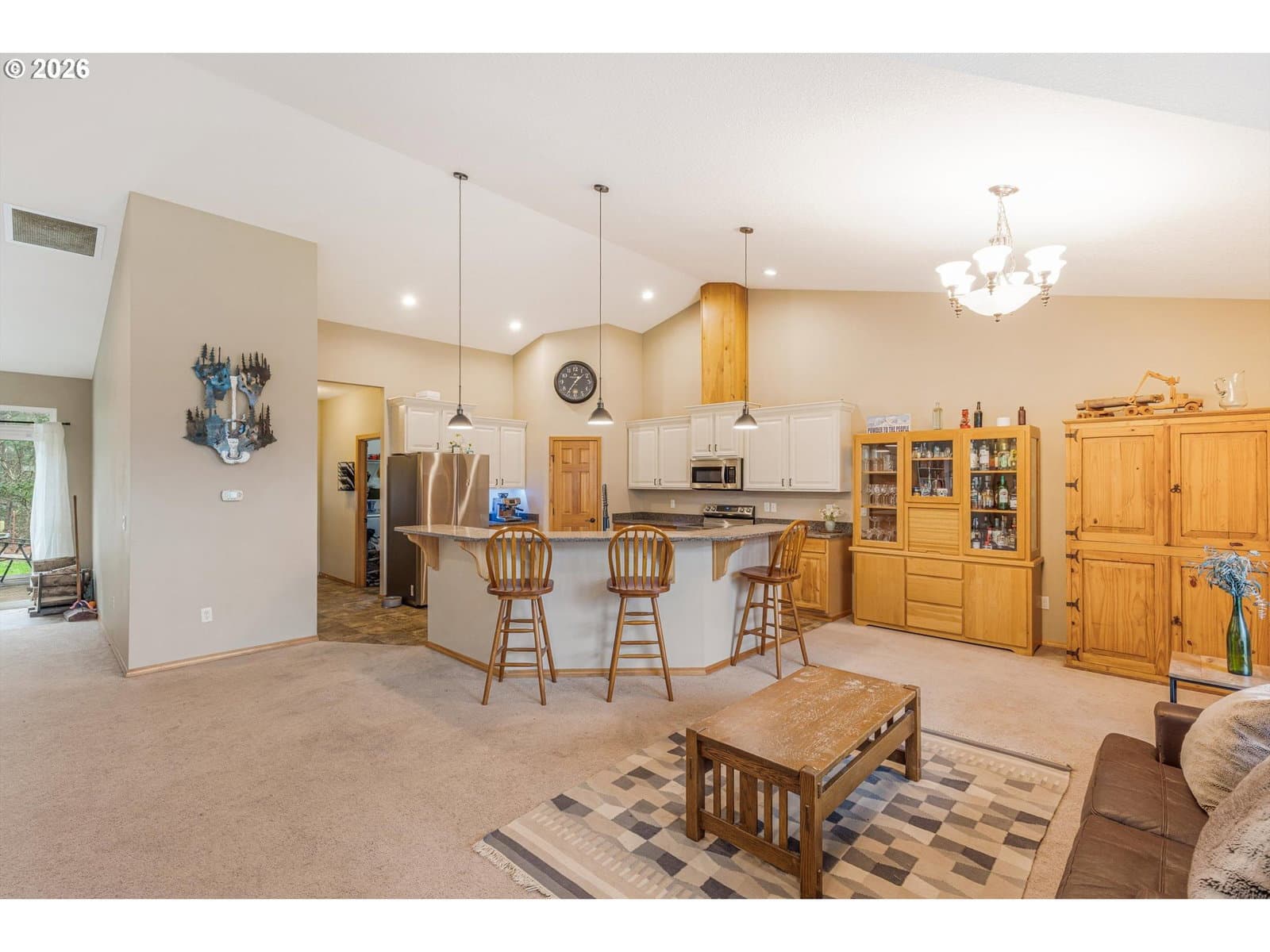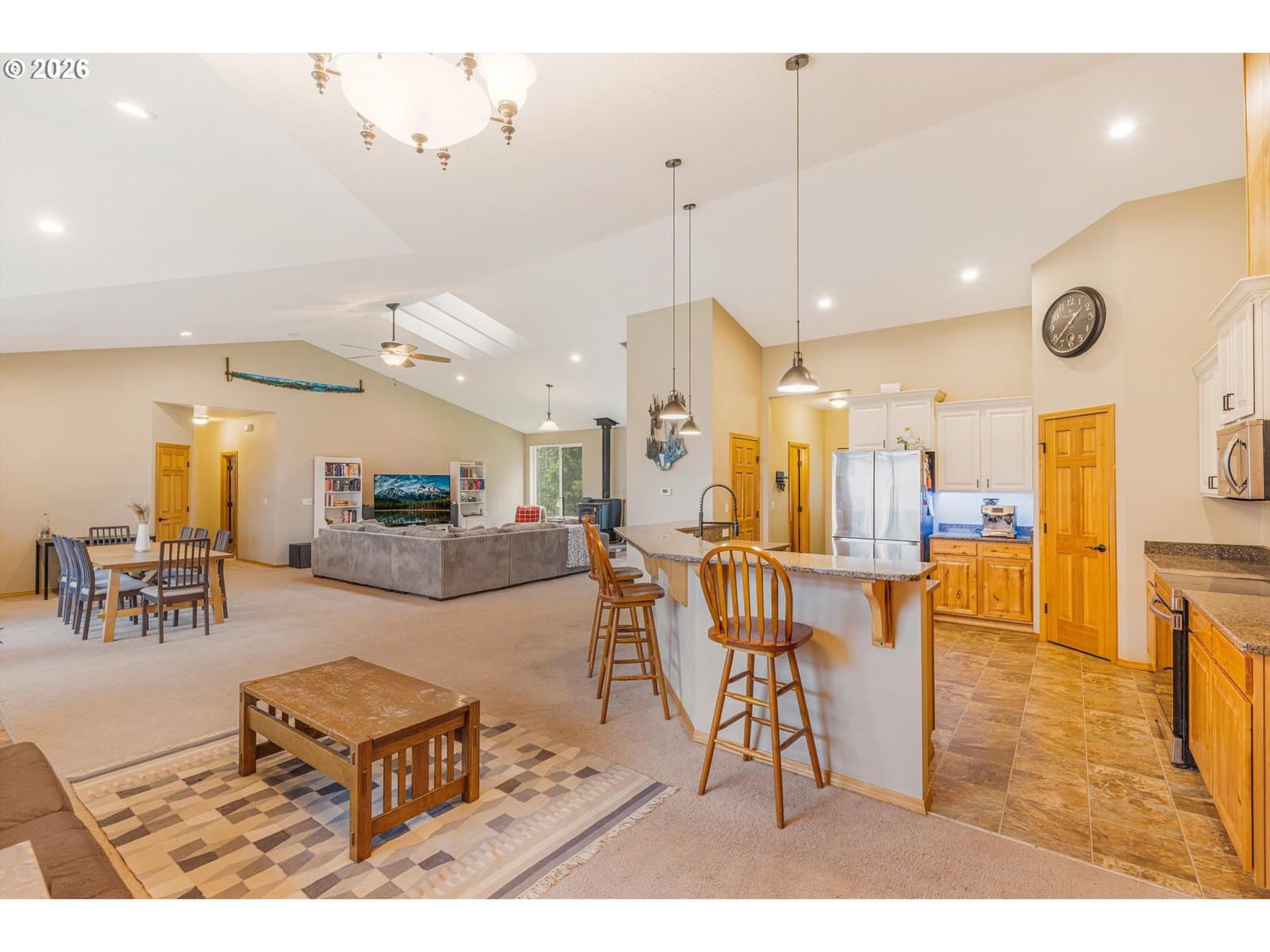 2014 custom built 2650 sq ft 3 bed 2-1/2 single level home with oversized 2 car attached garage on 17.2 acres. Warm yourself by the wood stove in the vaulted living room and watch the wildlife pass through the area out the large windows. Huge kitchen with sink in island to improve workflow and allow socializing, two large pantries, stainless steel appliances and vaulted ceiling. Primary bedroom with ensuite bathroom plumbed and ready for new custom tub/shower, large walk in closet. second bedroom has walk-in closet. Vaulted oversized covered front porch, apple trees, plum trees, blackberries, wild cherries, chicken coop, man made pond with ducks, large area for camping, cross fencing, pasture, marketable timber (part of property is in deferral), compacted driveway can handle heavy vehicles, well with holding tank that is regularly inspected, 6in fire main, Detached 24x40 shop-insulated with separate 220amp service and concrete floor. RV parking pad with electric hook up next to shop. New exterior paint in 2024