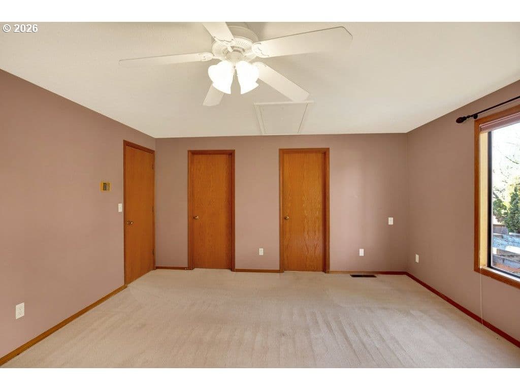 Well-cared-for, highly livable home with a flexible layout and strong neighborhood appeal in the Charlais community. Separate living and family rooms create practical spaces for everyday living, entertaining, or working from home. The primary suite features a walk-in closet, double sinks, a soaking tub, and a large window overlooking trees and the back deck, providing privacy and natural light. Laundry room is conveniently located upstairs near the bedrooms. The kitchen is designed for daily functionality with generous cabinet and drawer storage, two built-in pull-out cutting boards, and a swivel cookbook rack. Recent updates include refreshed kitchen paint and a newer refrigerator. Easy access from the garage makes unloading groceries simple. A working fireplace adds warmth and character. Major systems and maintenance have been addressed, including a new 50-gallon water heater (2025), high-efficiency Infinity 96 furnace with side-discharge AC and extended warranty, and a 30-year CertainTeed roof. The chimney has been serviced with a new cap, flashing, crown coat, and water-repellent treatment with a 10-year masonry guarantee. Outdoor spaces include a rebuilt and recently stained deck overlooking a fenced backyard ideal for kids and pets, with a dog door off the kitchen. Enjoy outdoor cooking in the lighted BBQ area with canopy. Paved RV parking with secure gate and electrical hookup adds flexibility. Trees have been professionally trimmed, and the irrigation system has been upgraded. Interior paint and new carpet offer an opportunity for the next owner to add personal touches. Additional features include finished garage storage, attic and under-stair storage, a well-built shed, outdoor lighting, wooden blinds, and ceiling fans throughout. Ideally located near Claremont Golf Club with scenic walking opportunities, John Marty Park with 2 separate playgrounds, and the Waterhouse Trail, and Rock Creek Country Club just a short distance west.