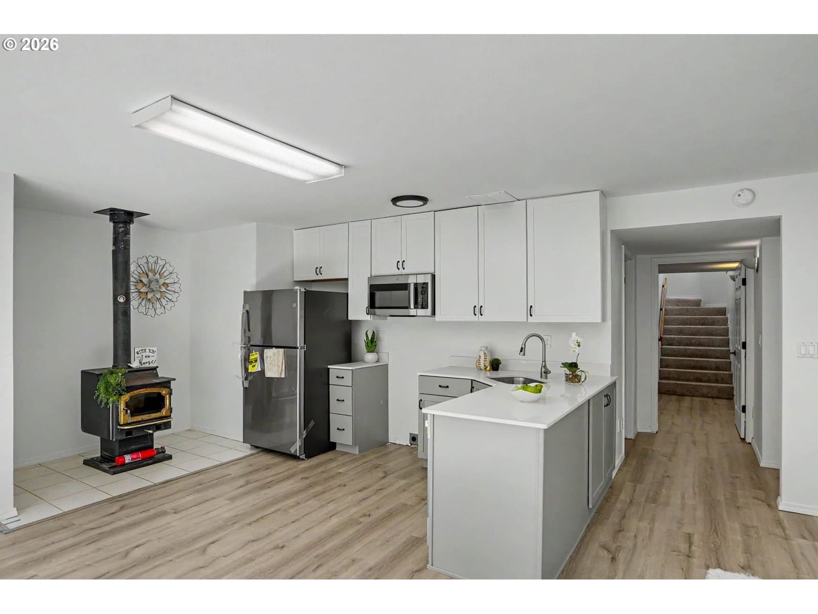 Lovingly renovated, this home is truly move-in ready. Both kitchens, all 4 bathrooms, flooring, lighting, paint, and furnace updated in 2025. The main floors feature LR with soaring cathedral ceilings and dramatic windows, kitchen, DR, office, 3 beds, & 3 baths. Downstairs, a private 2-bed suite with LR and full kitchen offers multigenerational flexibility. Oversized 3-car garage, pre-inspected well, raised beds, and greenhouses. Contiguous 146 acre FC parcel also available.