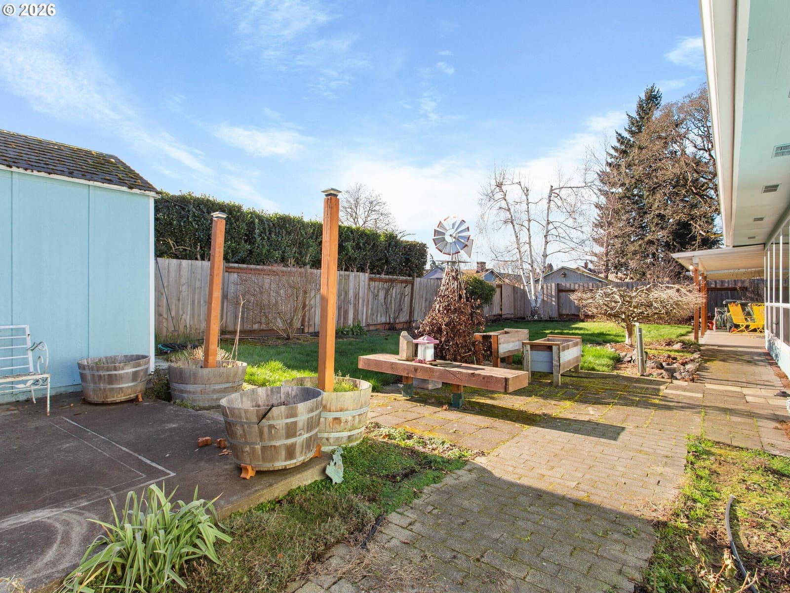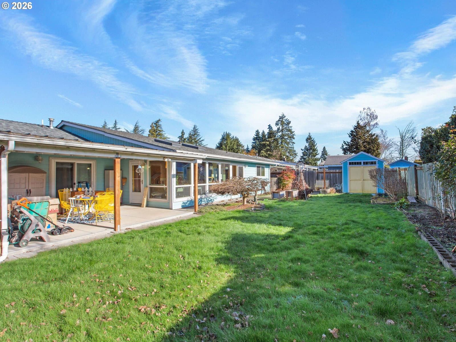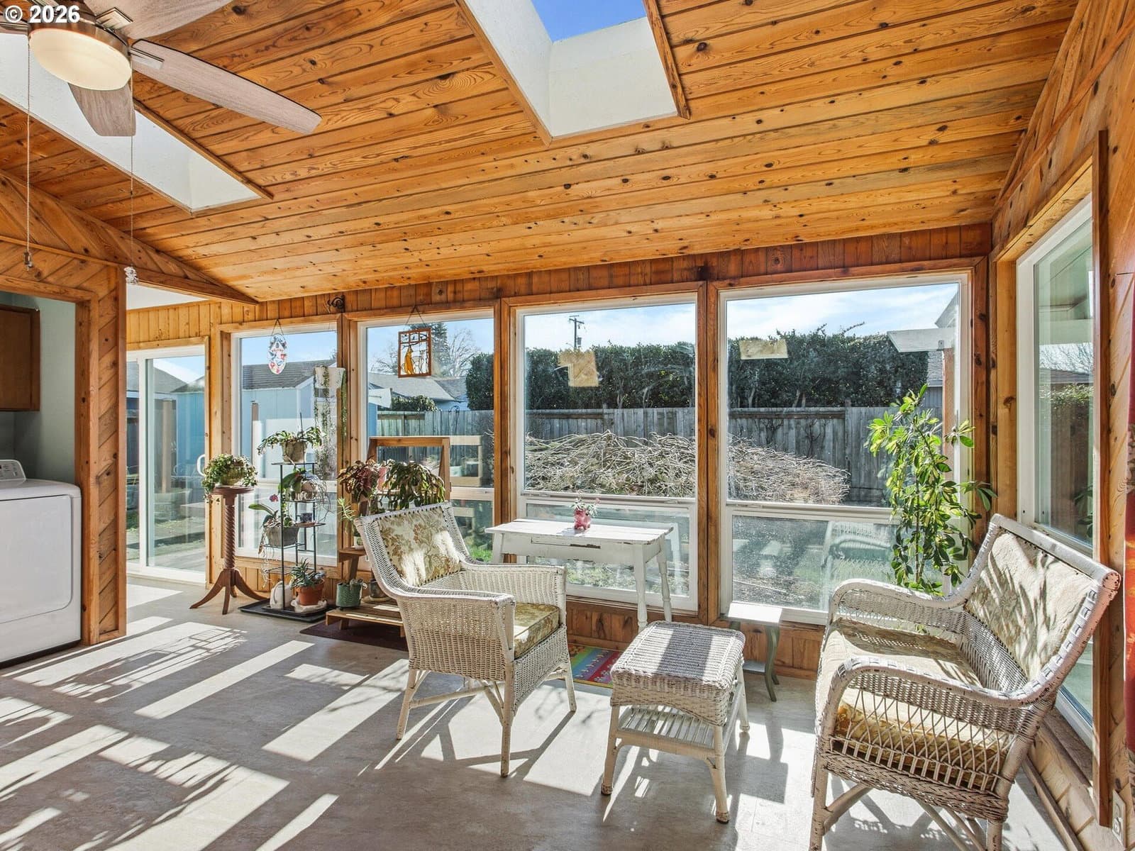 Excellently well-maintained one-level ranch in Jan Ree Estates! This home boasts a thoughtful floor plan, serene outdoor setting, with space and storage galore! Updates include newer furnace, serviced regularly, 50 year presidential roof, heated and cooled sunroom/utility room with cedar exposed ceiling and walls with floor to ceiling windows flooding in garden light, and custom water resistant vinyl flooring. Chef's dream of a kitchen with plentiful counter, cabinet, and built in storage space. Home features beautiful wood pattern vinyl flooring throughout, water resistant vinyl tile flooring and solid surface quartz vanities in primary and shared bathrooms. Oversized primary bedroom, with walk in closet and ensuite full bathroom, overlooking gorgeously landscaped backyard oasis. 20x24 garage, side covered carport, for shaded garden area, extra parking, or storage... suited for many uses. Backyard is an oasis, fully fenced, with a garden shed for extra storage, a garden sitting area, two covered patios, and plentiful, private space for relaxation and outdoor entertaining. This home has it all! Open Saturday, 1/31, 11am - 1pm.