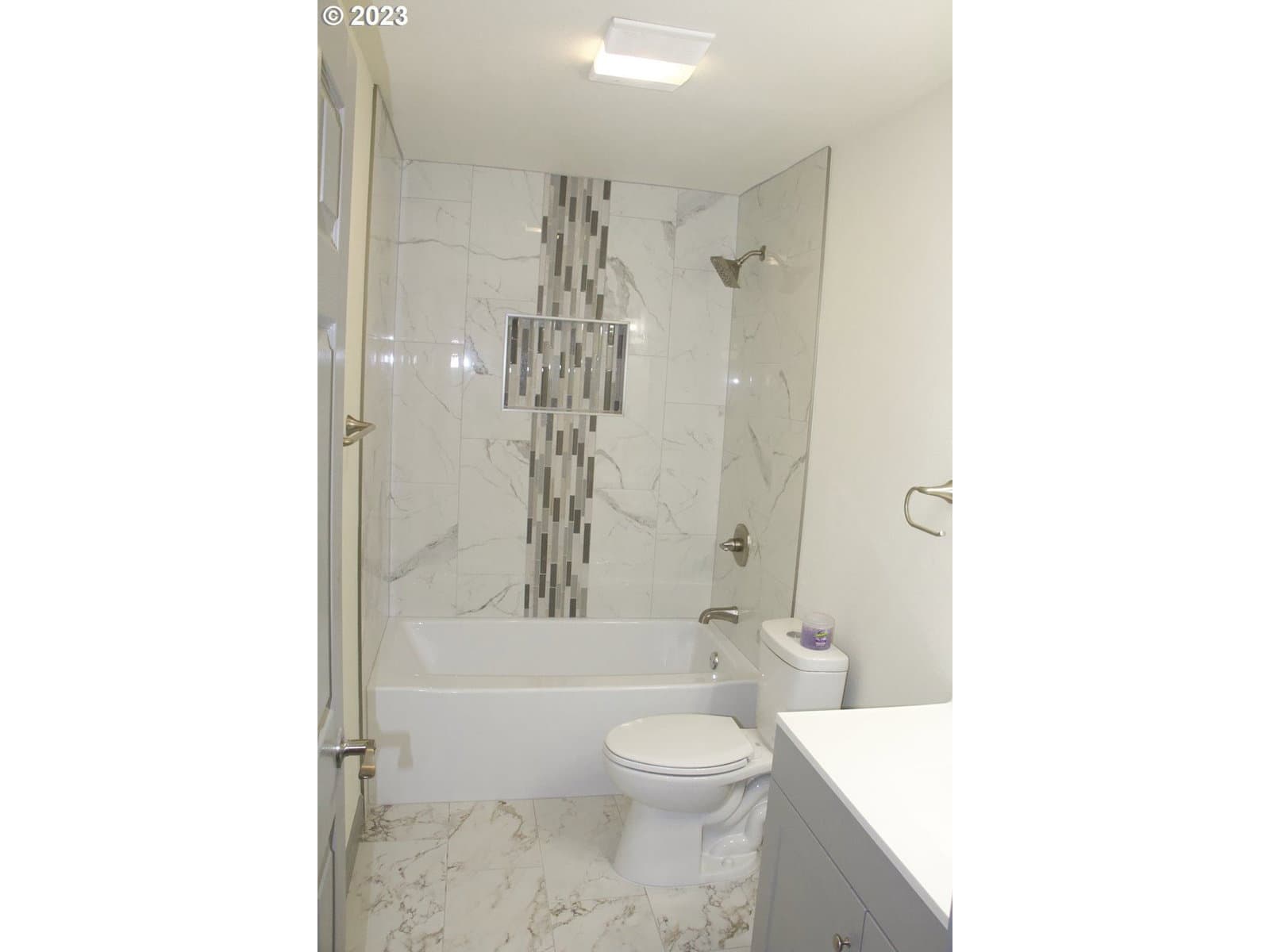 Beautifully Remodeled 3 Bed - 1 Bath 1-Story Home on Almost a Quarter Acre! Tons of RV Parking, large, fenced back yard, Covered Patio, Nice Front Porch, Completely Remodeled in 2022 (Please see attached list of upgrades): Kitchen & Bathroom, Stainless Steel Appliances, Washer/Dryer, Siding Front of House and All Garage, Garage Roof, And Gutters. Ideal for first time homebuyers. Also - perfect for Investment Rental Property ... nothing to do but find your renters, and start collecting rent! Garage has been converted to ADU/STUDIO: 2 Bedrooms, 1 Bathroom, Kitchen, with Private Entrance, Its Own Hot Water Heater, and Wall Heaters. (Not permitted, but installed up to code by Seller, who is Licensed Contractor). Great place to live and work - and plenty of parking for your work vehicles! Take advantage of this opportunity today. [Home Energy Score = 8. HES Report at https://rpt.greenbuildingregistry.com/hes/OR10213608]
