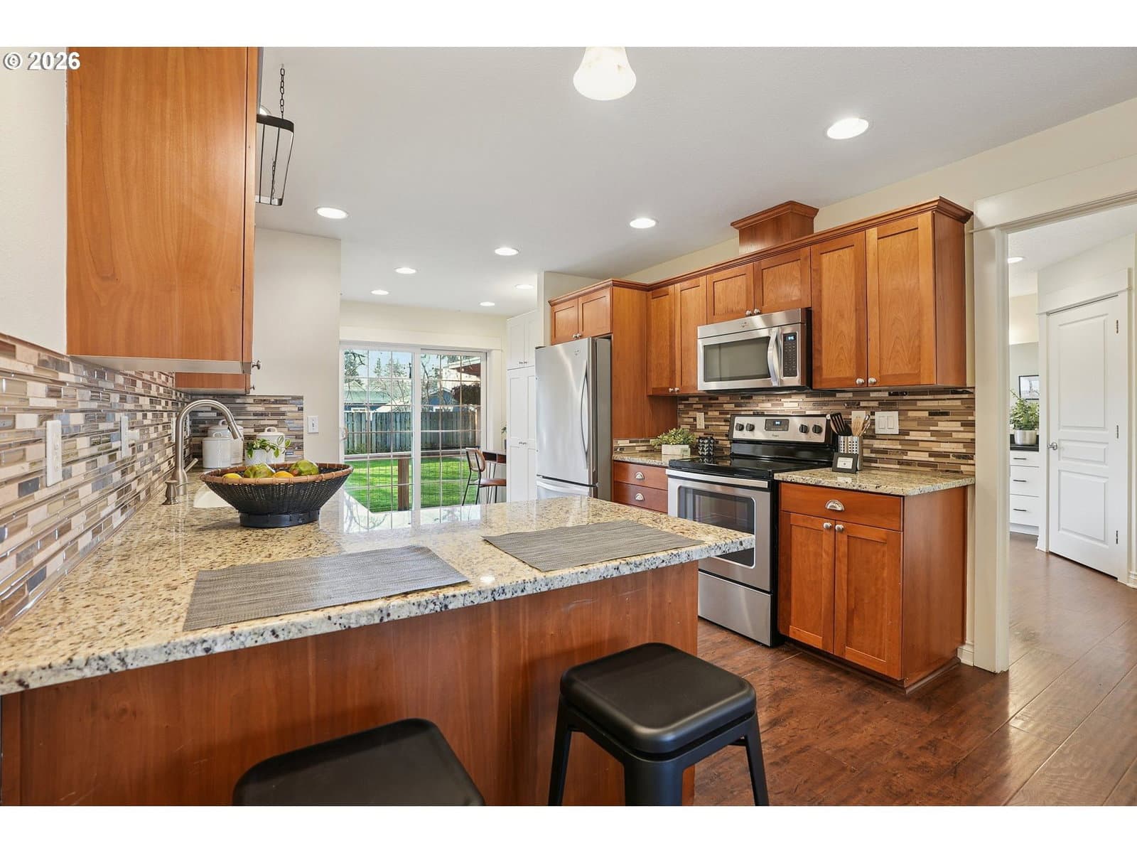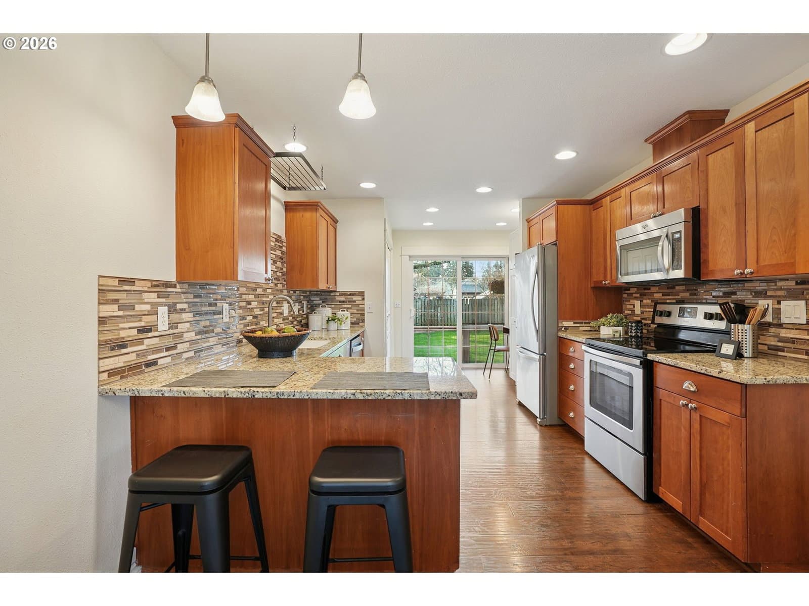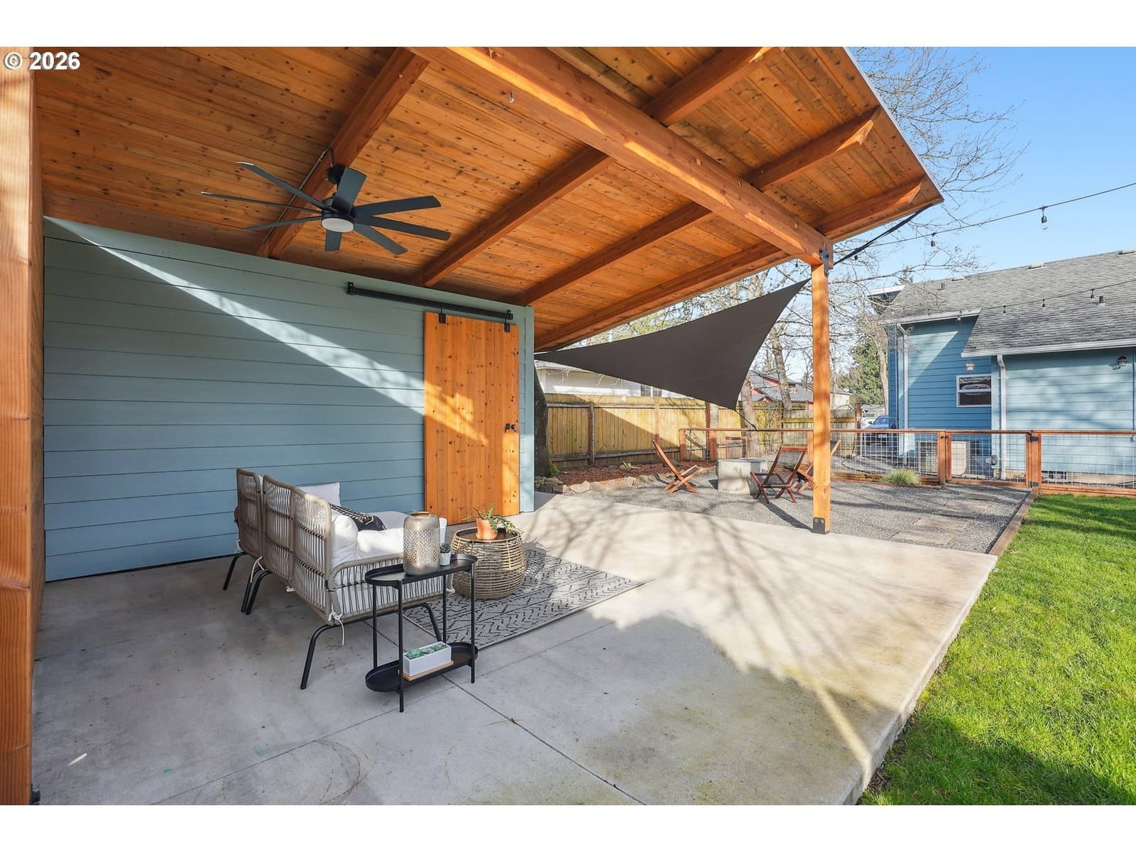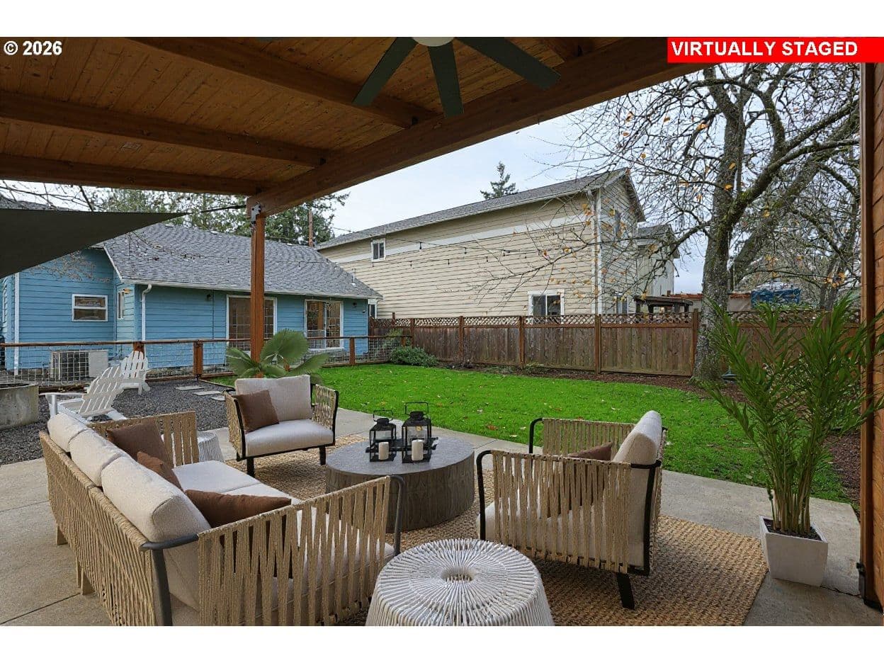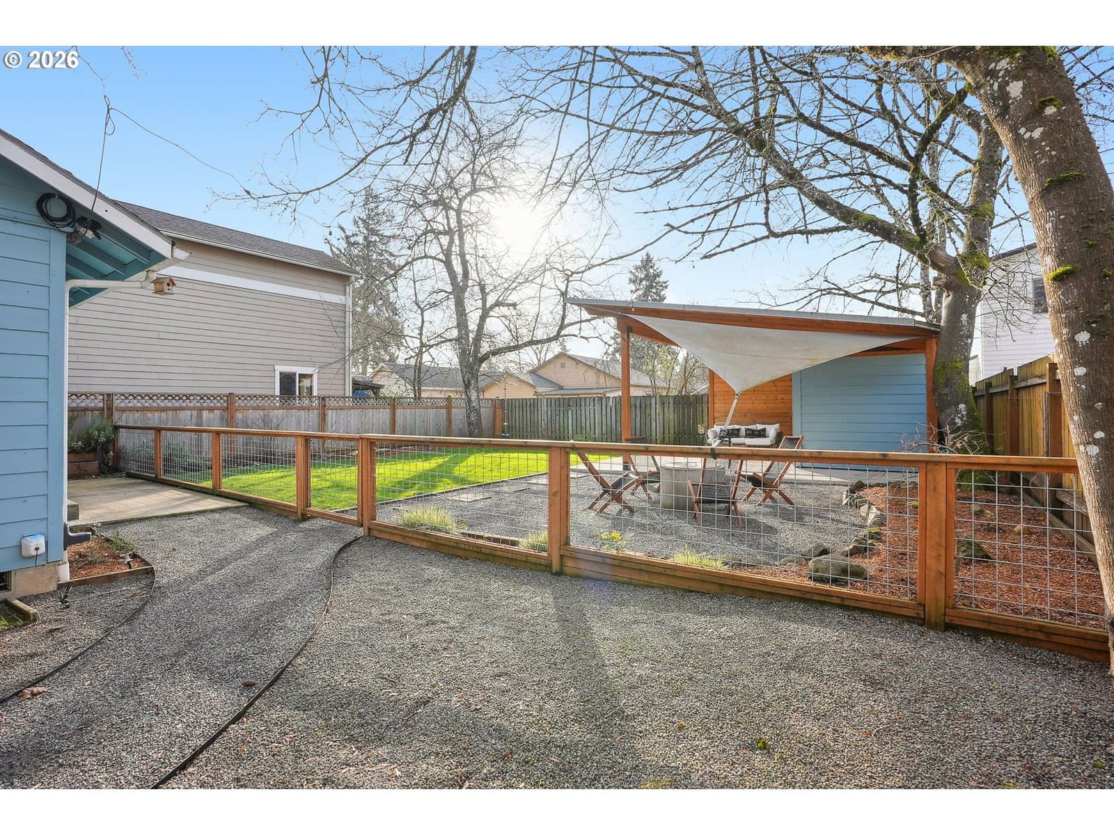 Offers in hand and reviewing so come quickly. Tucked into the heart of the charming Darlington neighborhood, this beautifully upgraded one-level ranch blends comfort, style, and effortless everyday living. Step through the front door into a light-filled living room where gleaming floors set the tone for the home’s warm, modern feel. The open concept design flows seamlessly into the dining area, perfectly positioned between the living room and the fully remodeled kitchen. Whether you’re hosting friends or enjoying a quiet meal, this space brings everyone together. The kitchen is a true standout, featuring stone countertops, a stylish tile backsplash, stainless steel appliances, a generous pantry with pull-out drawers, and a convenient eating bar. Just beyond, you’ll find the laundry area on the way to the slider doors that open to your backyard oasis. This home offers three comfortable bedrooms, including a serene primary suite with a walk-in closet, and private slider access to the backyard. The two additional bedrooms share a charming second remodeled bathroom, complete with tile flooring and a classic claw-foot tub. If you are looking for extra storage don’t miss the attic which has a 12-foot wide floor running the length of the home and allows one to comfortably stand up even at 6’2” to walk the length. There is an abundance of room. Step outside to discover an entertainer’s paradise you won’t find elsewhere at this price point. The fully fenced backyard features raised garden beds, a cozy fire pit area, and a versatile out building with electricity and a covered patio space ideal for outdoor dining year-round. With parks, mass transit, daily conveniences close by, and an impressive 88 Bike Score, this Darlington gem offers the perfect balance of location, lifestyle, and livability. [Home Energy Score = 5. HES Report at https://rpt.greenbuildingregistry.com/hes/OR10244254]