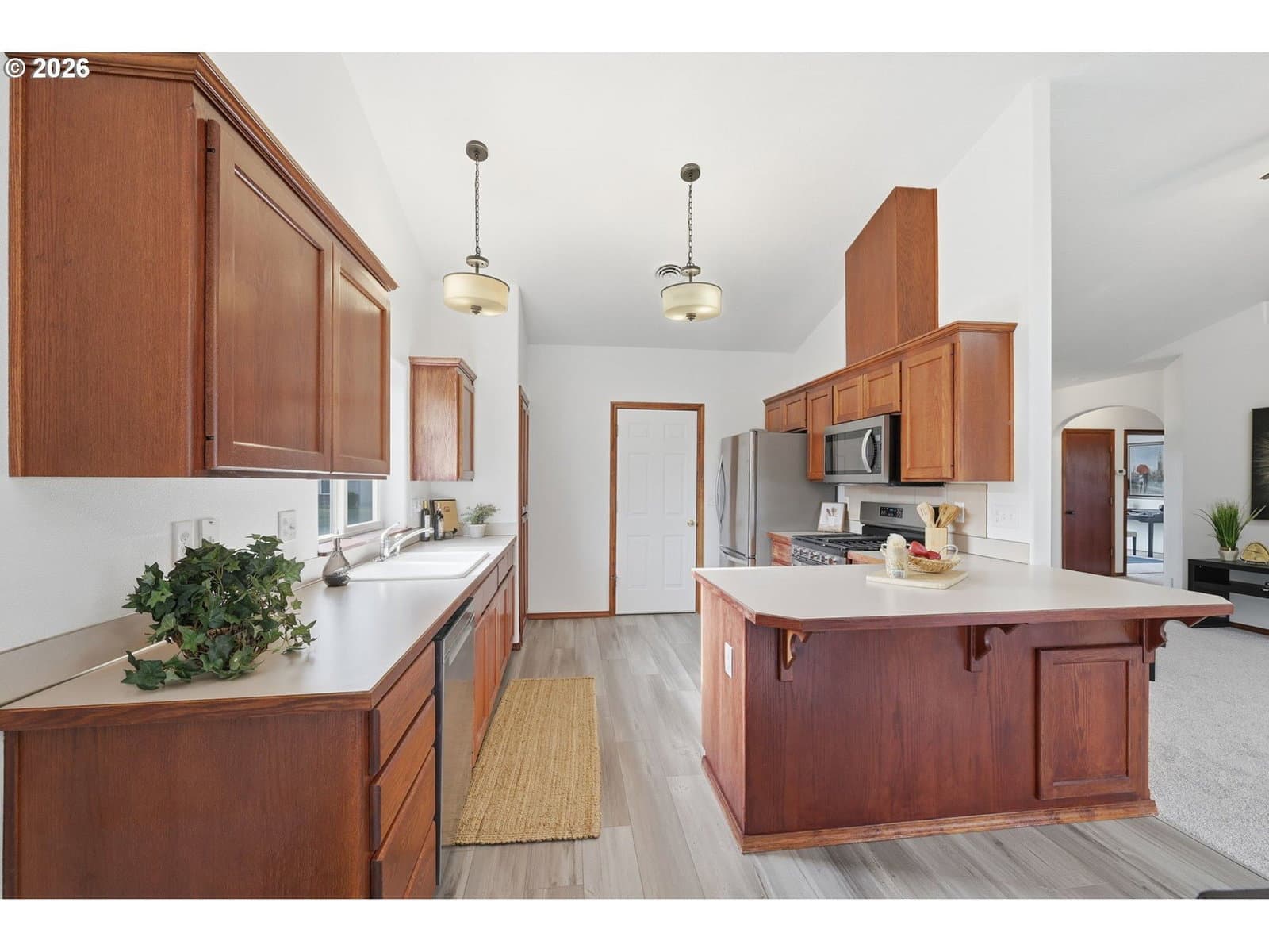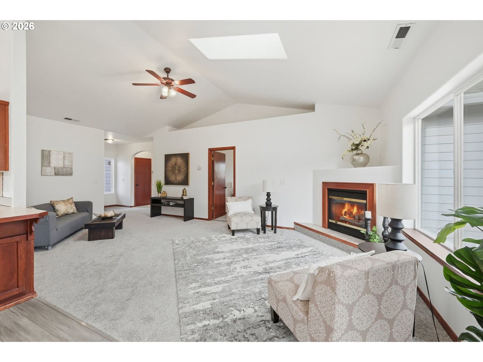 Well-maintained 1996 single-level home located at the end of a quiet dead-end street next to Ferndale Park. This 3-bedroom, 2-bath home features high ceilings and a comfortable, open feel throughout. The primary ensuite offers a roll-in shower and large walk-in closet, providing both convenience and accessibility. The kitchen includes stainless steel appliances, and the living area is anchored by a cozy gas fireplace. Major upgrades include a new roof and HVAC in 2022, and a gas generator installed in 2023 for added peace of mind. Enjoy privacy and outdoor living on the covered back patio, ideal for barbecuing and relaxing.