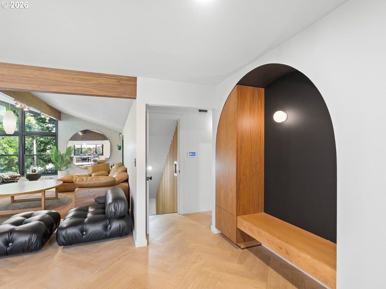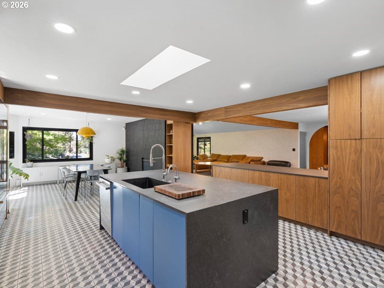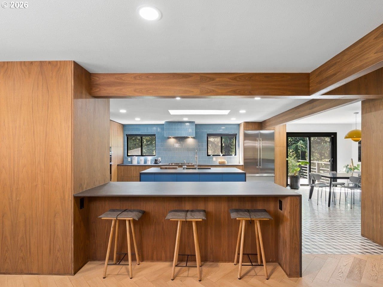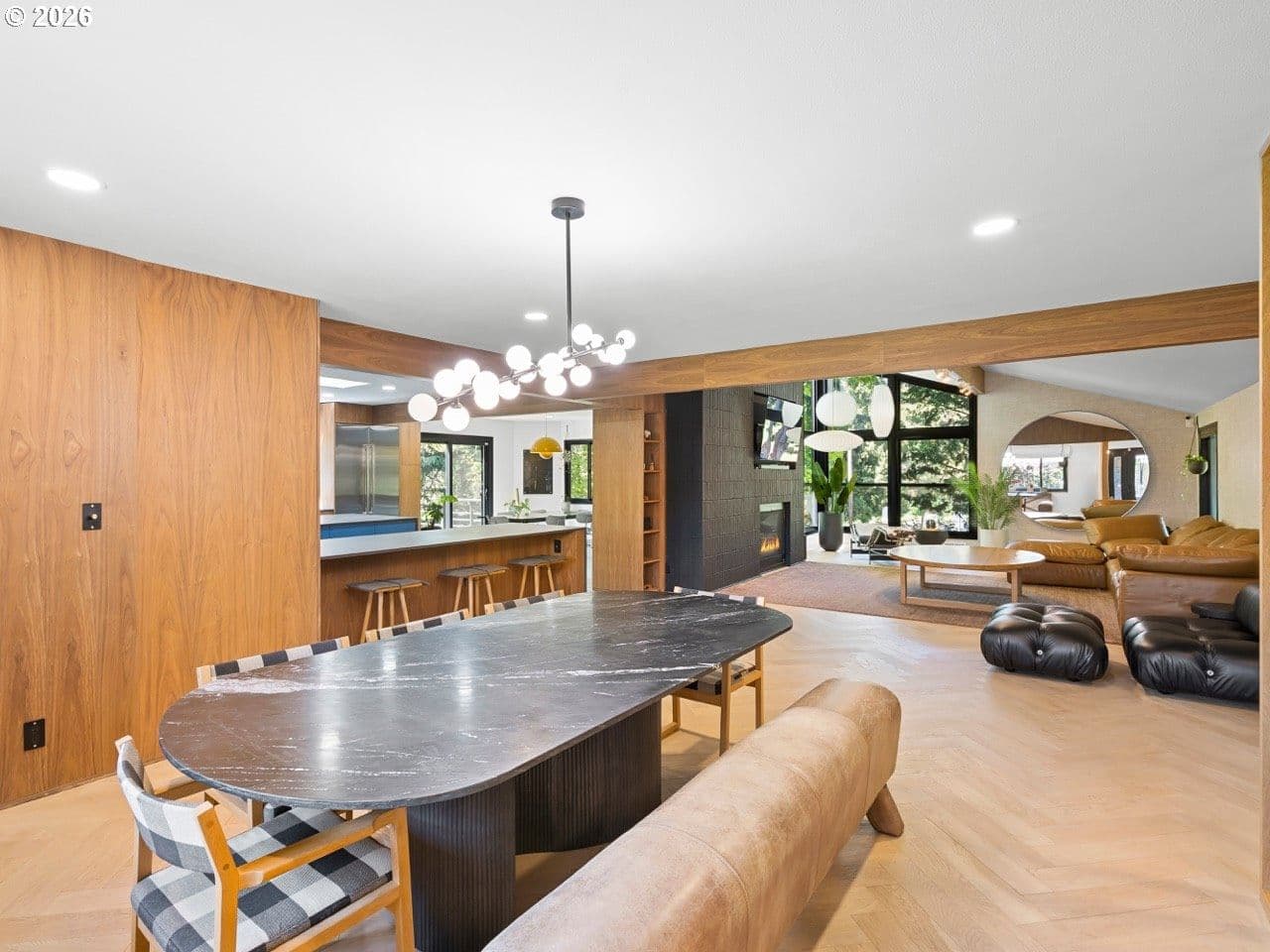 Rare opportunity to own a masterfully re-imagined Mid-Century Modern home in the prestigious Eastmoreland Neighborhood. This 2021 "to-the-studs" renovation seamlessly blends minimalist high-design with the functionality required for a modern lifestyle. No detail was overlooked, resulting in a turnkey sanctuary that feels new while honoring its architectural heritage. The open concept main floor has at its heart a true Chef’s culinary suite, featuring custom-milled walnut cabinetry, sleek quartz countertops, and a premium Jenn-Air appliance package, including a convection steam oven for the serious gourmet. The living room is centered on a custom brick fireplace, vaulted ceiling, large windows, and designer furniture that make staying home a treat instead of a convenience. The primary retreat is a masterclass in functional luxury, centered by king size bed with a wrap-around walnut walk-through closet. The spa-inspired ensuite offers a white marble surround, dual vanities, soaking tub, and a breathtaking custom circular skylight. Two generous bedrooms and a second full bath with two arched vanities and a large tub/shower complete this level. The lower level offers incredible versatility. A fully permitted, legal ADU/In-Law suite features a private exterior entrance, full kitchen, and dedicated laundry. Currently operating as a highly successful Airbnb, it averages $15,000/year in passive income, ideal for multi-generational living or offsetting your mortgage in style. For the hobbyist and At-home worker, the lower level includes a media room, a dedicated home gym and enclosed woodworking shop (partitioned in the garage), and a bedroom sized den/office with its own full bath. With an oversized garage capable of parking 2 vehicles, enough storage for all your tools and sports equipment, and nearly 50’ driveway, you will never need more space. All-new systems: Tankless water heaters, energy efficient windows, updated electrical/plumbing, and radiant flooring. No HOA.