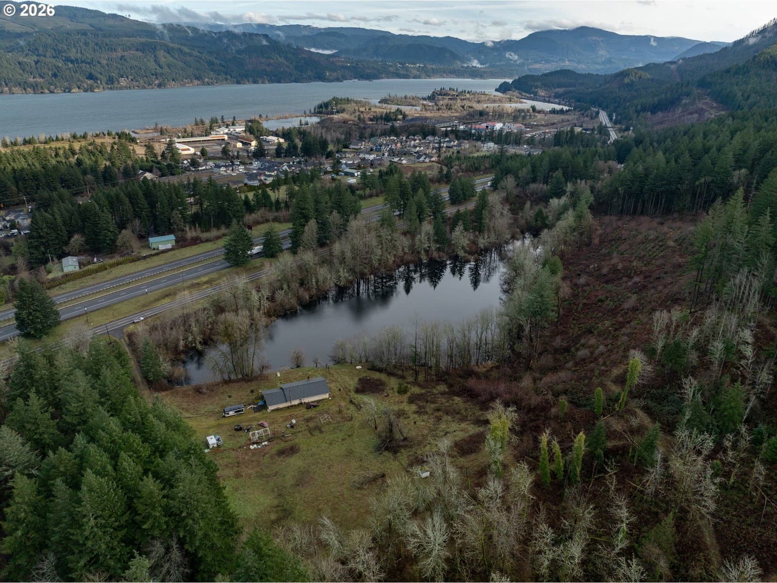 4 bedroom 3 bath one story with 2 car garage with a daylight basement that includes a kitchen, living room, bedroom, bathroom and storage. This fixer is just waiting for your improvements, remodel or rebuild plans. It sits on an amazing and scenic 20.8 acre property located in the Columbia River Gorge area. Just outside of the Cascade Locks small historic town in along the Columbia River. You have the opportunity to own some of that beauty. The house overlooks a 4 acre pond that has a seasonal stream flowing into it with bass and bluefish. With all of the majestic wildlife the Cascades have to offer wandering around your property. Serene views in every direction. The property was logged in 2021 and replanted so there are fresh new trees growing in. The house has a newer roof as of 2021 with a solid foundation. Update, Replace or Repair? Maybe a great development location. Let the surroundings inspire you.
