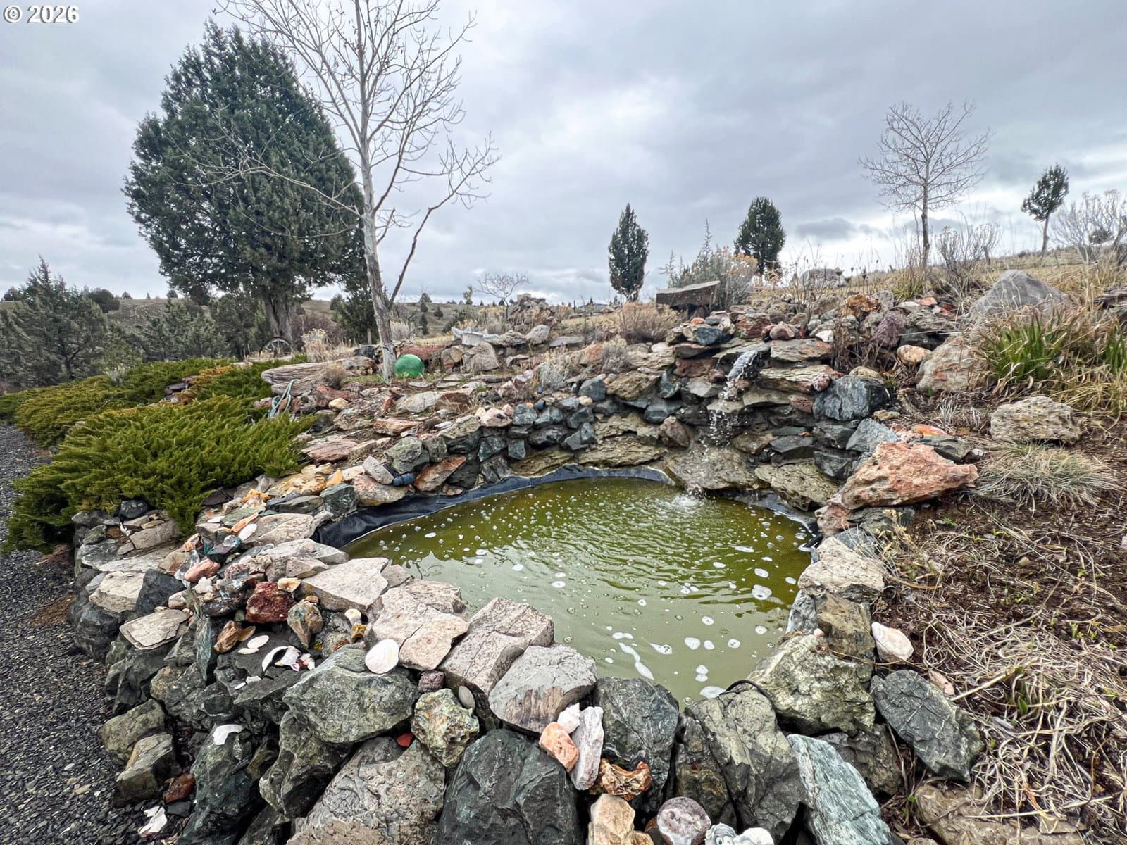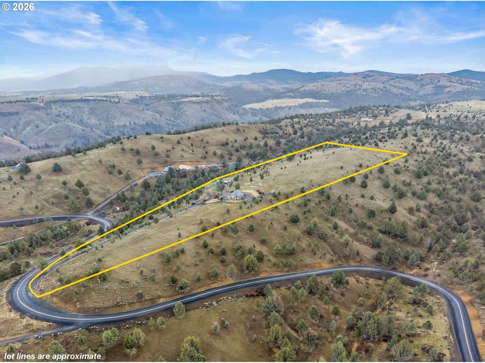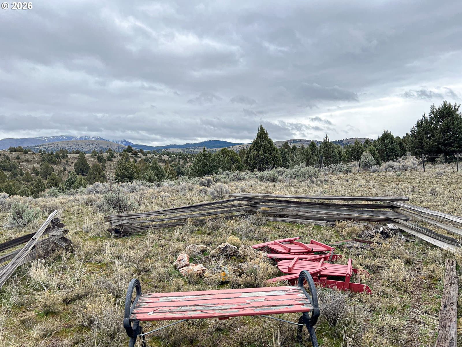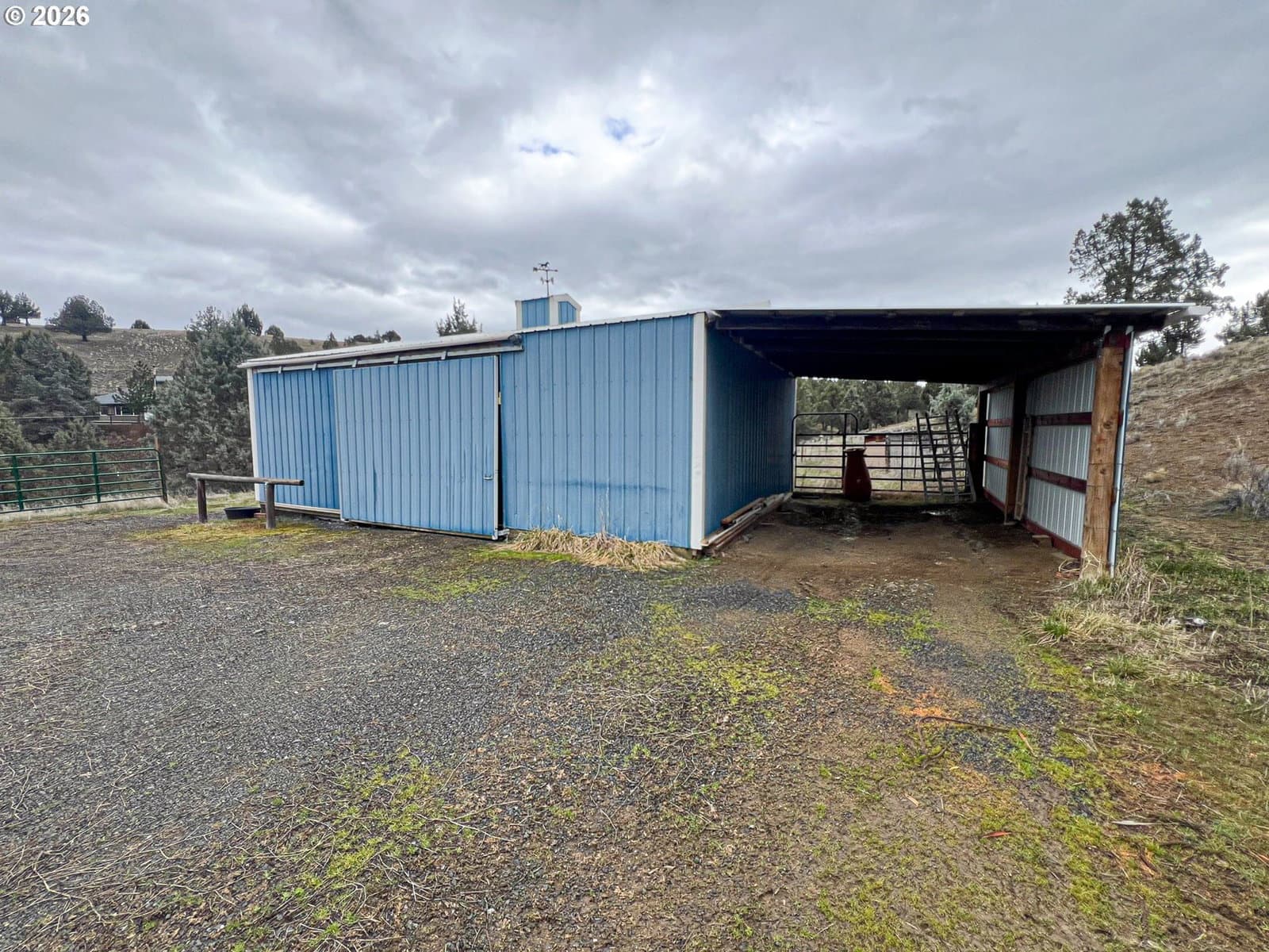 Enjoy wide open space and breathtaking 360° views from this 15.35± acre perimeter-fenced property featuring a 2,238 sq ft two-story home built in 1986. Watch incredible sunrises and sunsets from nearly every direction while enjoying the privacy and usability of your acreage.The kitchen offers an island with cooktop, wine storage, and generous counter space ideal for cooking or baking. There is also space to reinstall a traditional wood cookstove for added charm and functionality. The living room features a cozy woodstove and open sightlines to the kitchen and dining areas, creating a comfortable gathering space. A heat pump provides heating and cooling year-round.The primary suite is located on the second level and includes a walk-in closet and corner shower. On the main level you’ll find a 15’ x 12’ bedroom, a bathroom with walk-in shower, and a flexible room perfect for a home office or hobby space with a slider that opens onto the large paver patio.Outside, the property is set up for country living with a gated entry and circular gravel driveway. Relax in the private hot tub on the patio or enjoy the peaceful pond with waterfall feature.Outbuildings include a 504 sq ft attached garage with built-in shelving and workbench, a 768 sq ft barn for hay or livestock, a lean-to for additional covered storage, and a storage shed. Underground sprinklers, apple, cherry, pear & plum trees & an RV hookup is available.Shared well with a 2,000-gallon cistern.