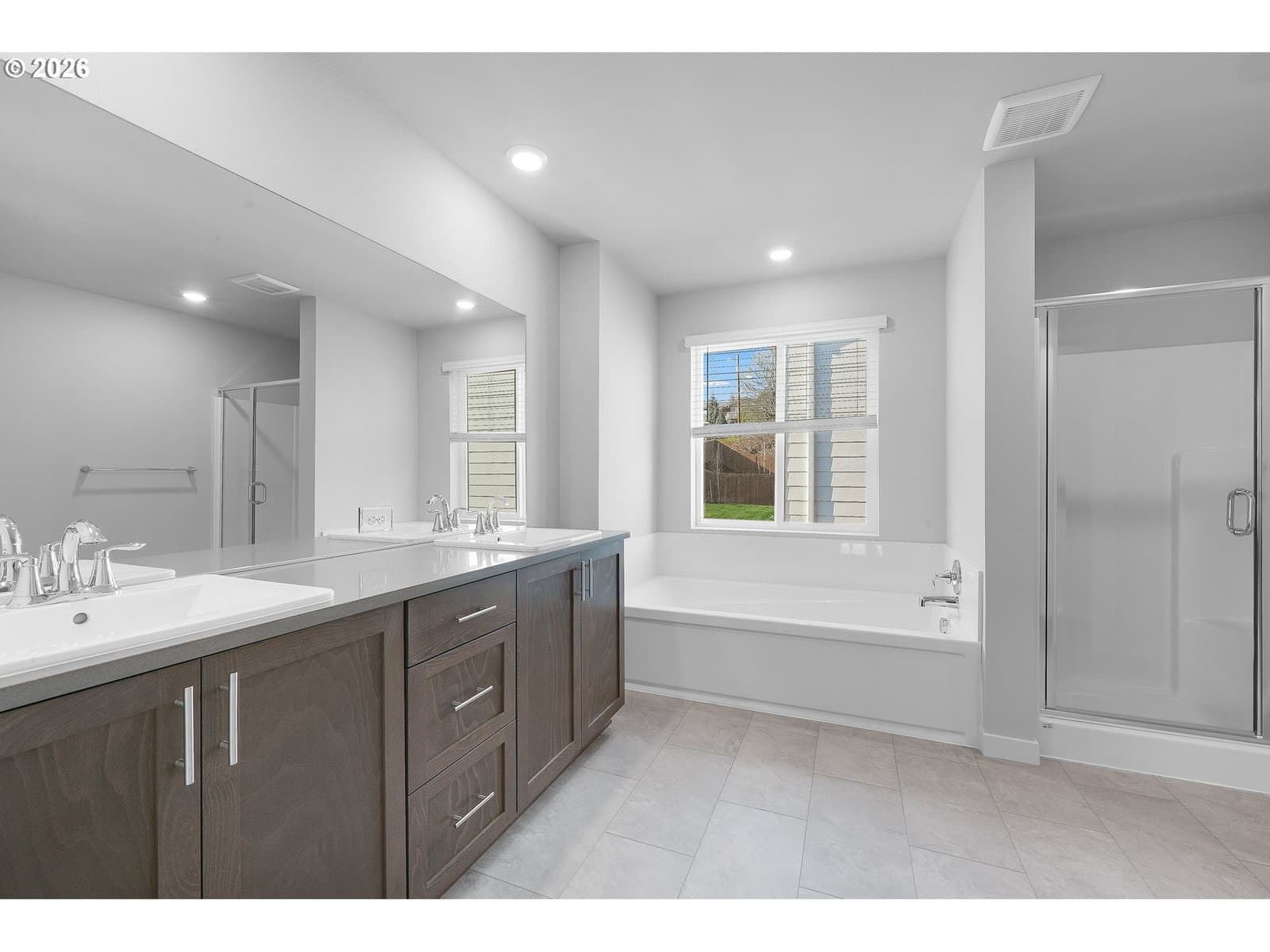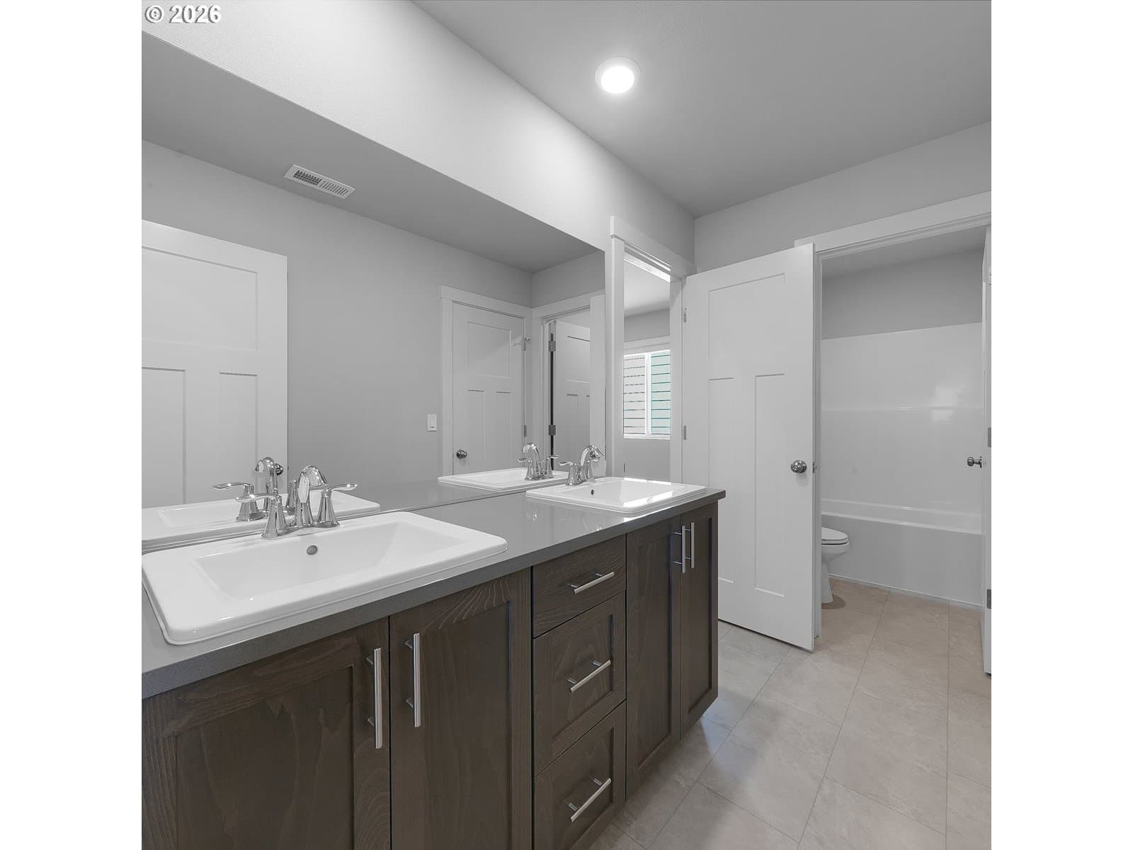 This move-in ready new construction home is located in the highly anticipated Coburn Terrace community in SE Salem, just minutes from I-5, Costco, Trader Joe’s, shopping, dining, and downtown Salem. The Ashland plan features an inviting open-concept main floor where the modern kitchen, great room, and dining area flow seamlessly together, with access to a patio and a convenient tech nook. Upstairs are four bedrooms, including a spacious primary suite with a double vanity, separate tub and shower, and walk-in closet, while two bedrooms share a Jack-and-Jill bathroom. Interior highlights include quartz countertops, shaker-style cabinets, two-tone interior paint, a gas fireplace with floating mantle, LVP in the kitchen and entry, and LVT in the bathrooms. This home also includes central air conditioning, a refrigerator, washer and dryer, blinds, landscaping, and fencing—all at no extra cost! Homesite #10. Exterior & photos without watermark are of actual home! Other photos are of a similar home for decoration inspiration. Incentives available with the use of our preferred lender!