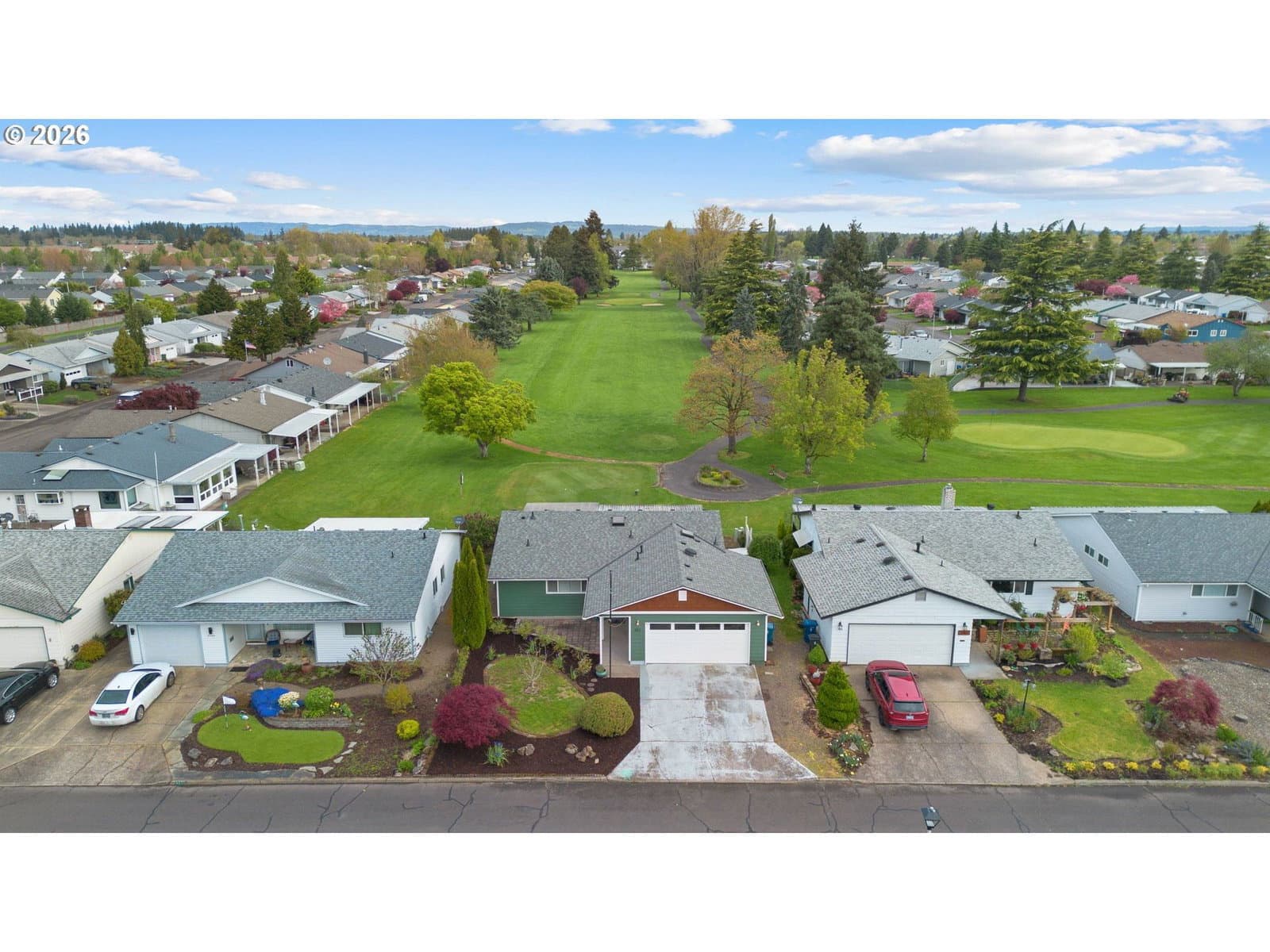 Located at the top of the 15th tee, this beautifully maintained home offers sweeping golf course views across two fairways—perfect for relaxed, everyday living in a vibrant 55+ community.Enjoy your morning coffee on the covered back patio while watching golfers pass by. Inside, the kitchen features granite countertops, and the living room’s large picture window perfectly frames the course. Move-in ready with a low-maintenance layout and a spacious 2-car garage with room for a golf cart.Community amenities include a clubhouse, indoor pool, fitness center, library, card room, and social events. Conveniently located close to shopping and freeway access. Easy, active living with beautiful views.