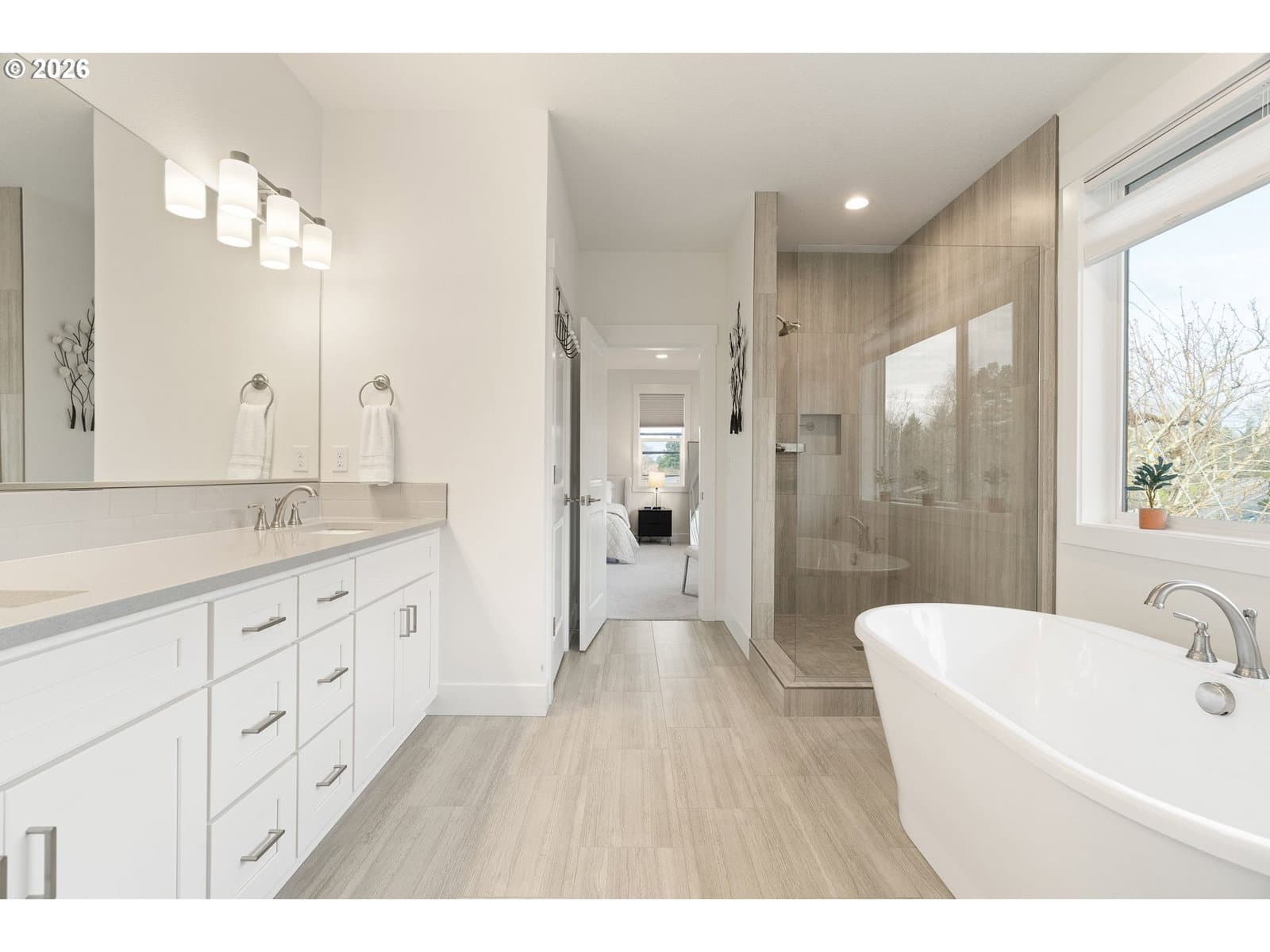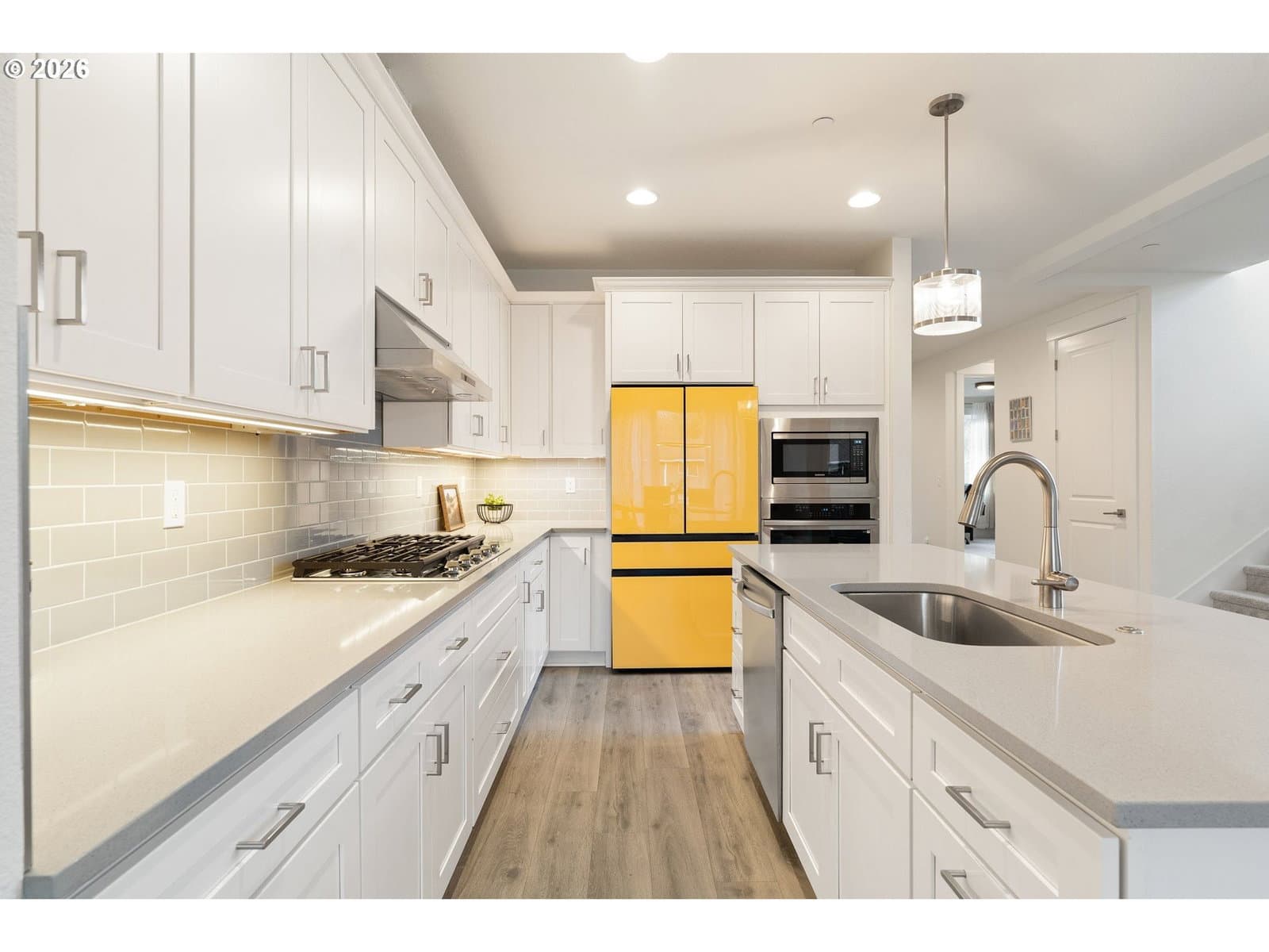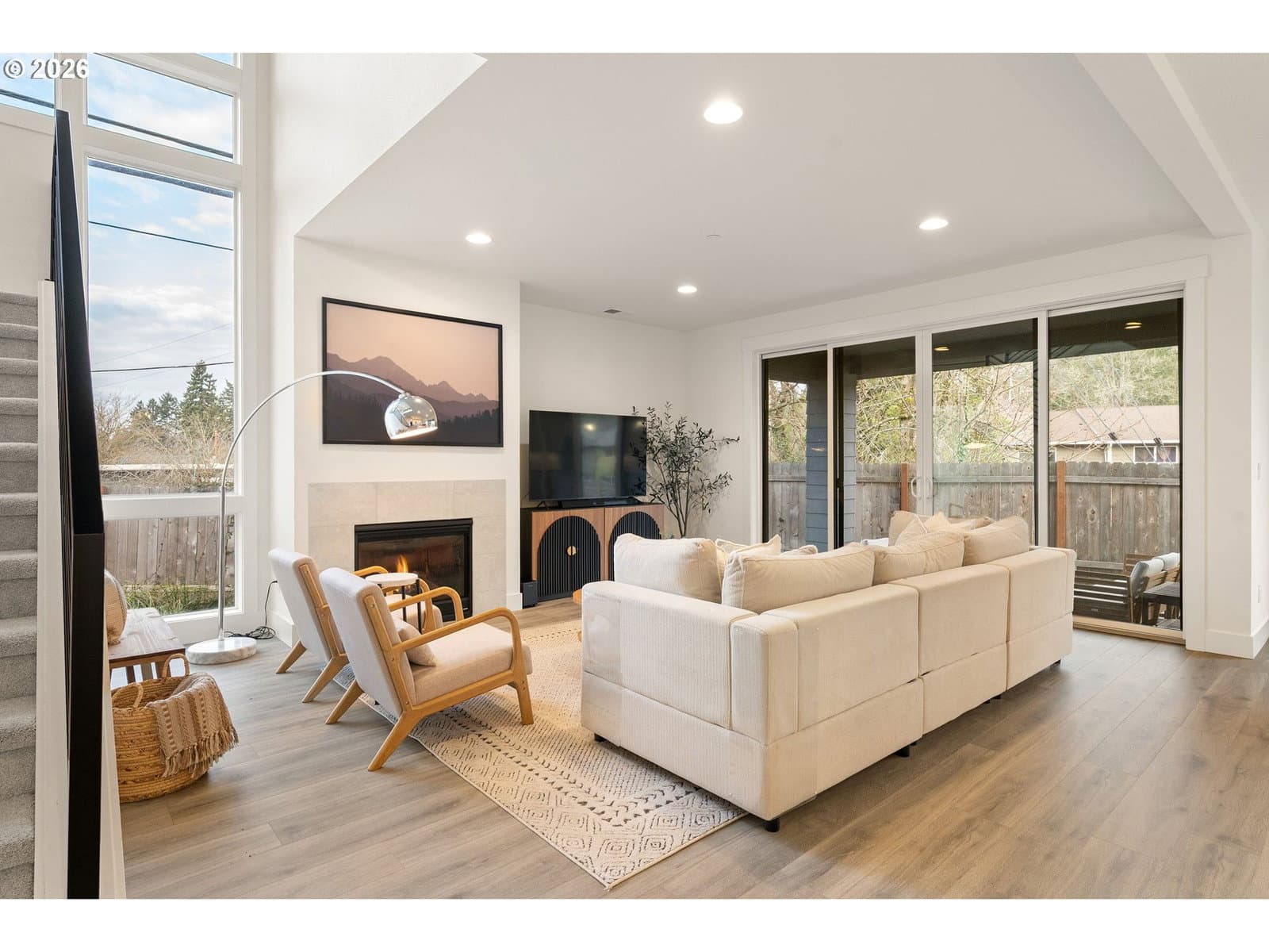 Better Than New – Built in 2022 | Designer Upgrades Throughout!Stylized contemporary home built in 2022 — like new, only better. This stunning open-concept design features soaring ceilings and luxury vinyl plank flooring throughout the main level.The gourmet kitchen is a true showstopper, offering abundant cabinetry, a large center island, and high-end finishes — perfect for entertaining or everyday living. The formal dining area overlooks the backyard, creating a seamless indoor-outdoor feel.The inviting great room impresses with dramatic high ceilings, walls of windows that flood the space with natural light, and a cozy gas fireplace as the focal point.Custom metal stair railings, designer lighting, and thoughtfully selected finishes elevate the entire home.Additional highlights include: Covered front entry, oversized garage with extra-large storage space. EV charger in garage. Covered patio ideal for outdoor entertainingModern design, functional layout, and premium upgrades all minutes to downtown, OHSU, New Seasons, and more! Unincorporated WA Co/COP. [Home Energy Score = 5. HES Report at https://rpt.greenbuildingregistry.com/hes/OR10243863]