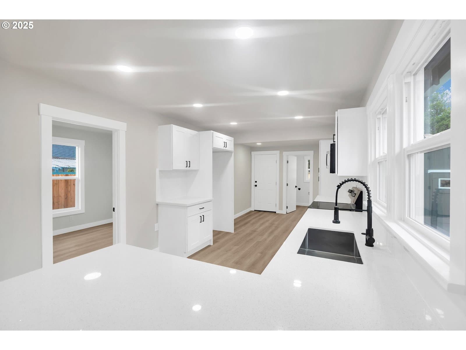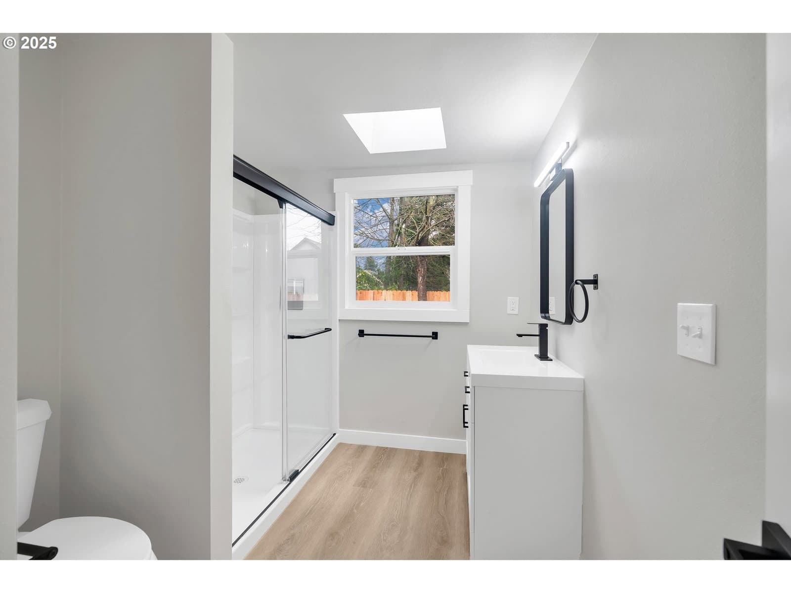 Welcome to this beautifully designed, newly remodeled one-level home offering modern comfort and effortless living in a convenient Southeast Portland location. With three bedrooms and a thoughtfully designed open-concept layout, this home feels bright, airy, and incredibly spacious. LVP flooring flows throughout, while oversized windows in the main living areas fill the home with natural light and enhance the seamless connection between the living, dining, and kitchen spaces—perfect for both everyday living and entertaining.The primary bedroom features a private ensuite bathroom with a walk-in shower, creating a relaxing retreat. Step outside to a fully fenced backyard with a tool shed, ideal for storage, hobbies, or gardening.This home offers easy access to parks, schools, shopping, and dining, with quick connections to I-205 and public transportation for an easy commute throughout Portland. Enjoy nearby green spaces, neighborhood amenities, and the convenience of being minutes from both urban essentials and outdoor recreation. Move-in ready and completely new, this home delivers style, comfort, and an excellent location. [Home Energy Score = 4. HES Report at https://rpt.greenbuildingregistry.com/hes/OR10244218]