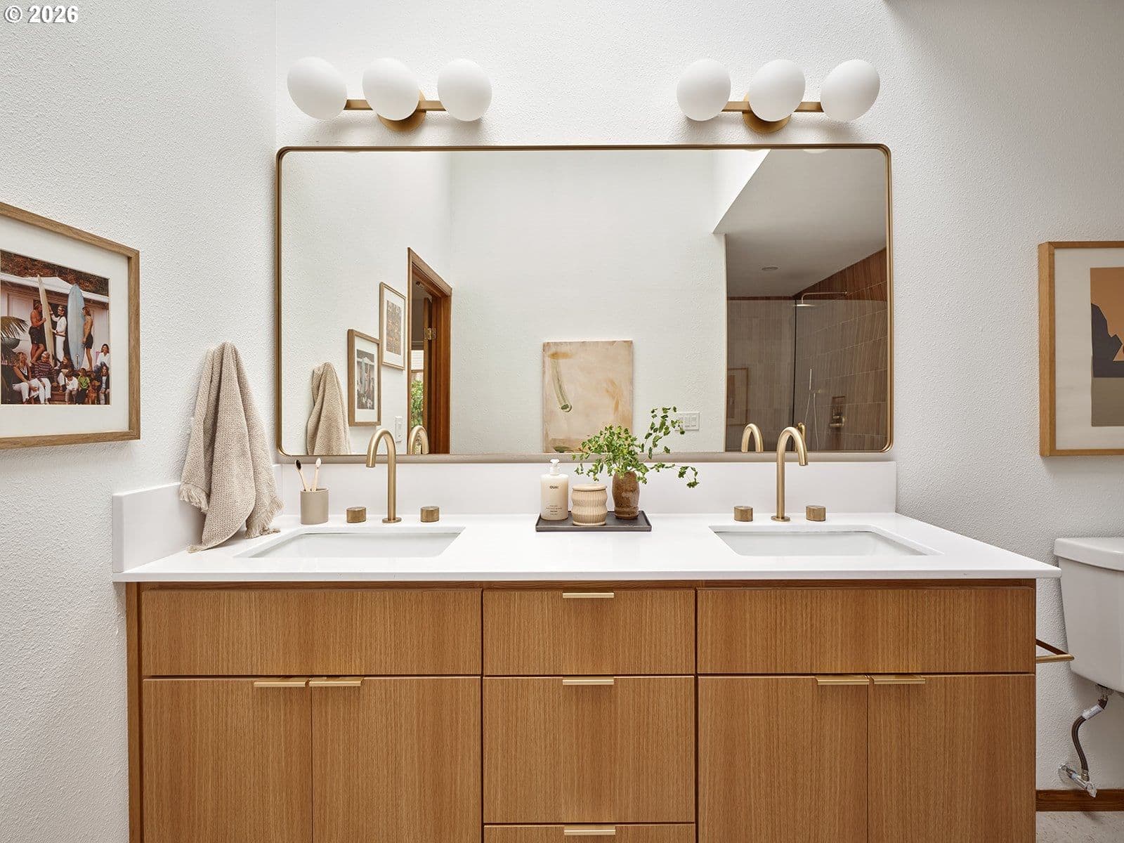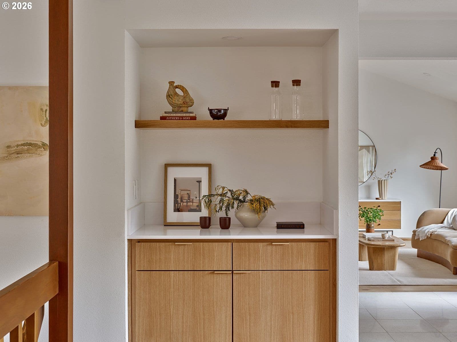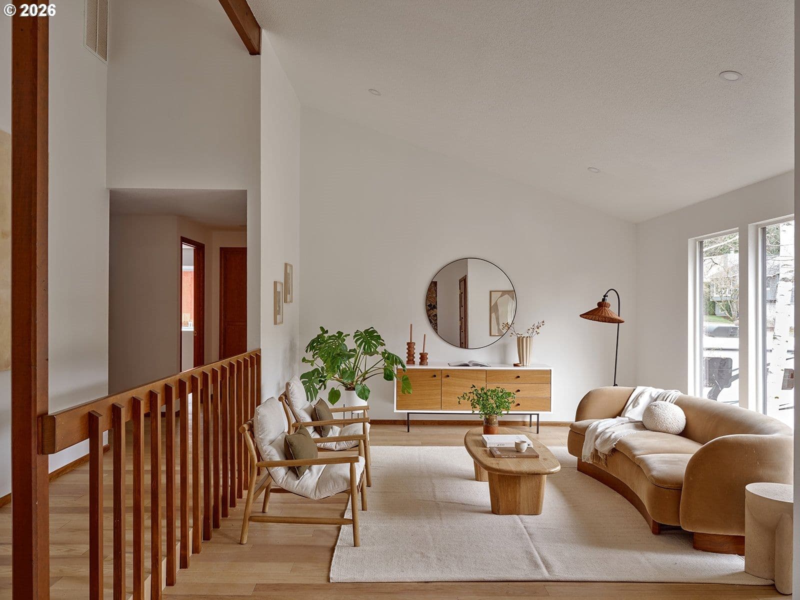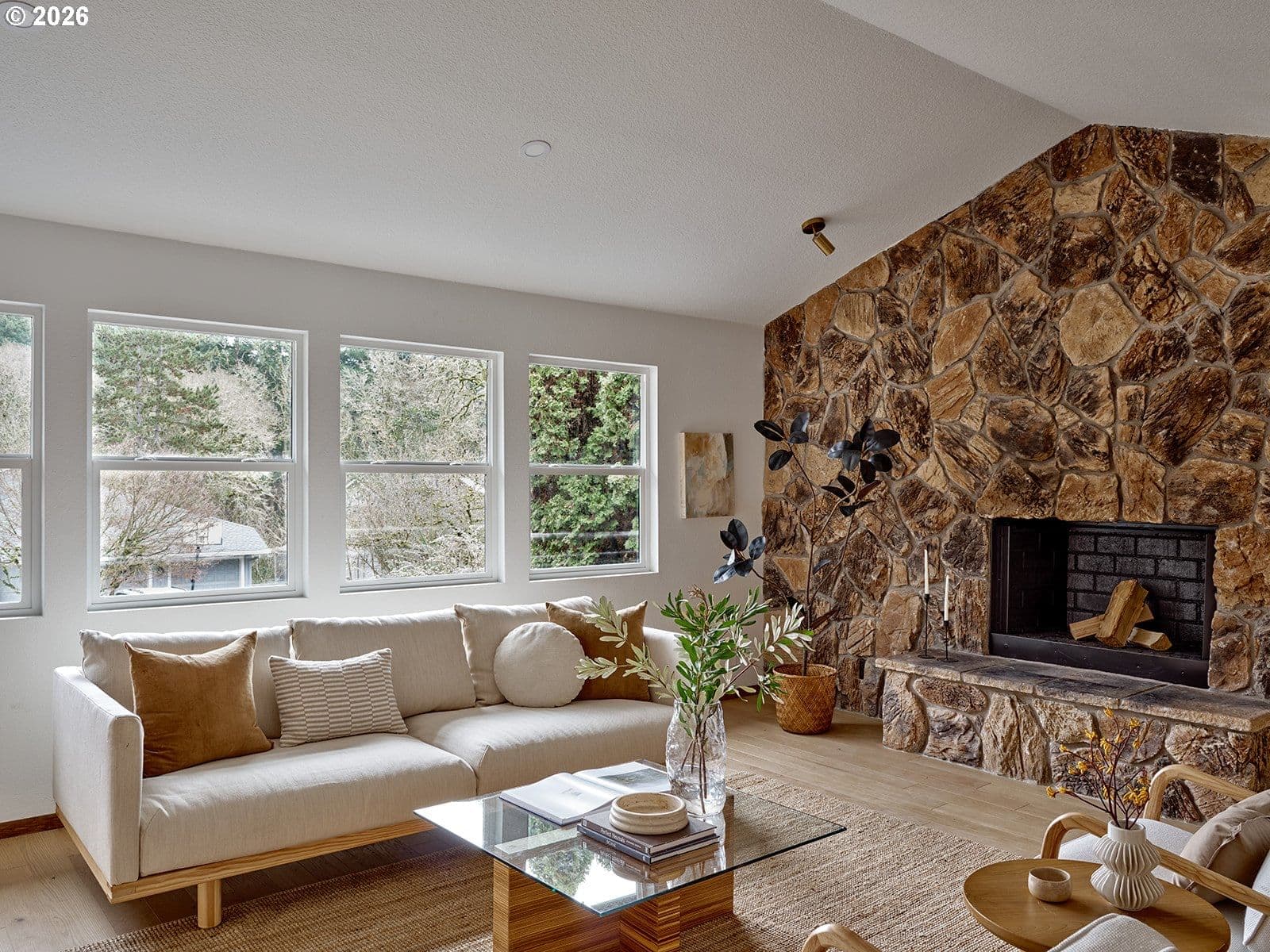 This one is straight out of Dwell Magazine. A truly special mid-century modern retreat that lives large, light, and effortlessly functional; all on one level. Vaulted ceilings stretch across the main living spaces, while multiple skylights wash the home in soft, natural light from morning to evening. New windows sharpen the clean lines and brighten every corner, making the entire home feel open, calm, and expansive.At the heart of it all is a thoughtfully updated kitchen, featuring custom white oak cabinetry, modern appliances, and a warm palette that pairs beautifully with the white oak engineered hardwood floors throughout. The layout is generous and intentional—every room feels oversized, from the wide living areas to the large bedrooms that offer space to breathe, work, rest, and truly settle in.The primary suite is impressively large, designed to feel like its own private wing. In the primary bath, designer tile, a spacious shower, and elevated finishes deliver a clean, spa-like experience that feels straight out of a design spread. A large laundry room and an oversized garage round out the home’s everyday practicality—without sacrificing style.Anchoring the living room is an original stone fireplace, a timeless nod to the home’s mid-century roots. And outside, the setting matches the interior vibe: a quiet, peaceful neighborhood that feels tucked away, yet connected.With a brand-new roof, curated updates, and design-forward details reminiscent of Herman Miller and Rejuvenation, this home is the rare combination of architectural charm and modern ease—ready to impress from the first step inside.