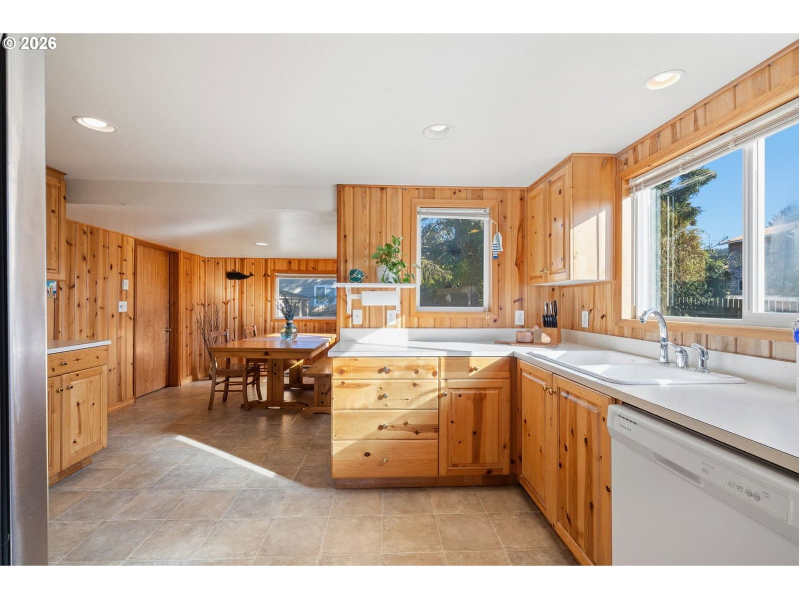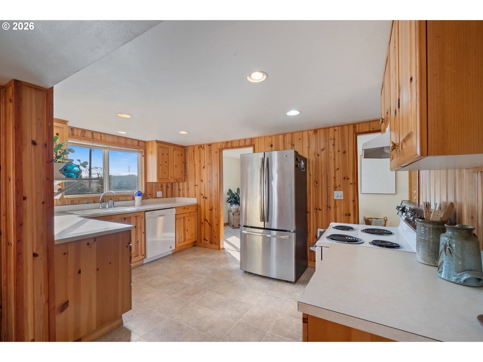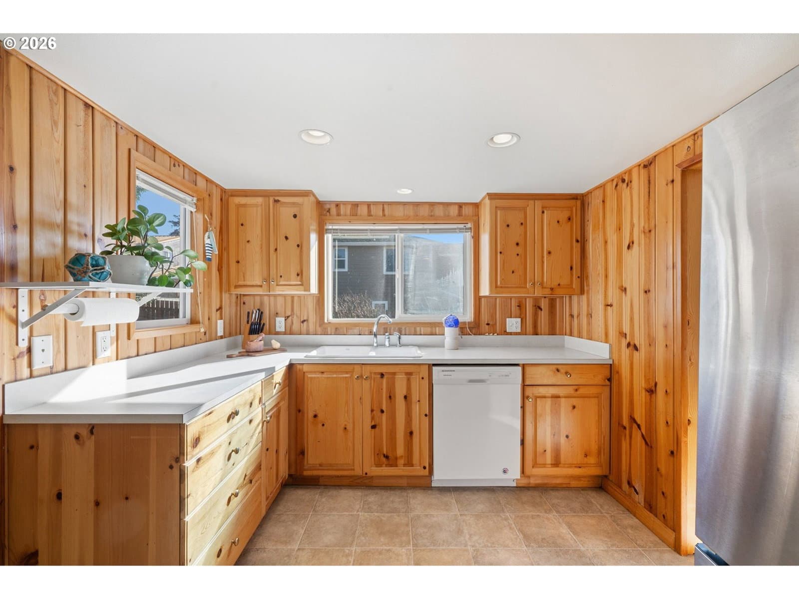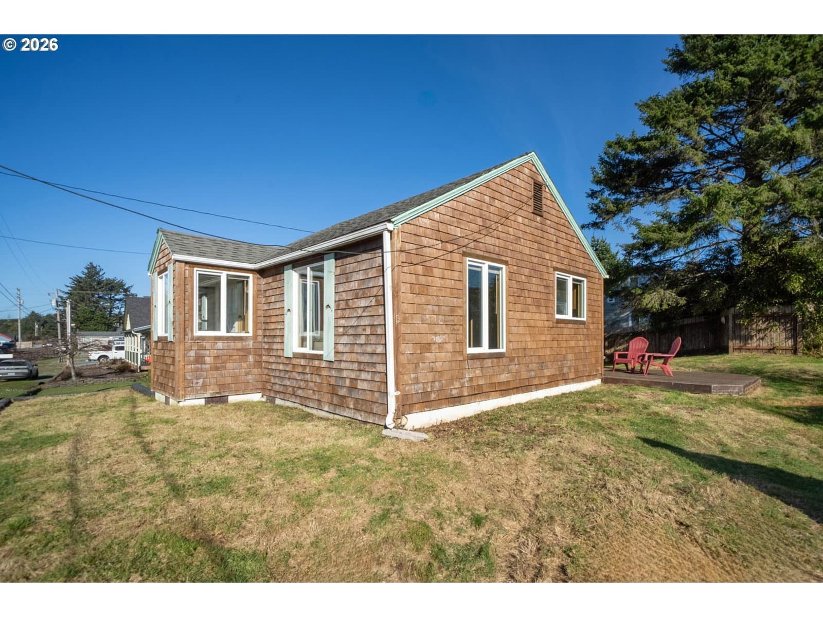 Charming coastal cabin in the heart of Rockaway Beach, located on an elevated lot and outside the FEMA Special Flood Hazard Area, a valuable consideration at the coast. This darling retreat is full of character, featuring classic knotty pine walls and cabinetry that create a warm, nostalgic beach-house feel. Bright, cozy, and full of good energy, it’s the kind of place where memories are made.Set on a generous, sun-filled lot, you’ll enjoy a big sunny yard perfect for relaxing or entertaining, plus a spacious deck for morning coffee or evening gatherings. A Tuff Shed provides excellent extra storage, and the detached garage is ready for a little TLC and your personal touch. Just blocks to the beach and an easy stroll to Rockaway’s best restaurants, shops, Pelican Brewery, and ice cream! This sweet cabin captures everything people love about coastal living.