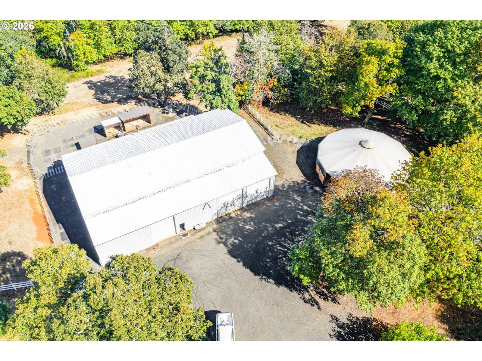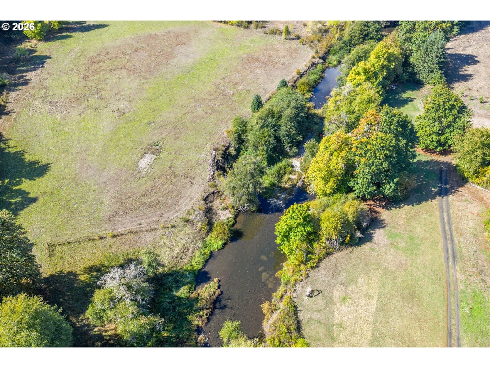 Has 2 wells. One at the house & one at the workshop. Hot water at barn. Multiple 250 V outlets at workshop. 2 gas fireplaces and generator hookup at house. Well at the barn can be switched to be used at the house as well. House has 2 AC & heat via heat pump in 2 different zones. One unit is a hybrid & can switch from electric to propane. 1/4 mile of Rickreall Creek frontage. Ove toilets at house & workshop. Workshop is heated. ADA accessible.