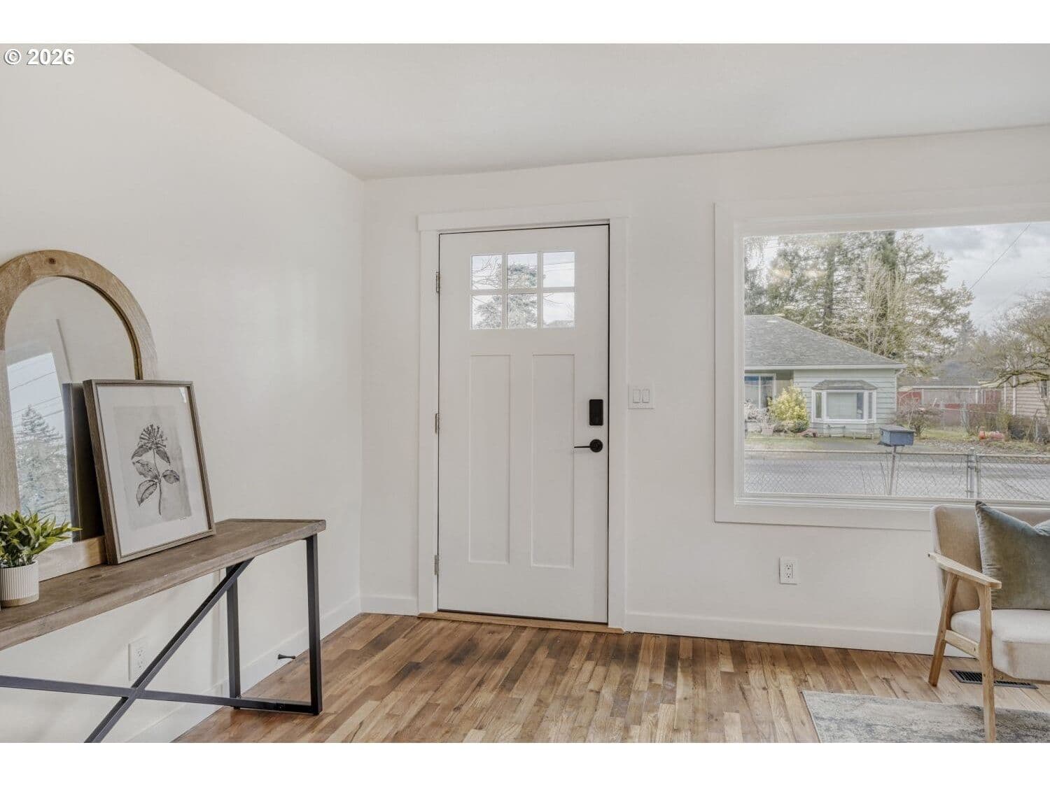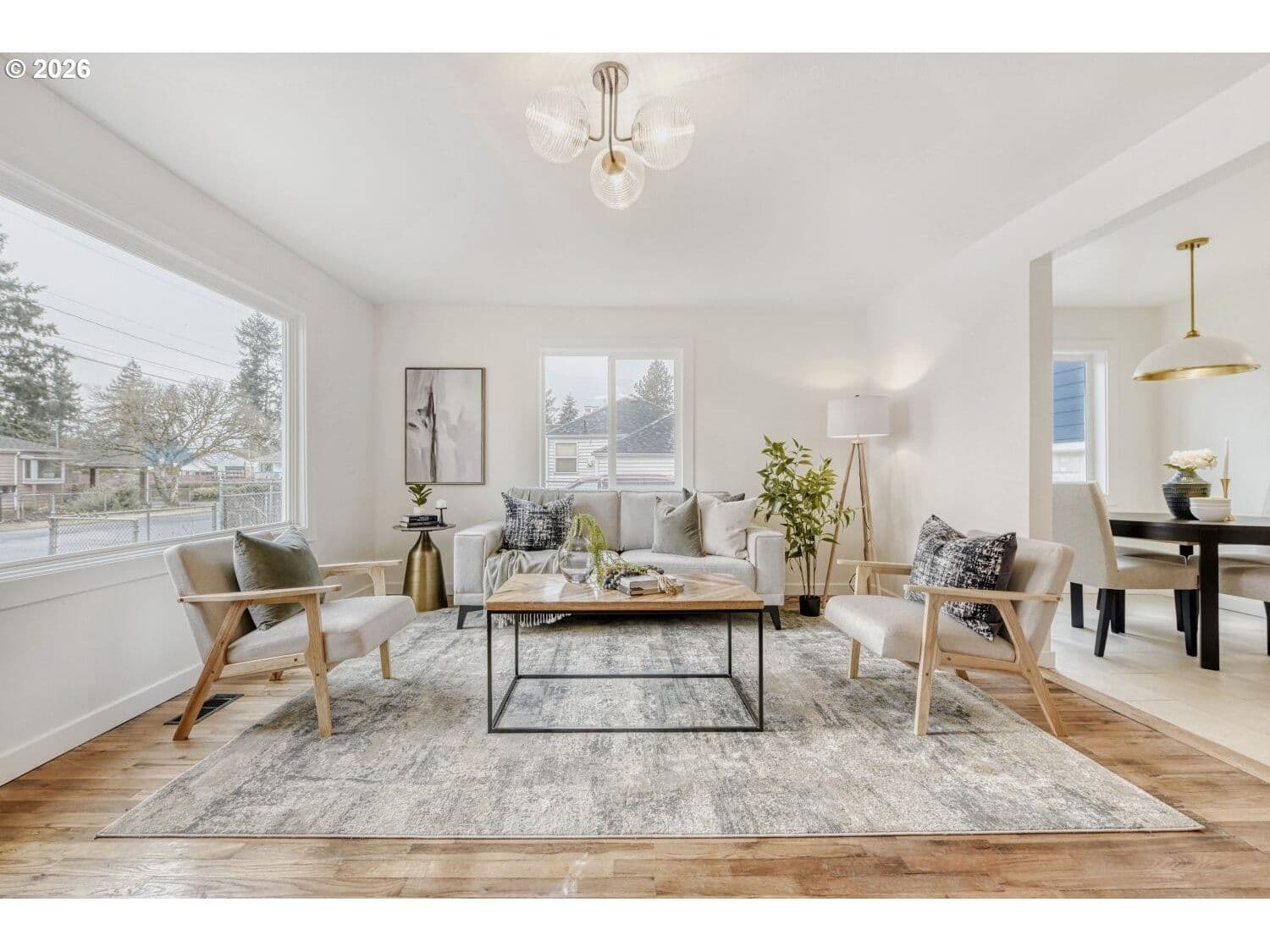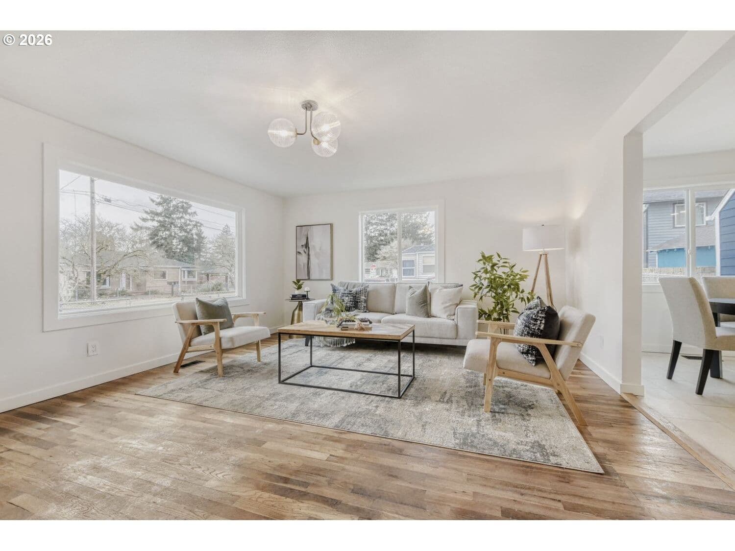 Welcome to SE Henderson Court — a beautifully reimagined 4-bedroom, 1-bathroom home offering 1,400+ square feet of finished living space on the main level, plus an additional 800+ square feet of clean, unfinished basement ready for your ideas—whether that’s future living space, a home gym, workshop, or extra storage. This home has been thoughtfully renovated from top to bottom. Exterior upgrades include brand-new siding, windows, exterior doors, fresh paint, updated landscaping, exterior lighting and a newly built deck off the kitchen slider—perfect for seamless indoor-outdoor living. Inside, this house shines with refinished hardwood floors, new flooring in the kitchen, dining, bathroom, and laundry areas, new drywall and trim, fresh interior paint, and all-new lighting throughout. The completely remodeled kitchen features new cabinets, countertops, fixtures, and appliances, while the bathroom and laundry room have been fully refreshed with new fixtures and finishes. Major system upgrades include a new furnace and new electrical panel, providing peace of mind for years to come. Every update was selected with comfort, function, and longevity in mind—making this a truly move-in-ready home with flexibility to grow. [Home Energy Score = 1. HES Report at https://rpt.greenbuildingregistry.com/hes/OR10244016]