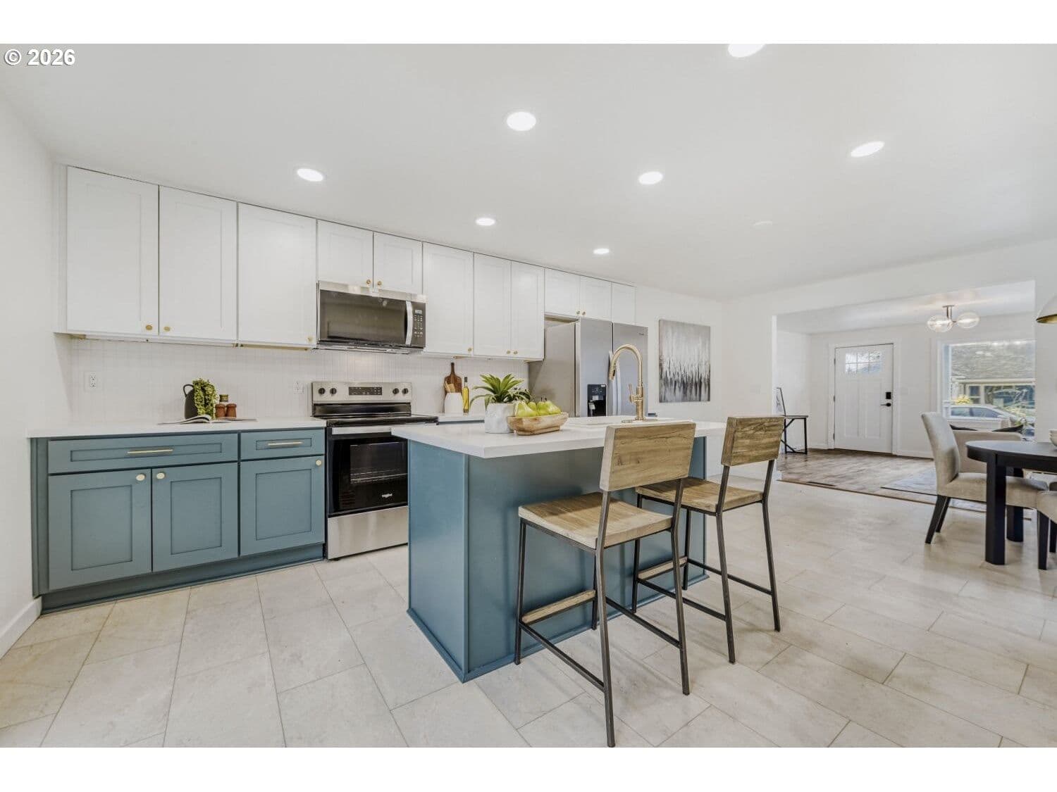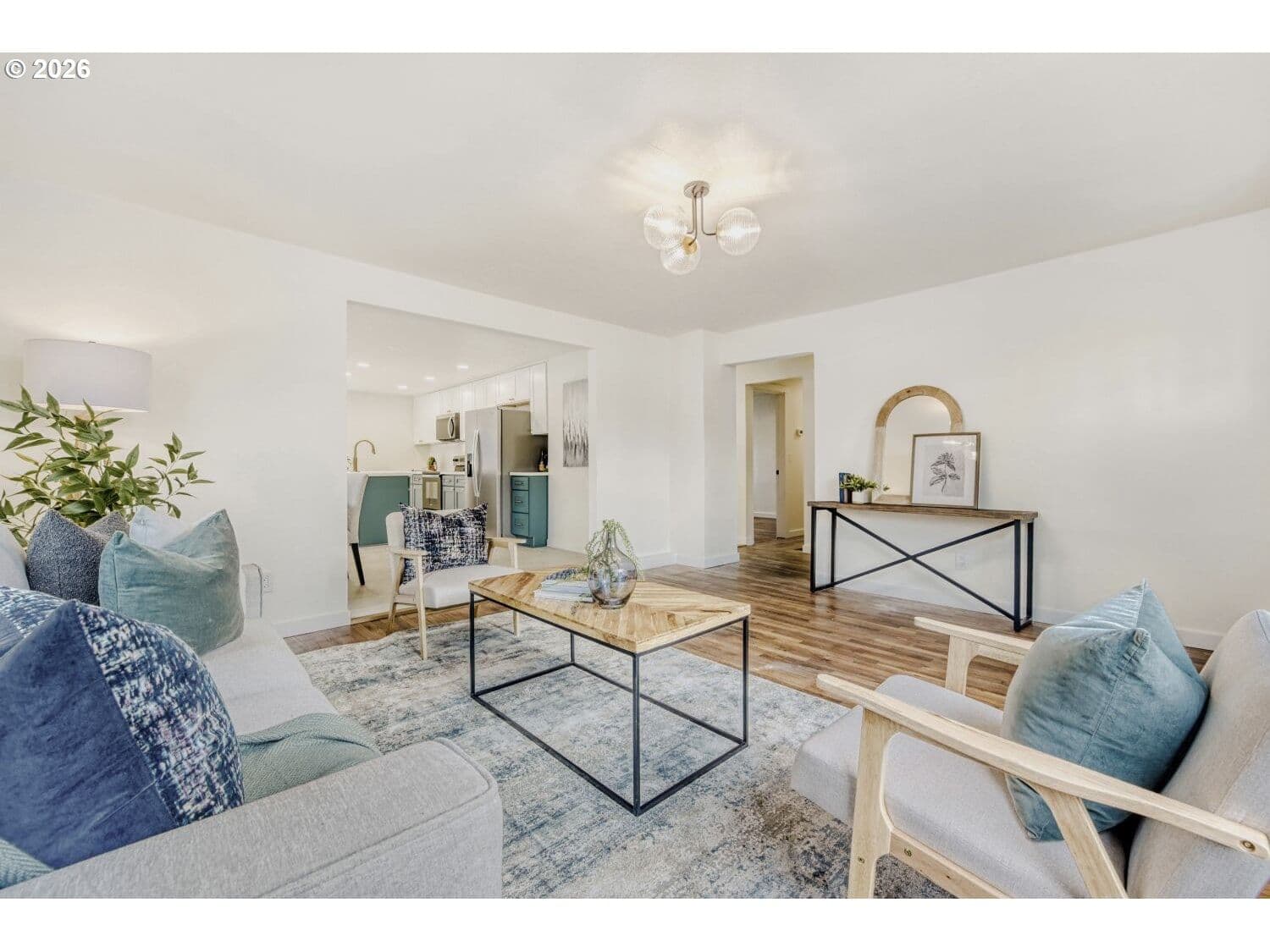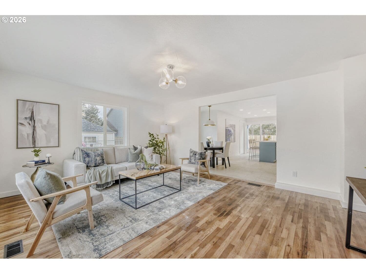 Welcome to SE Henderson Court — a beautifully reimagined 4-bedroom, 1-bathroom home offering 1,400+ square feet of finished living space on the main level, plus an additional 800+ square feet of clean, unfinished basement ready for your ideas—whether that’s future living space, a home gym, workshop, or extra storage. This home has been thoughtfully renovated from top to bottom. Exterior upgrades include brand-new siding, windows, exterior doors, fresh paint, updated landscaping, exterior lighting and a newly built deck off the kitchen slider—perfect for seamless indoor-outdoor living. Inside, this house shines with refinished hardwood floors, new flooring in the kitchen, dining, bathroom, and laundry areas, new drywall and trim, fresh interior paint, and all-new lighting throughout. The completely remodeled kitchen features new cabinets, countertops, fixtures, and appliances, while the bathroom and laundry room have been fully refreshed with new fixtures and finishes. Major system upgrades include a new furnace and new electrical panel, providing peace of mind for years to come. Every update was selected with comfort, function, and longevity in mind—making this a truly move-in-ready home with flexibility to grow. [Home Energy Score = 1. HES Report at https://rpt.greenbuildingregistry.com/hes/OR10244016]