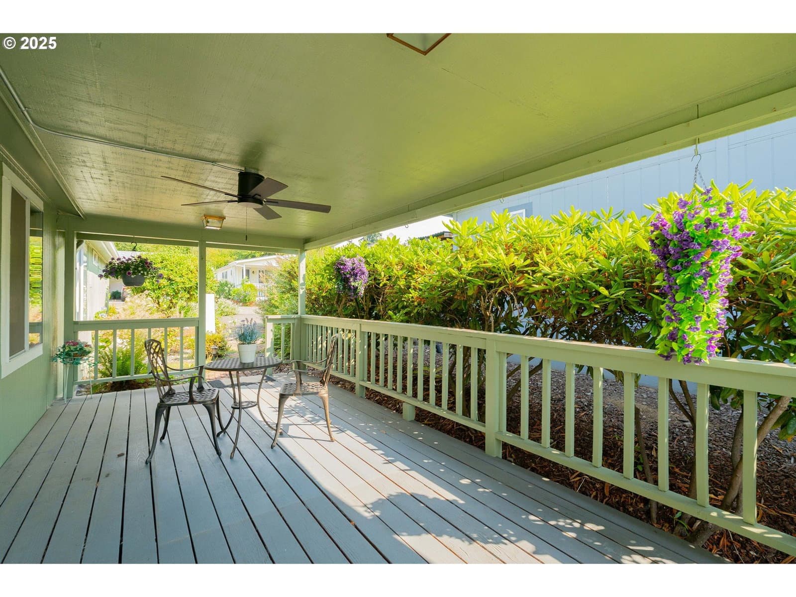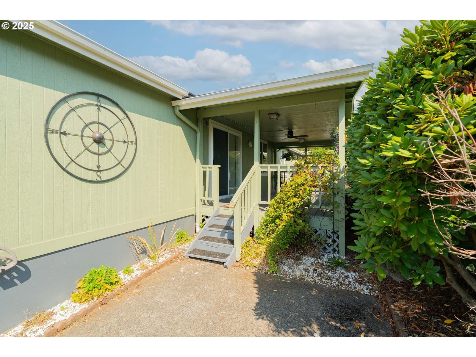 Welcome to your next chapter! This thoughtfully updated 1,412 sq ft, 3-bedroom, 2-bathroom double-wide in the desirable Oak Haven 55+ manufactured home community offers comfort and convenience with too many updates to list. Abundant natural light pours in through vaulted ceilings, three sun tunnels, a skylight, sliding glass doors, and two new front windows. Motorized blinds on the living room windows and sliding doors add modern ease. The chic, functional kitchen boasts plentiful cabinetry/storage, ample counter space, and stainless-steel appliances, including a New dishwasher, and newer free-standing range, built-in microwave, and refrigerator — all appliances included! The large owner’s suite is vaulted, includes a walk-in closet, and private en-suite with new flooring and even more storage space. Oversized laundry room includes built-ins – and washer and dryer are included! For added peace of mind, the exterior was just repainted last year (2024) and the interior freshly painted in 2023. Outdoor living shines with not one but two decks: a spacious covered side deck with a ceiling fan for added comfort, mature landscaping for added privacy, and wired lighting for evening enjoyment. Other thoughtful updates include an electric doorbell, a new security screen door, and an outdoor motorized retractable awning for added shade and comfort. Plus, all carpets freshly cleaned for move-in readiness. Additional highlights include a 2-car covered carport, large driveway, and a heated, powered workshop - ideal for projects and hobbies. Monthly park lease is $795/month. Schedule your showing today!