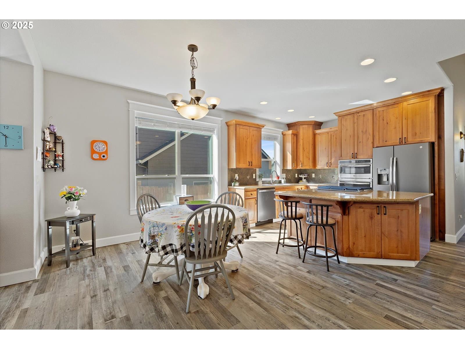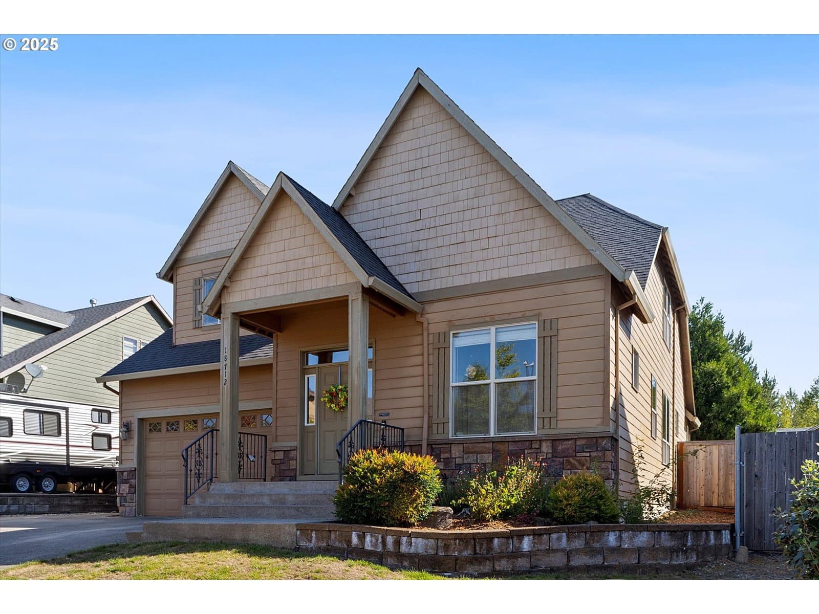 Welcome to this beautifully designed home in the sought-after Timberline Trails neighborhood, where comfort meets style in every detail. The main level offers a warm and open layout with durable vinyl flooring that flows effortlessly to French doors opening into the backyard — perfect for indoor-outdoor living.The kitchen is a true centerpiece, featuring rich knotty alder cabinetry, sleek granite countertops, stainless steel appliances, and a spacious island with gas cooktop. It connects seamlessly to the dining area and vaulted great room, complete with a cozy gas fireplace and custom built-ins.For everyday ease, you’ll find a private office/den, a well-appointed laundry room, and an oversized vaulted primary suite all conveniently located on the main level. Upstairs, three generous bedrooms and a full bath provide plenty of space for family or guests.Recent updates include new vinyl flooring, carpet, interior paint, upgraded kitchen appliances, and a cedar fence in the backyard. Added bonus: RV parking for your extra toys and adventures!This home combines thoughtful upgrades, timeless finishes, and an ideal location — making it a standout in Timberline Trails. Ask About the Vision Listing Advantage™ – Exclusive Buyer Incentive! This home qualifies for a special financing incentive through Vision Mortgage Group, the preferred lender for this listing. Eligible buyers may secure a below-market interest rate — potentially in the 4% range (subject to qualifying criteria). This can significantly reduce monthly payments compared to standard market rates and increase purchasing power.