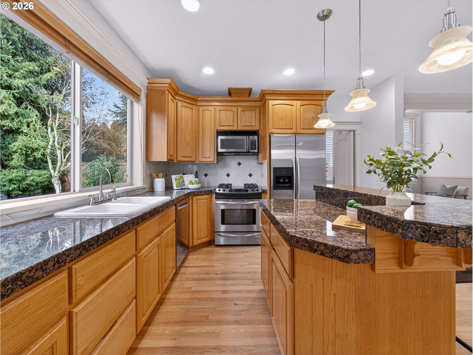4 bdrm + den/office + bonus. Quality-built custom Canterwood home w/beautiful architectural details throughout. This stunning home showcases quality craftsmanship, detailed millwork & high ceilings. The spacious entry & well-defined living areas create a functional flow throughout the home. Vaulted living room opens to formal dining room w/wainscotting & high ceiling. Kitchen features granite countertops, w-in pantry, stainless appliances, eating island & nook that opens to covered deck. Family room has gas fireplace, custom built-ins & wall of windows. The spacious primary suite w/w-in closet has dual vanities & jetted soaking tub. Shared bathroom for 2 bedrooms has dual sinks, tub w/shower & storage area. Main-level office has boxed ceiling & French door entry. Upstairs bonus room could work well as 5th bedroom. Enjoy relaxing, entertaining & gardening in the fenced backyard w/large partially covered cedar deck (2023), built-in corner bench, grassy area & tool shed. 3-car garage has epoxy floor & 50-amp EV charger (240v). Roof (Dec 2025). Gutters (2023). Furn, AC & wtr htr (2020). Refinished hardwood floors, carpet & interior paint (2020). Nest thermostat. Auto sprinklers. Conveniently located near Ibach park, schools, shopping, dining, I-5 & I-205, frwy access & so much more!