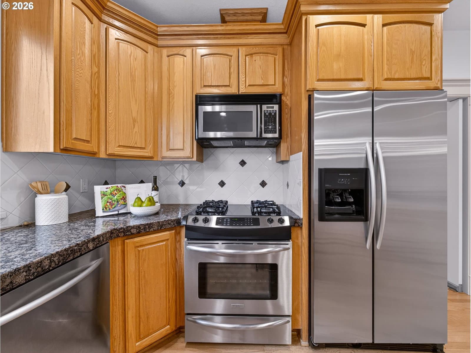 Gas Water Heater, Washer, Dryer, Convection Oven, Dishwasher, Disposal, Free-Standing Gas Range, Free-Standing Refrigerator, Microwave, Plumbed For Ice Maker