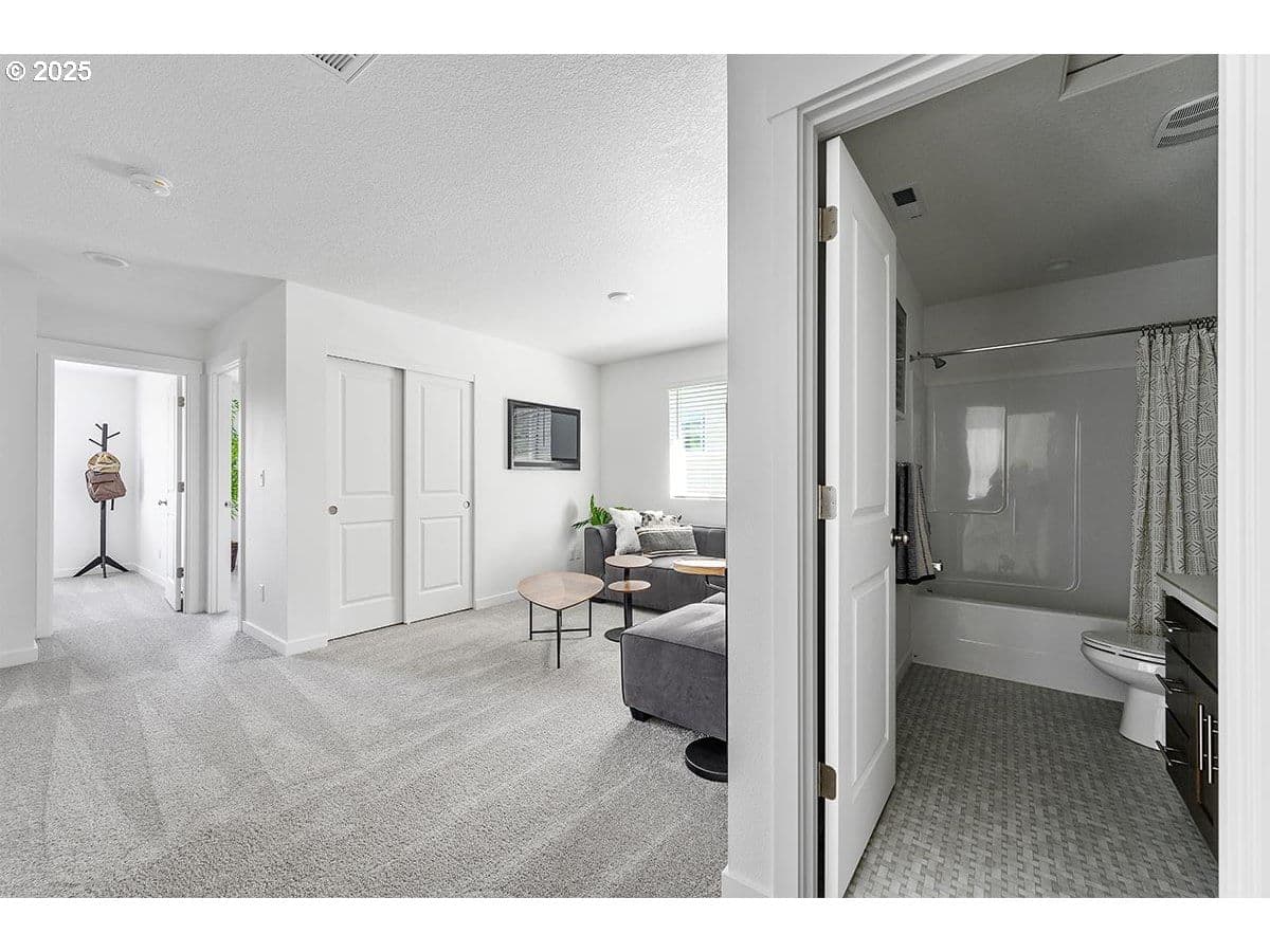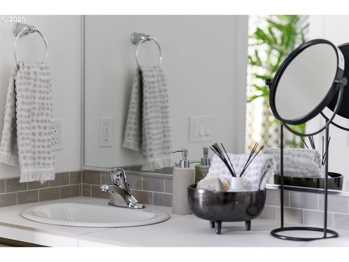 Move in Ready! Discover modern comfort in this 1,670 sq. ft. Craftsman-style home in the serene Faraday Hills community of Estacada. This thoughtfully designed 3-bedroom, 2.5-bath residence boasts an open-concept great room with an electric fireplace, and extended laminate flooring. The kitchen features tile countertops, a pantry, an island, and energy efficient appliances. Upstairs, find a versatile loft, convenient laundry room, two bedrooms, and a primary suite with coffered ceilings, walk-in closet, and luxurious walk-in shower. Enjoy a fully fenced backyard with irrigation, a 10x10 concrete patio with territorial views. Additional highlights include a 2-car attached garage and an energy-efficient heat pump that provides both AC and heat. Perfect for those seeking style, space, and modern amenities in a peaceful setting. Model Home/Sales office open Daily from 10am to 5pm. Sales Office is Located at 3675 NE Claire Rd.