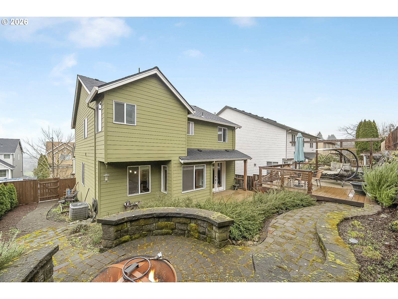 This beautifully maintained traditional in coveted Bull Mountain offers space, comfort, and stunning outdoor living! The well-landscaped yard is a true highlight, featuring multiple entertaining areas- enjoy summer evenings around the built-in fire pit, dine al fresco on the patio, spend time with friends on the elevated deck, or relax on the front porch where, on clear days, you’ll catch peeks of Mt. Hood in the distance. Inside, the spacious main level offers an open-concept living, dining, and kitchen area ideal for both everyday living and entertaining, and features a custom built-in dining bench, hardwood floors, and newer kitchen appliances. Upstairs, you’ll find four bedrooms, including a primary ensuite with a spacious private bath and walk-in closet. The oversized fourth bedroom could be used as a secondary living space, play room, or media room- the choice is yours! The pride of ownership here shows, with a brand new roof, newer furnace (2021), new carpet, and careful maintenance through the years. Enjoy living in this well-loved school district, with both shopping and parks all within a mile.