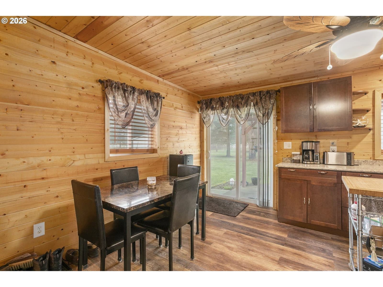 Welcome to this 1.68-acre property, offering a perfect balance of open space and an updated home. The main residence spans 1,512 square feet with 3 bedrooms, 2 updated bathrooms, and two spacious living areas. Inside, you’ll find fresh paint and new wainscoting that complement the new flooring. Both the main home and the additional finished building have been upgraded with all new APEX plumbing for lasting peace of mind. Significant recent improvements also include a new roof with a 30 yr transferable warranty, and two new decks built in 2025—perfect for enjoying the quiet, territorial views and the property's apple, plum, and hazelnut trees.In addition to the main home, the property features a charming finished building with a distinct, cozy cabin feel. The interior is finished with tongue-and-groove throughout, offering a warm and inviting atmosphere. This space includes its own kitchen with granite countertops, living area, bedroom and bathroom, providing incredible flexibility for a guest house, dedicated home office, private hobby studio, or a creative retreat. The grounds are rounded out by a practical tool shed, a two-car metal carport, and dedicated RV parking with a hookup that conveniently connects to the septic system. This is an excellent opportunity for anyone looking for a move-in-ready home with versatile extra space on acreage. Buyer to do due diligence.