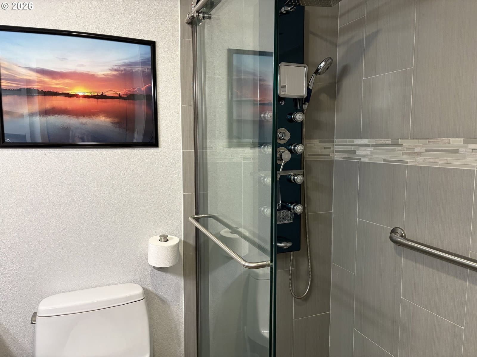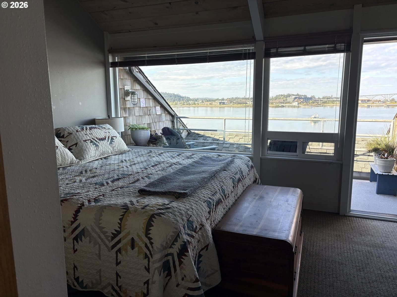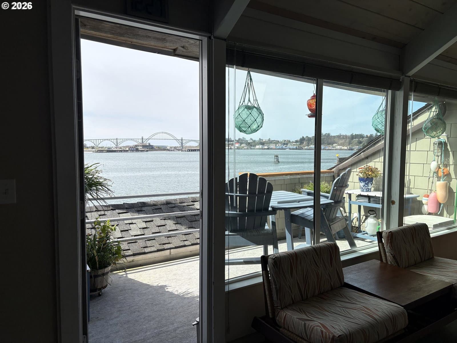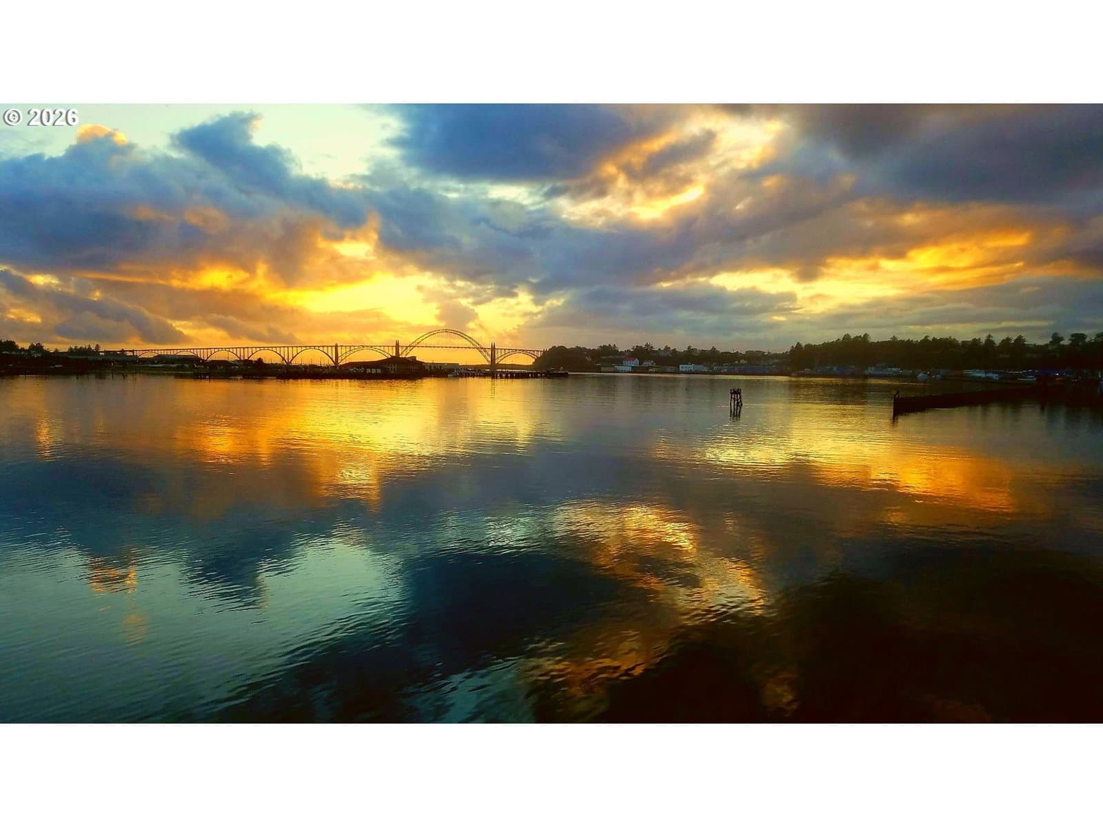 Imagine waking to sweeping views of the Yaquina Bay, Bridge, and Historic Bayfront town. Watching sea lions, seals, pelicans, herons, and eagles in their natural encounters. This end unit has bay windows allowing this view even sitting inside the comfort of your living room. No stairs to enter, ice machine and semi-private pet lawn are steps away. Location, location. Inside, an electric “fireplace” keeps the room cozy and warm. An updated kitchen has modern upgrades. Both bathrooms have heated floors, the downstairs has a walk-in shower, the upstairs you can luxuriate in a deep soaker tub. The primary suite has enough space for a sitting area and an office. A full-sized stacked washer and dryer is next to a utility closet. This unit has never been divided and could be your comfortable family home and/or use as a rental investment. HOA dues will include almost every amenity you could imagine, all utilities, indoor heated saltwater pool, hot tubs, sauna, fitness room, crabbing dock.Visit the Historic Bayfront with unique shops, restaurants, stop and purchase fresh catch of the day from the local fishermen. Continue to the trail by the Coast Guard Station for a walk on the beach.