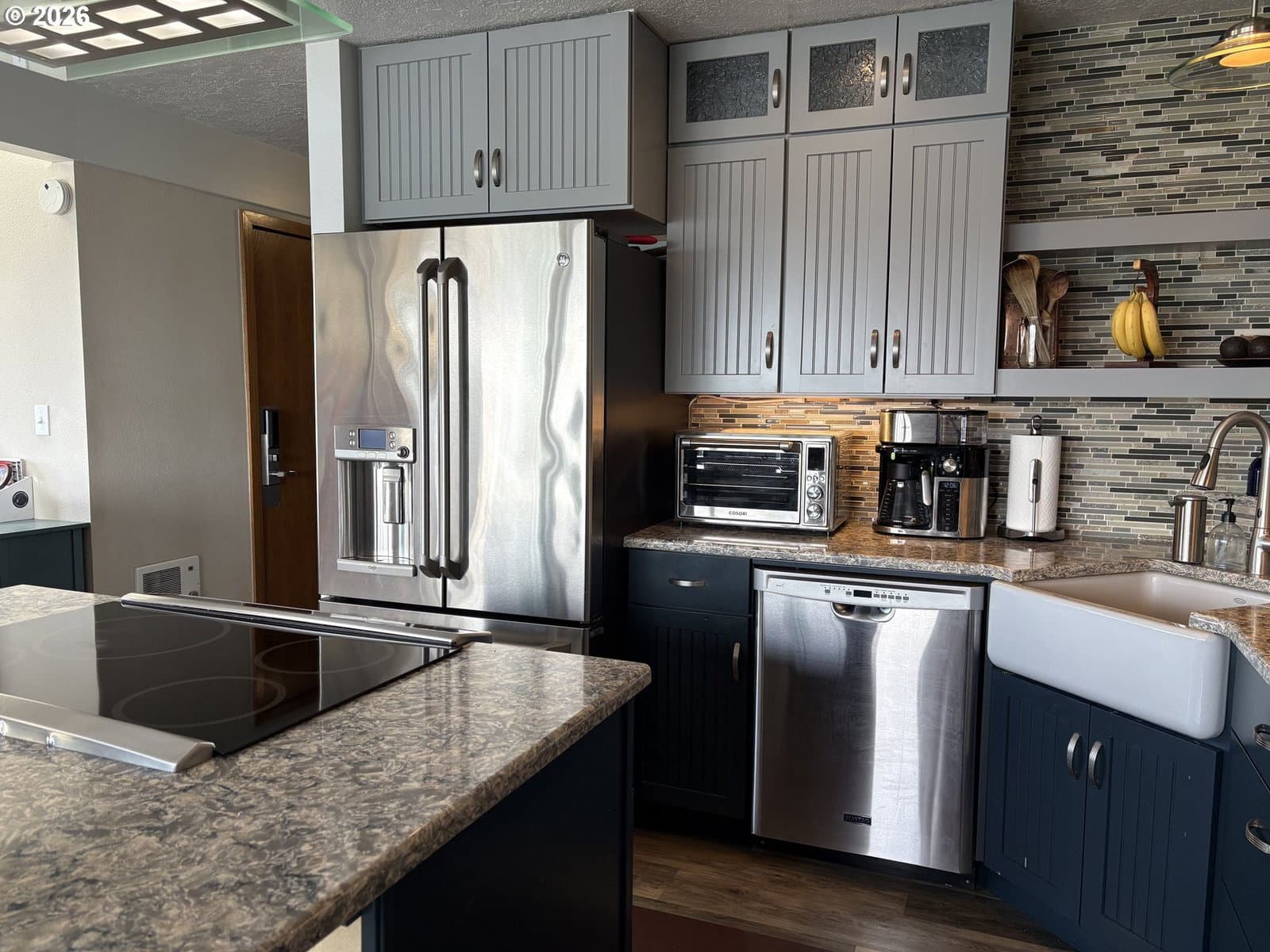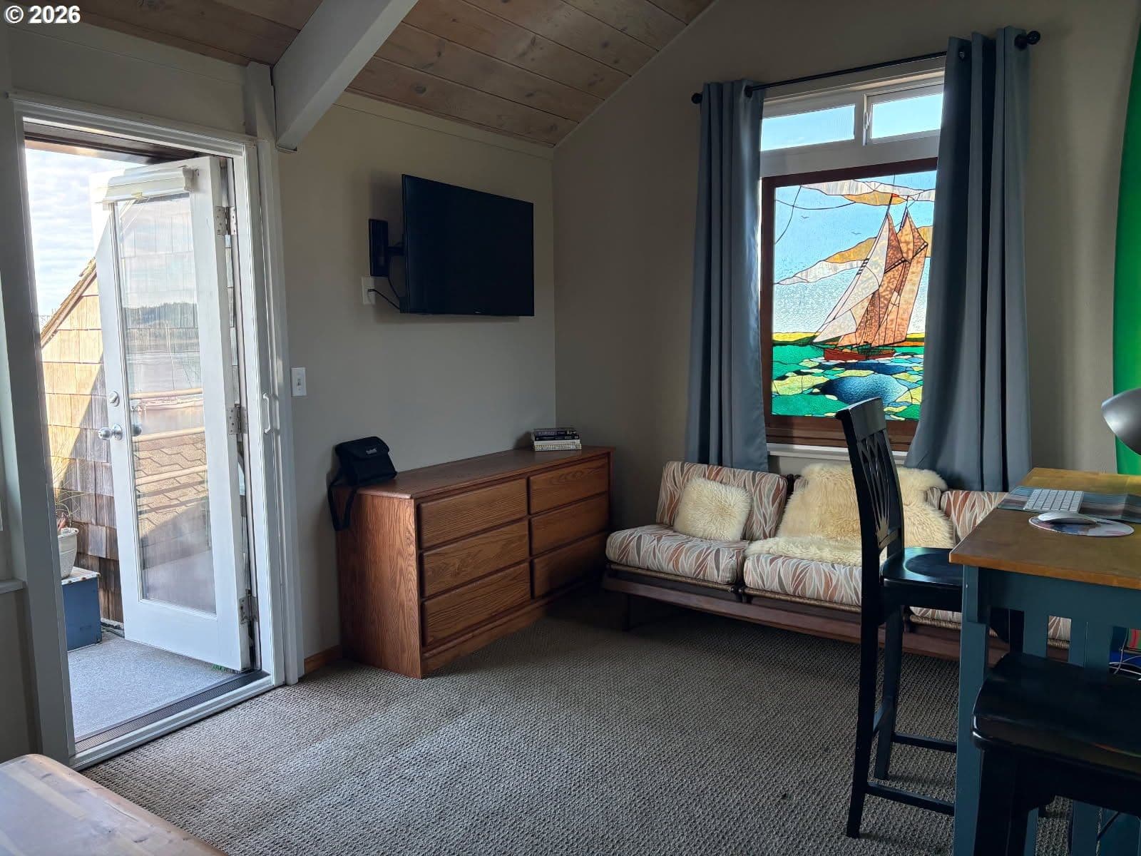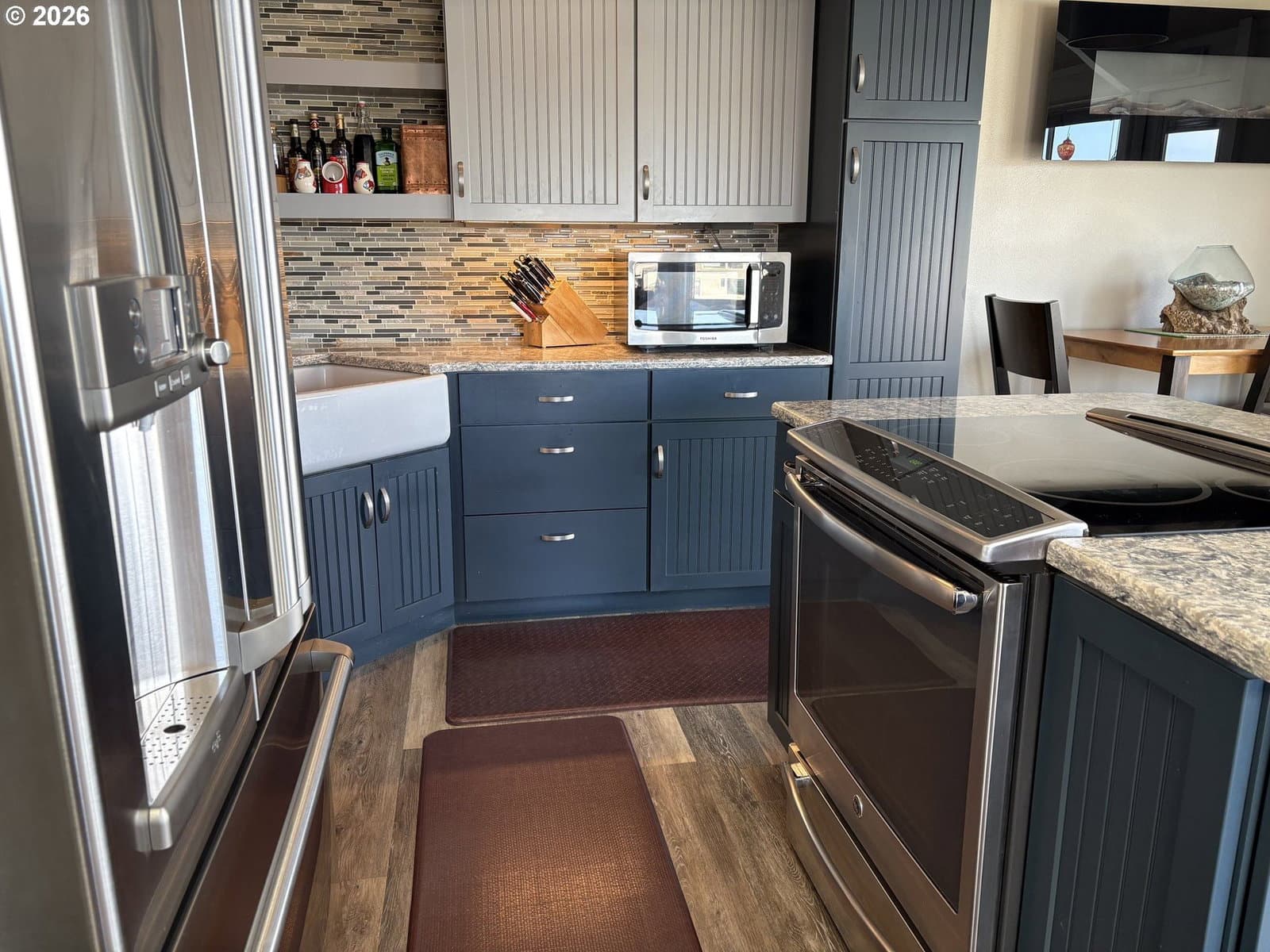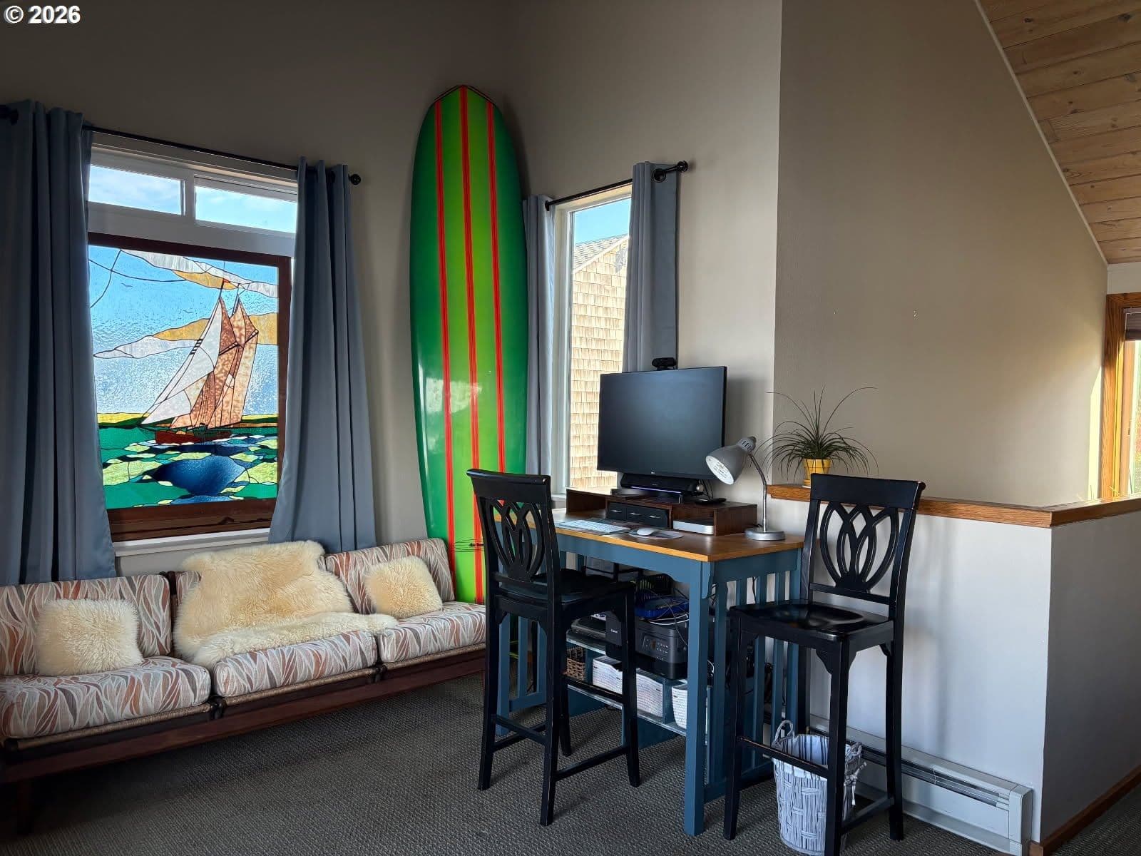 Imagine waking to sweeping views of the Yaquina Bay, Bridge, and Historic Bayfront town. Watching sea lions, seals, pelicans, herons, and eagles in their natural encounters. This end unit has bay windows allowing this view even sitting inside the comfort of your living room. No stairs to enter, ice machine and semi-private pet lawn are steps away. Location, location. Inside, an electric “fireplace” keeps the room cozy and warm. An updated kitchen has modern upgrades. Both bathrooms have heated floors, the downstairs has a walk-in shower, the upstairs you can luxuriate in a deep soaker tub. The primary suite has enough space for a sitting area and an office. A full-sized stacked washer and dryer is next to a utility closet. This unit has never been divided and could be your comfortable family home and/or use as a rental investment. HOA dues will include almost every amenity you could imagine, all utilities, indoor heated saltwater pool, hot tubs, sauna, fitness room, crabbing dock.Visit the Historic Bayfront with unique shops, restaurants, stop and purchase fresh catch of the day from the local fishermen. Continue to the trail by the Coast Guard Station for a walk on the beach.