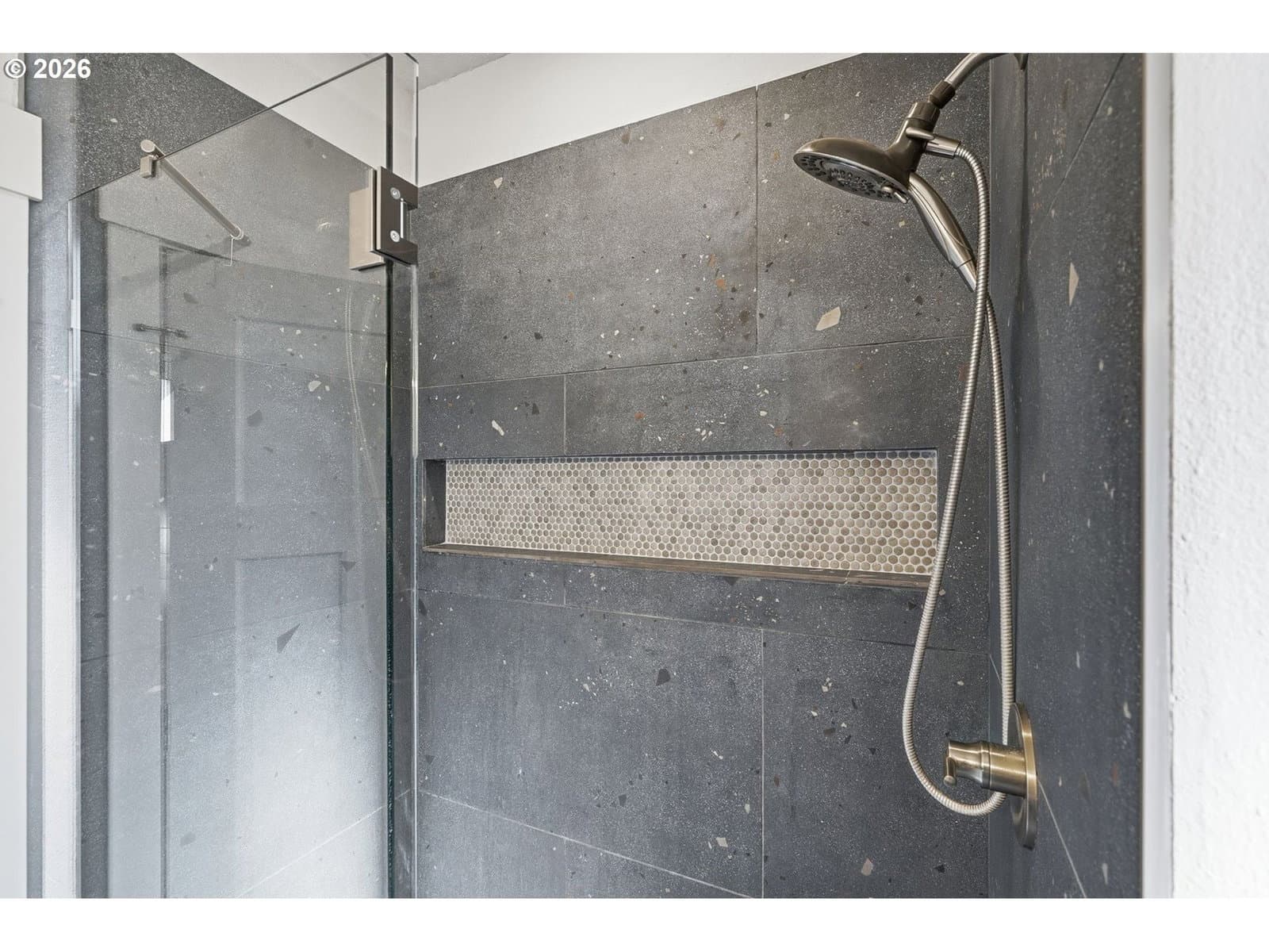 Thoughtfully designed single-level ranch built in 2020 with beautiful finishes throughout. No HOA, and tucked into a small, established neighborhood with no through traffic! The open-concept living space is bright and refined, featuring wide-plank flooring, custom built-ins, and a sleek gas fireplace that anchors the room without overpowering it. The kitchen is both stylish and functional with quartz countertops, stainless appliances, a gas range, and ample counter space with peninsula seating for everyday use. The primary suite is spacious and privately positioned, offering direct access to the covered patio through a separate exterior door, along with an ensuite bath and walk-in closet. Outdoor living shines with a covered patio and beautifully finished stone gas fireplace, creating a seamless extension of the interior living space. An added concrete pad beyond the covered patio provides extra room for entertaining and outdoor gatherings. Beyond the patio, a permanent landscaped greenbelt / water retention area provides lasting privacy and an open, natural backdrop—no rear neighbors, just space and calm. Modern construction, single-level convenience, refined finishes, and a rare private setting combine to make this home a standout! Conveniently located near everyday shopping, major highways, and Portland Airport for easy commuting and travel.