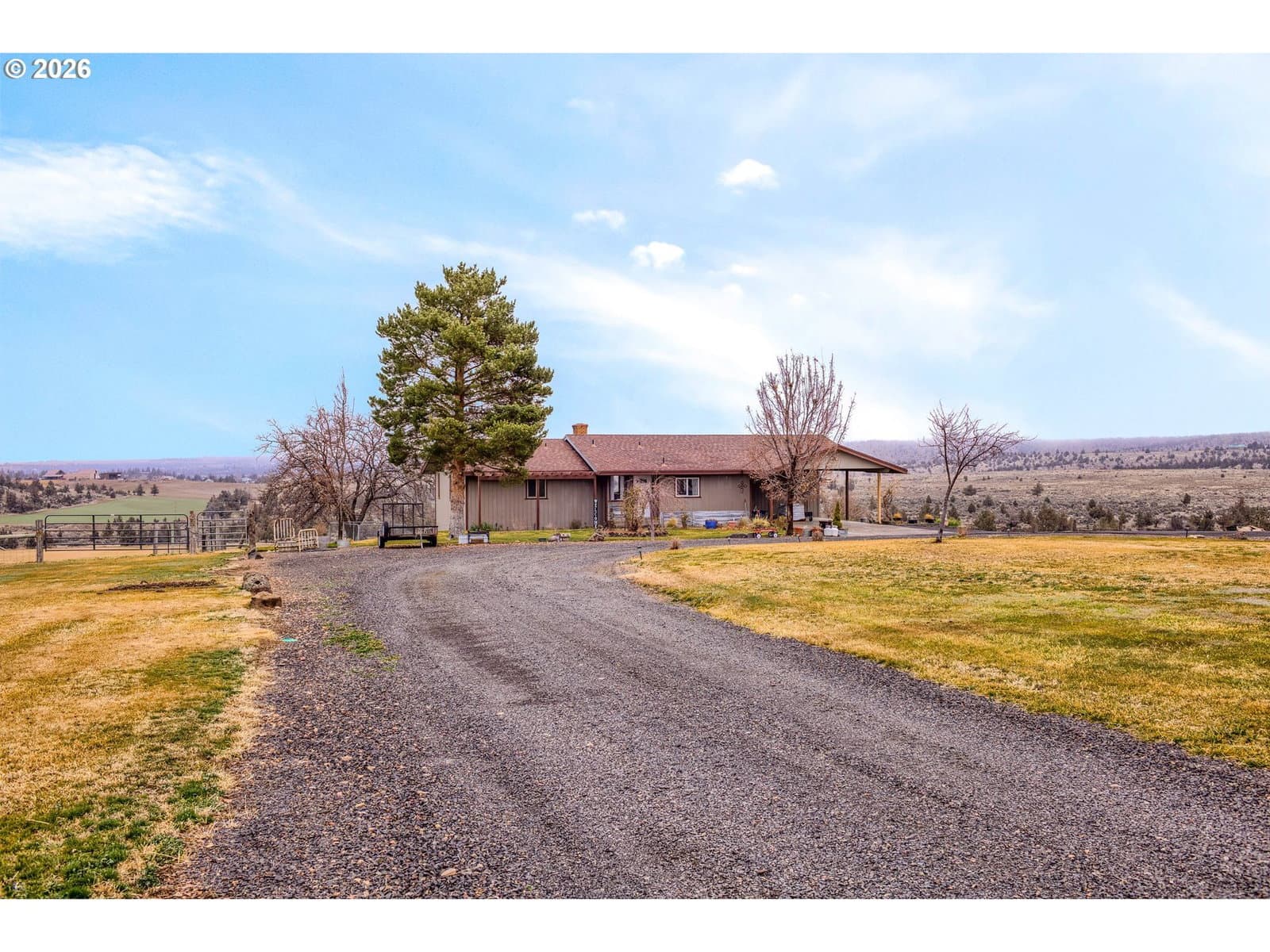 Welcome to SE Dover Lane! Modern living with country charm that Central Oregon offers. Easy access to Madras, Prineville, Redmond. This ranch style home has a full daylight basement with its own private access. 4 bedroom, 2.5 bath home sits on 10.49 acres with 9.7 acres irrigated in second year orchard grass producing over 7 tons of hay. Primary suite on main level with updated bathroom and walk in closet, large living room with big windows and small covered deck to take in the views, guest room, updated guest half bath, remodeled kitchen with new appliances, a versatile mud room/office/sew room that opens up into the 2 car attached carport. Downstairs has two large bedrooms, remodeled bath, storage, laundry room and nice living space with large windows. Outdoors, enjoy mountain views, beautifully landscaped grounds, garden area, hay storage, small livestock stall, fenced and crossed fenced, arena area and a 28x48 shop with heat, water and 220V inside and out, 2 sinks, wood stove, electric garage door with room for possible additional one, piping for air compressor inside shop. Don't miss this opportunity. Owner is licensed Oregon Realtor. Possible partial seller financing, priced to sell and looking at all offers. Built in double ovens, microwave, dishwasher and Induction cook top, butcher block countertops, tile back splash, disposal, plumbed for ice in frig and deep Farm Style white sink. Free standing Fireplace, underground sprinklers, new pellet stove. All Hand Line pipe and Main line pipe on property is included. Pond is off of Dover lane and has it's own pump shed, power meter pump and pipe. Water pond is shared with immediate neighbor. Pond is on Dover Ln. away from property, power meter is in owner's name, pump is co-owned with immediate neighbor including maintenance. No unit states recorded easements to pond; just not from pond to property; main lines owned independently.