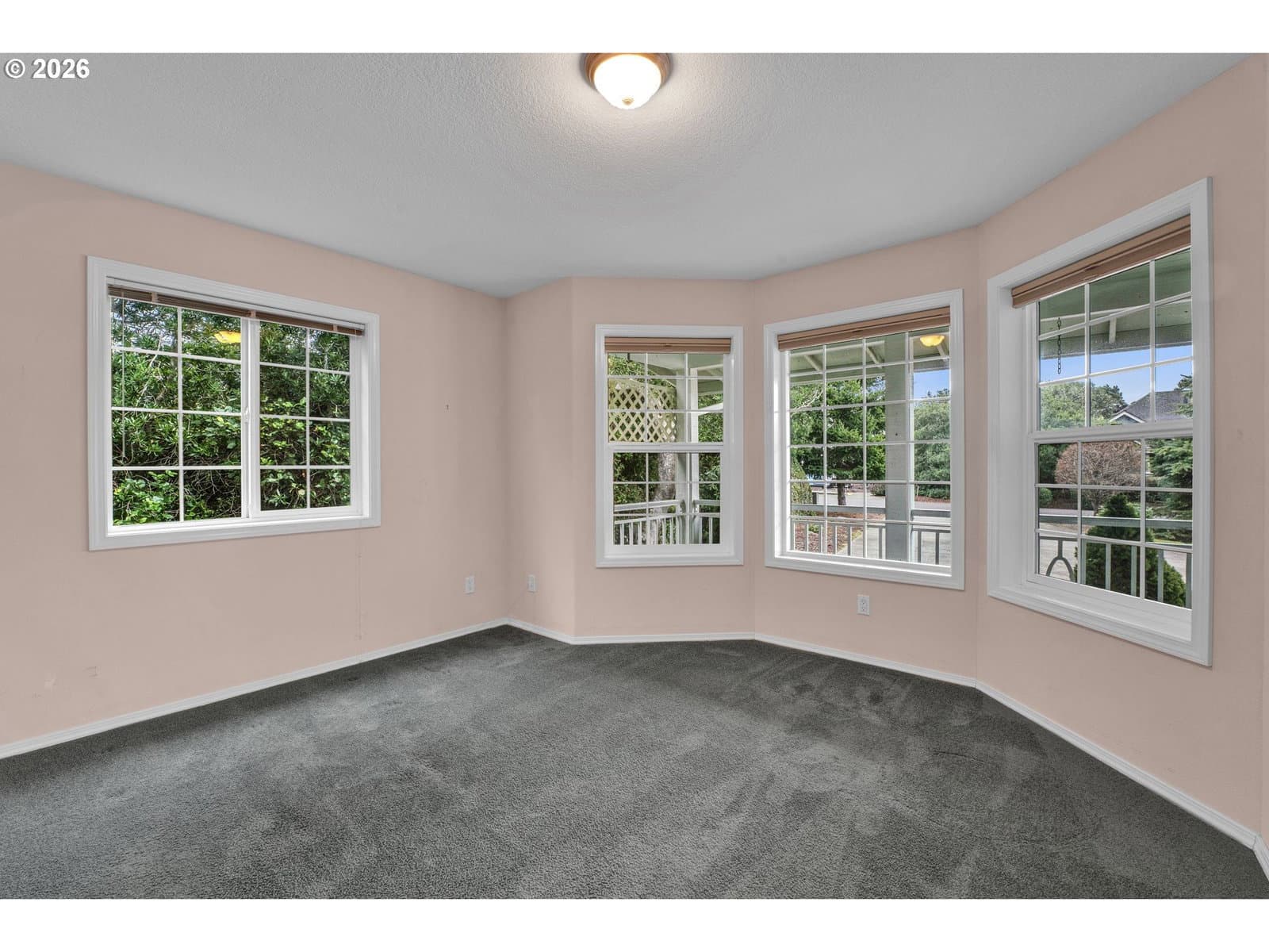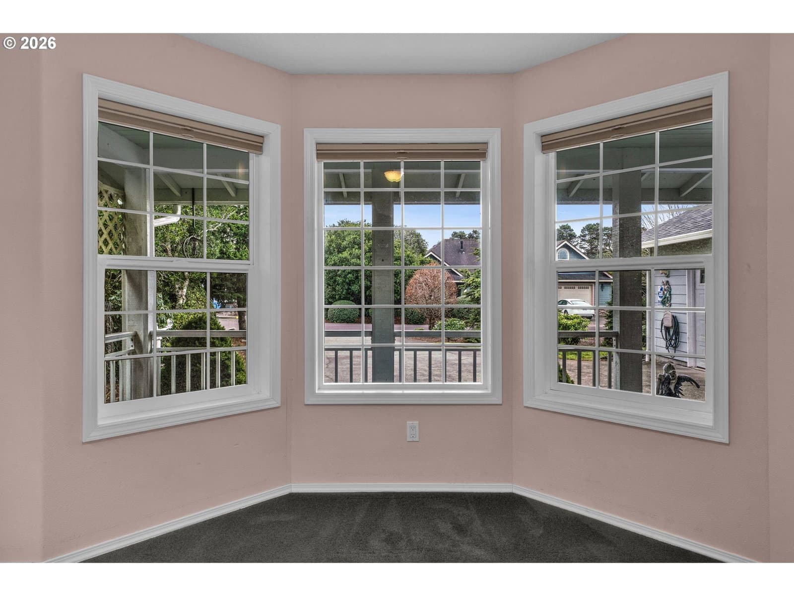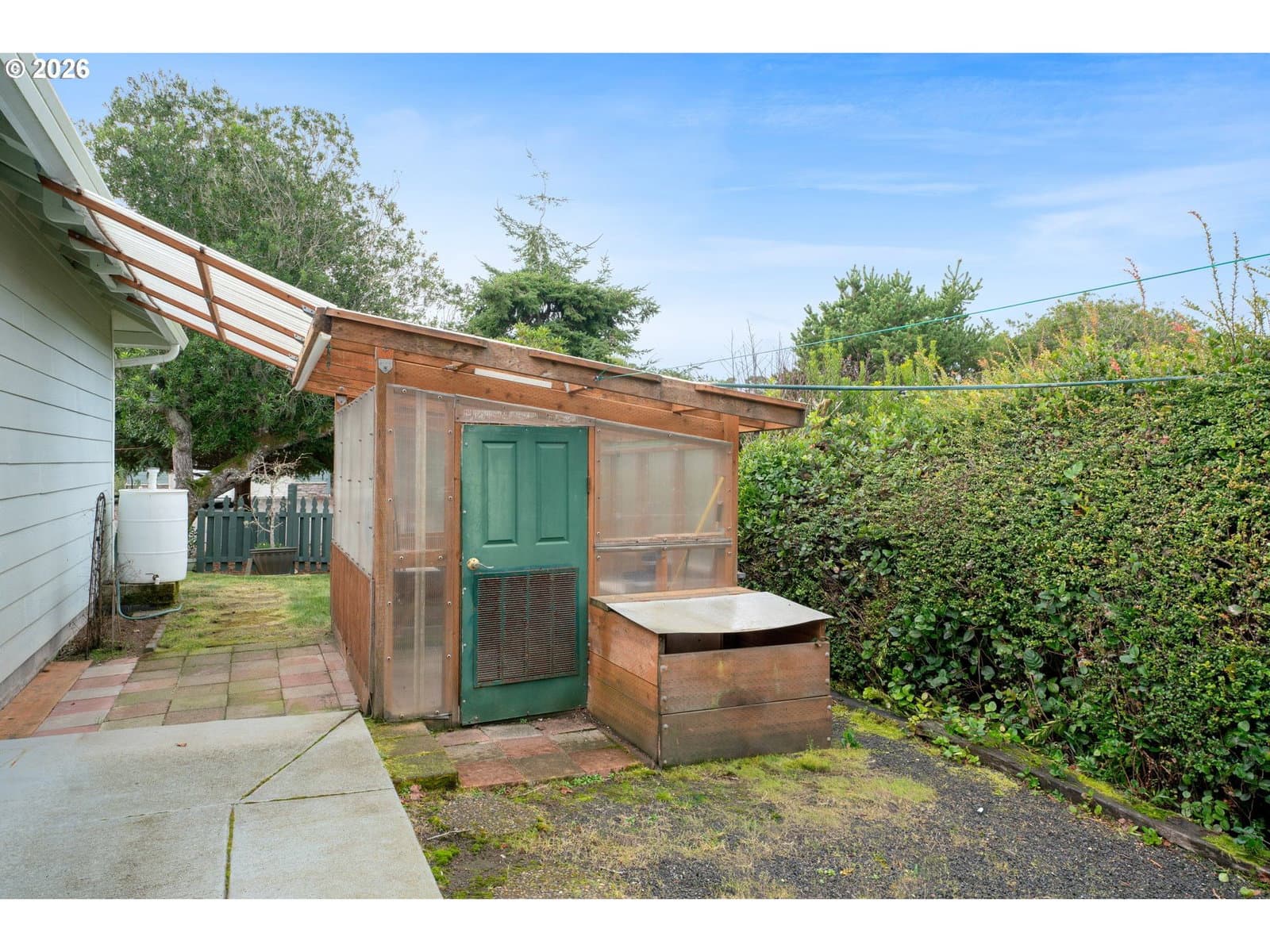 Located on a quiet cul-de-sac in the desirable Idylewood development in Florence’s beach area, this well-designed 3-bedroom, 2-bath home offers 1,735 square feet of comfortable living space with thoughtful separation of rooms and inviting coastal charm. Built in 2004, the home welcomes you with a large covered front porch and wood-floor entry that leads into a vaulted living room featuring skylights, a propane fireplace, and a sliding glass door to the backyard patio. The open floor plan flows seamlessly through the dining area and kitchen, where maple wood floors, a breakfast bar, ample cabinetry, and generous counter space make everyday living and entertaining easy. The primary suite is privately situated with vaulted ceilings, its own sliding glass door to the patio, a spacious walk-in closet, and an en-suite bath with dual sinks and a step-in shower. On the opposite side of the home are two additional bedrooms, including one with a charming bay window, along with a second full bath. Carpeted living and bedroom spaces add warmth, while the laundry room with sink and oversized garage provide practical convenience. The backyard features a patio and shed, completing this well-rounded home in a peaceful coastal neighborhood.