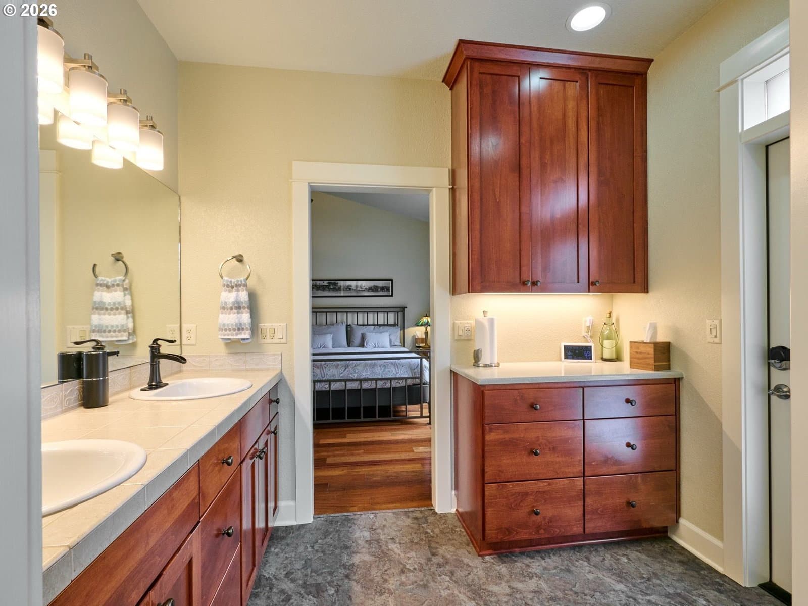 Custom Built, Updated, Turn Key & Move-In Ready home in the desirable Abiqua Heights. Brazilian Cherry Cabinets, Built-Ins, & Hardwood floors. ADA features: Railings into house, Wide Hallways, Step-In Shower w/fold down Seat & Grab Bars. Garage has tandem 3rd car bay filled w/lots of metal shelving & workbench. Hot Tub w/o-zone purification and privacy surround that includes pull down shades. New Roof to be installed prior to closing. 1-Year First American Home Warranty included! Abiqua Heights is a small planned community of just over 150 custom lots nestled in the foothills of the eastern Willamette Valley town of Silverton, Oregon.