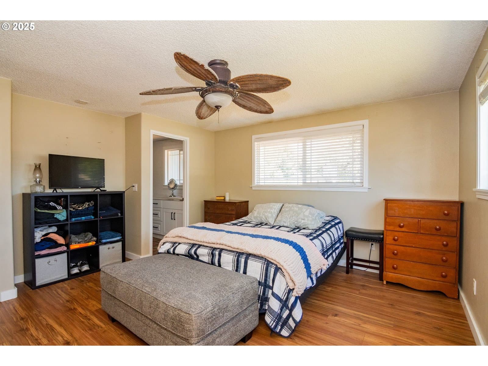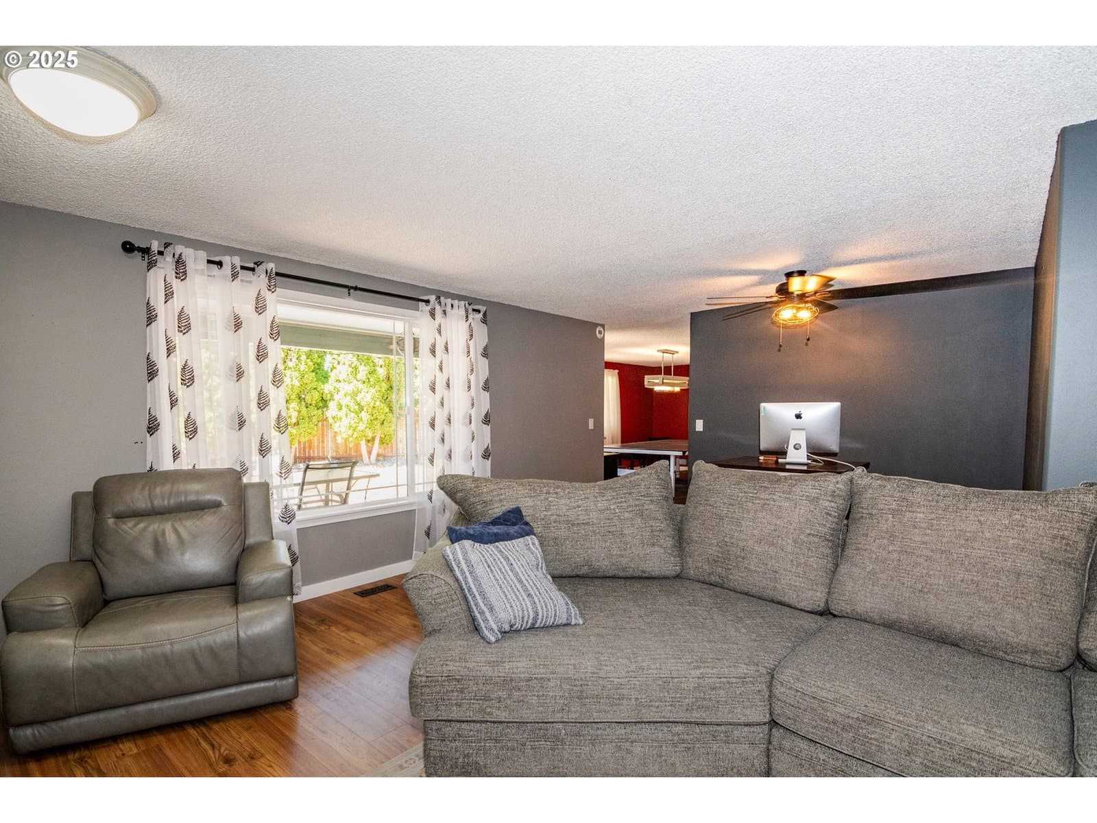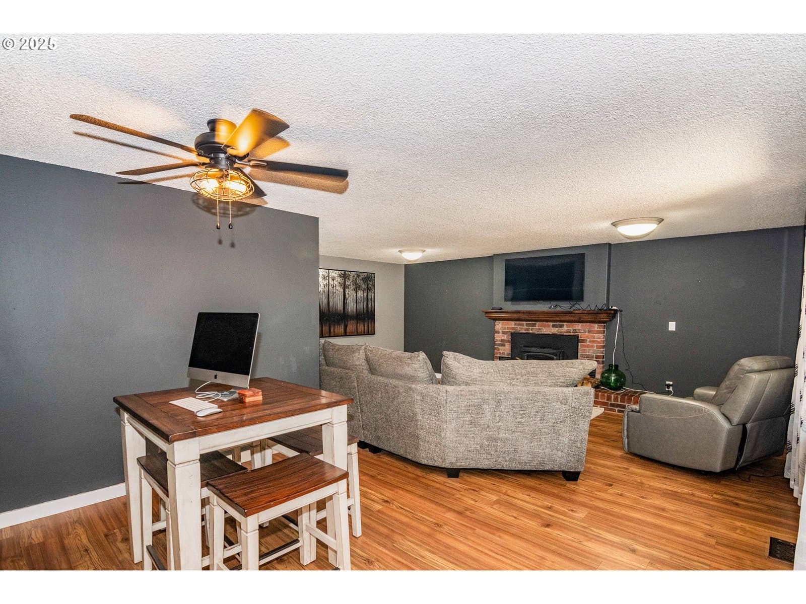 Well-maintained one-level home with a spacious layout and a huge backyard designed for entertaining. Enjoy a covered deck, firepit, and hot tub-ready setup, plus plenty of space to garden or play. Inside, wood flooring flows throughout 3 bedrooms, including a primary suite with ensuite bathroom. The open-concept kitchen connects seamlessly to the dining area, while the oversized living room with a cozy fireplace creates the perfect gathering space. A warm, inviting home ready to enjoy!