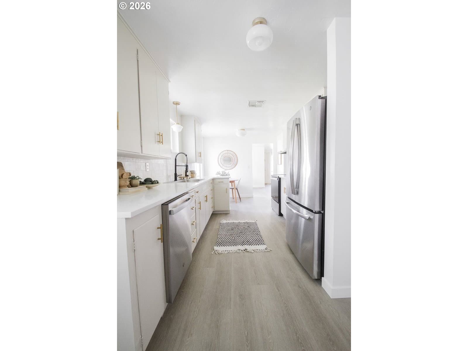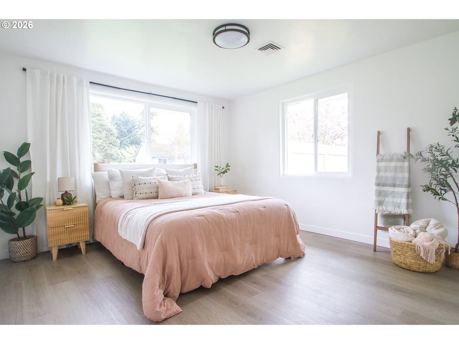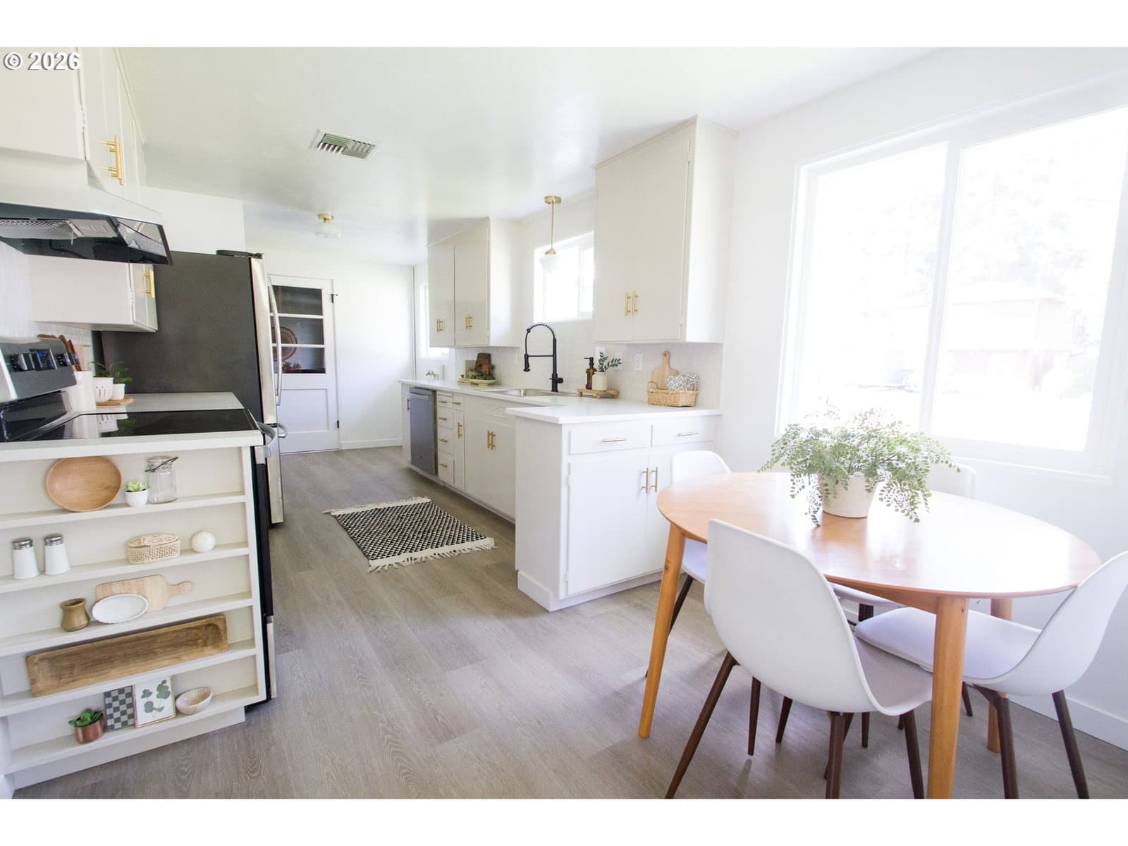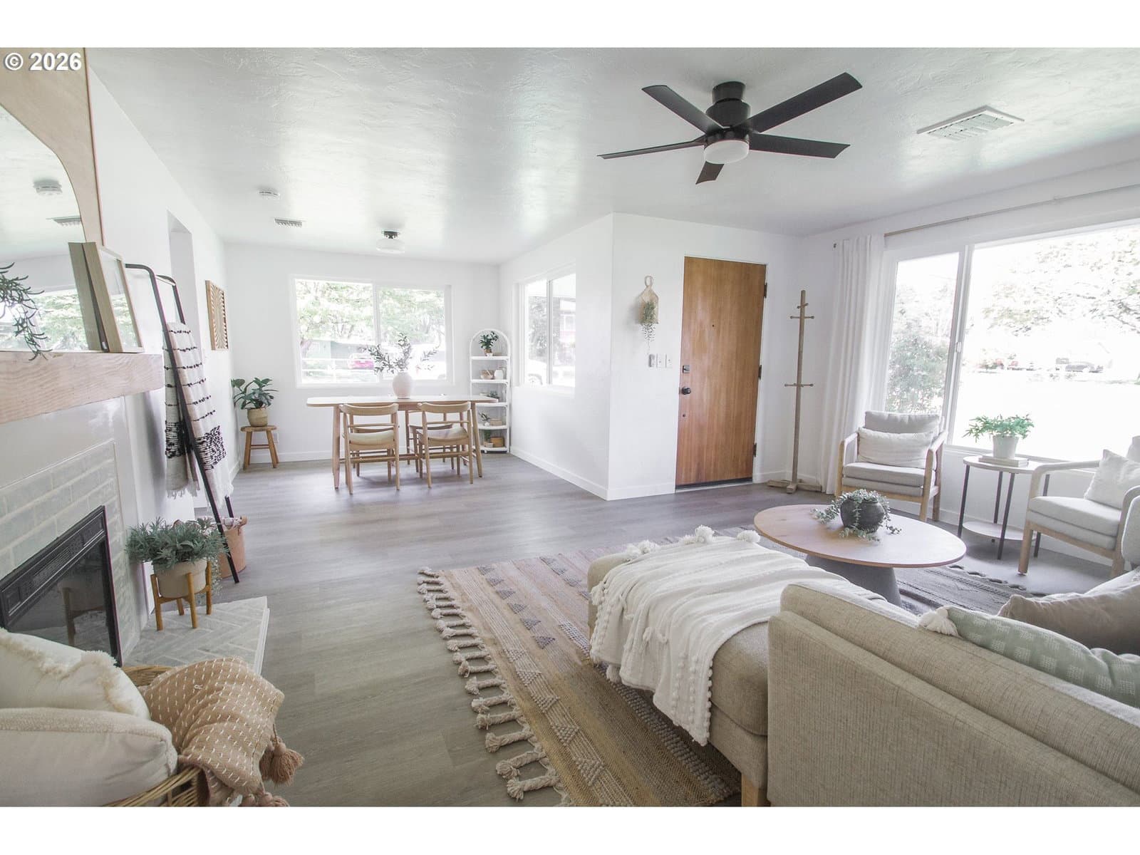 Updated and move-in ready, this single-level ranch style home offers 3 bedrooms, 1 bathroom, and 1,196 sq ft of thoughtfully refreshed living space in a highly convenient Eugene location. Recent upgrades include new flooring, fresh interior and exterior paint, and new windows, along with a newer roof and HVAC system for added peace of mind and comfort.Situated on a large corner lot, the property provides added space and flexibility, along with a fully fenced yard ideal for outdoor living, pets, or gardening. RV parking adds valuable convenience for extra vehicles, trailers, or recreational use.Enjoy quick access to freeways, schools, public transportation, airport, making commuting and daily travel simple and efficient.A true move-in ready updated home with strong functionality, major system updates, and a prime corner lot location—ready for its next owner.