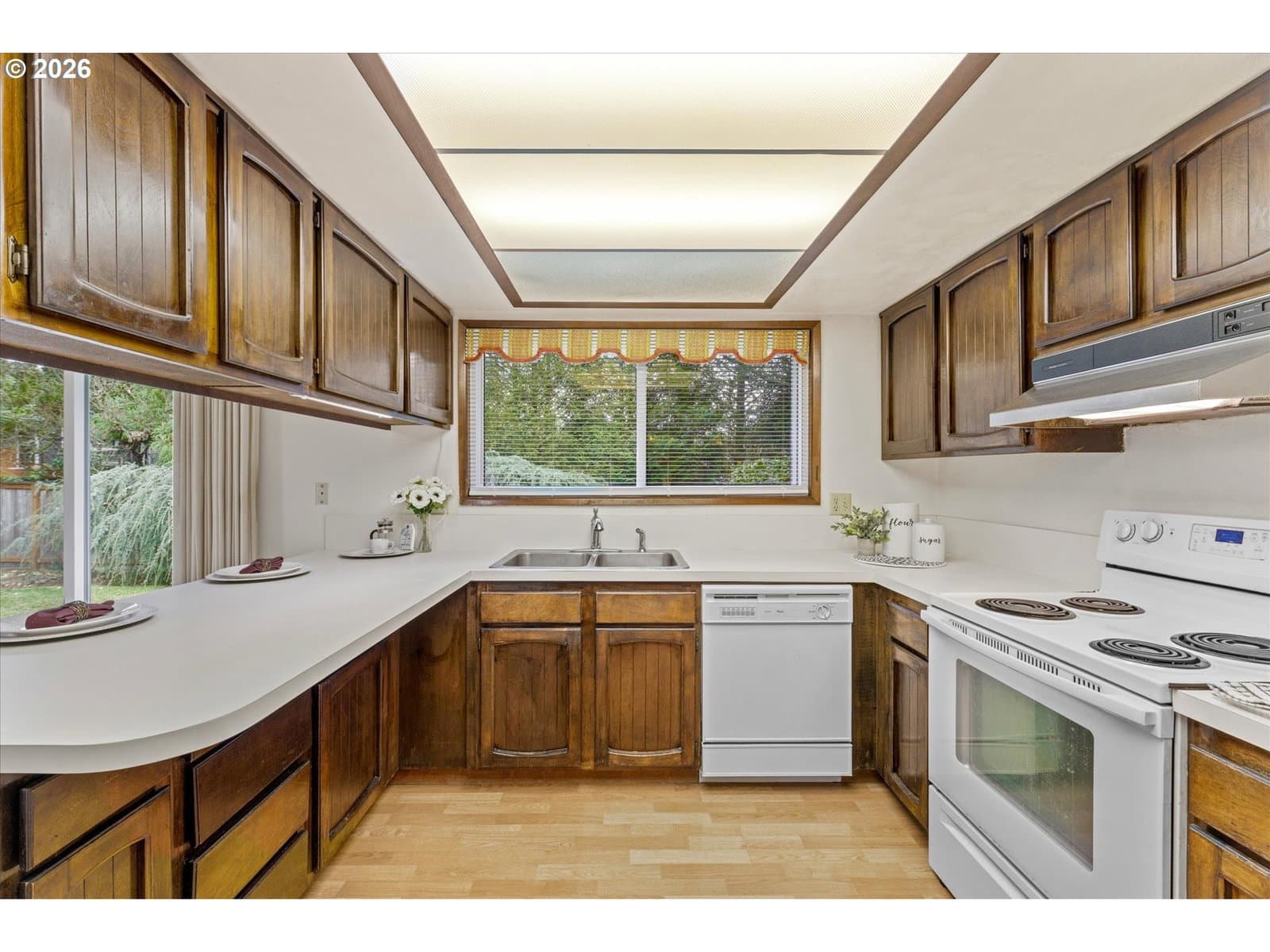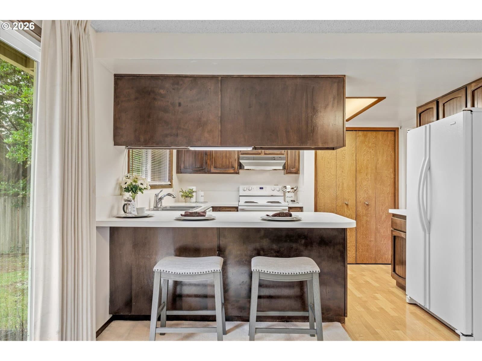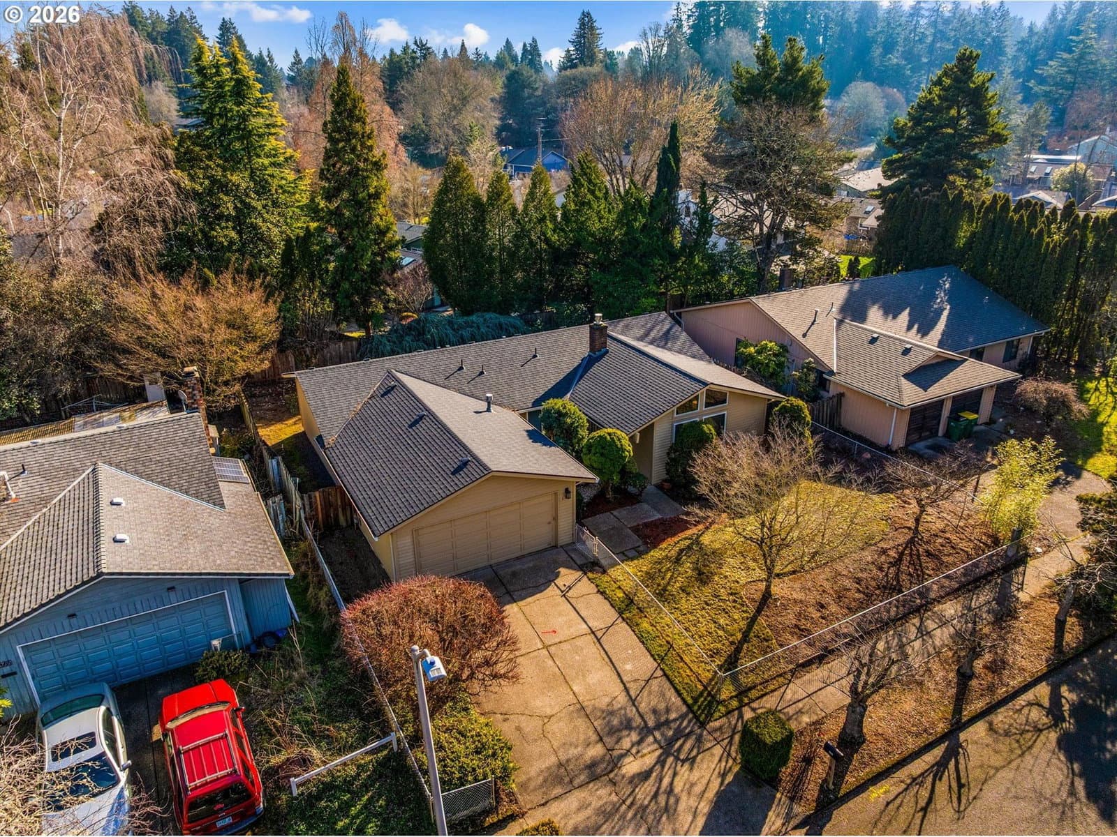Coveted Single Level Home in Hyland Hills! Built in 1977 this spacious, 3 Bedroom/2 Bathroom, home has been lovingly cared for by the same Family for over 45 years! After entering through the front courtyard w/Japanese inspired garden, you are greeted with the Vaulted Living Room w/beamed ceiling & floor to ceiling windows. From there the Living Room opens to the Formal Dining Room which opens to the Kitchen, complete w/all appliances, plenty of cabinets, pantry & large eat-at bar, perfect for informal dining. Off the Kitchen is the Family Room w/cozy gas fireplace & slider to backyard patio. Large Primary Suite w/room for a King Size Bed features 2 Closets & attached Bath. 2 additional Spare Bedrooms & Full Hall Bath. Hallway glows w/light from the floor to ceiling windows overlooking the front courtyard. Interior Laundry closet includes Washer & Dryer. 2 Car Oversized Garage w/built-in Storage. Private, level 6970SF fenced lot, w/mature plantings, patio & grassy area, perfect for play, entertaining or gardening. Updates include AC 2025, Furnace 2024, Roof 2023 & Windows 2014. In the heart of it all, close to parks, schools, shopping, Downtown Beaverton, Washington Square, Progress Ridge, Murray Hill & much more…
