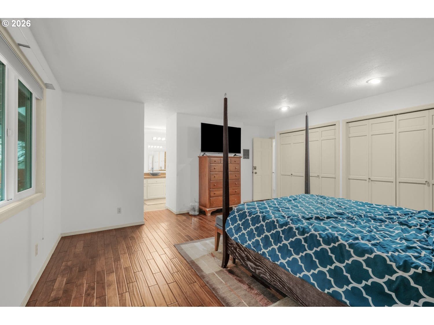 Stunning upscale contemporary home set on a private .24-acre lot surrounded by mature trees and territorial views. Bright and airy with vaulted ceilings, floor-to-ceiling windows, and gorgeous hardwood floors throughout. This home is designed for effortless living and entertaining. The inviting living room features soaring ceilings and a dramatic stacked-stone wood-burning fireplace. Chef’s kitchen offers stainless steel appliances, eat-bar seating, pantry, and seamless flow to gathering spaces. Spacious family room showcases another fireplace, vaulted ceiling, custom built-ins, and a wet bar that's perfect for hosting. Indoor-outdoor living shines with two sets of sliders from the family room to a private patio and a large 41x13 covered deck overlooking the in-ground pool and hot tub. Fully fenced backyard provides exceptional privacy with raised garden beds and room to relax or play. Main-level primary suite includes double closets, private bath with dual vanity, and direct access to the covered deck and pool. Second bedroom on main level is ideal for a private office or guest space. Upstairs features two generous bedrooms, a full guest bath, and a versatile bonus room with skylight that's perfect for a media room, guest retreat, or creative space. Ideally located close to dining, shopping, schools, neighborhood parks, and nature trails. A rare blend of privacy, style, and lifestyle, this home truly has it all.