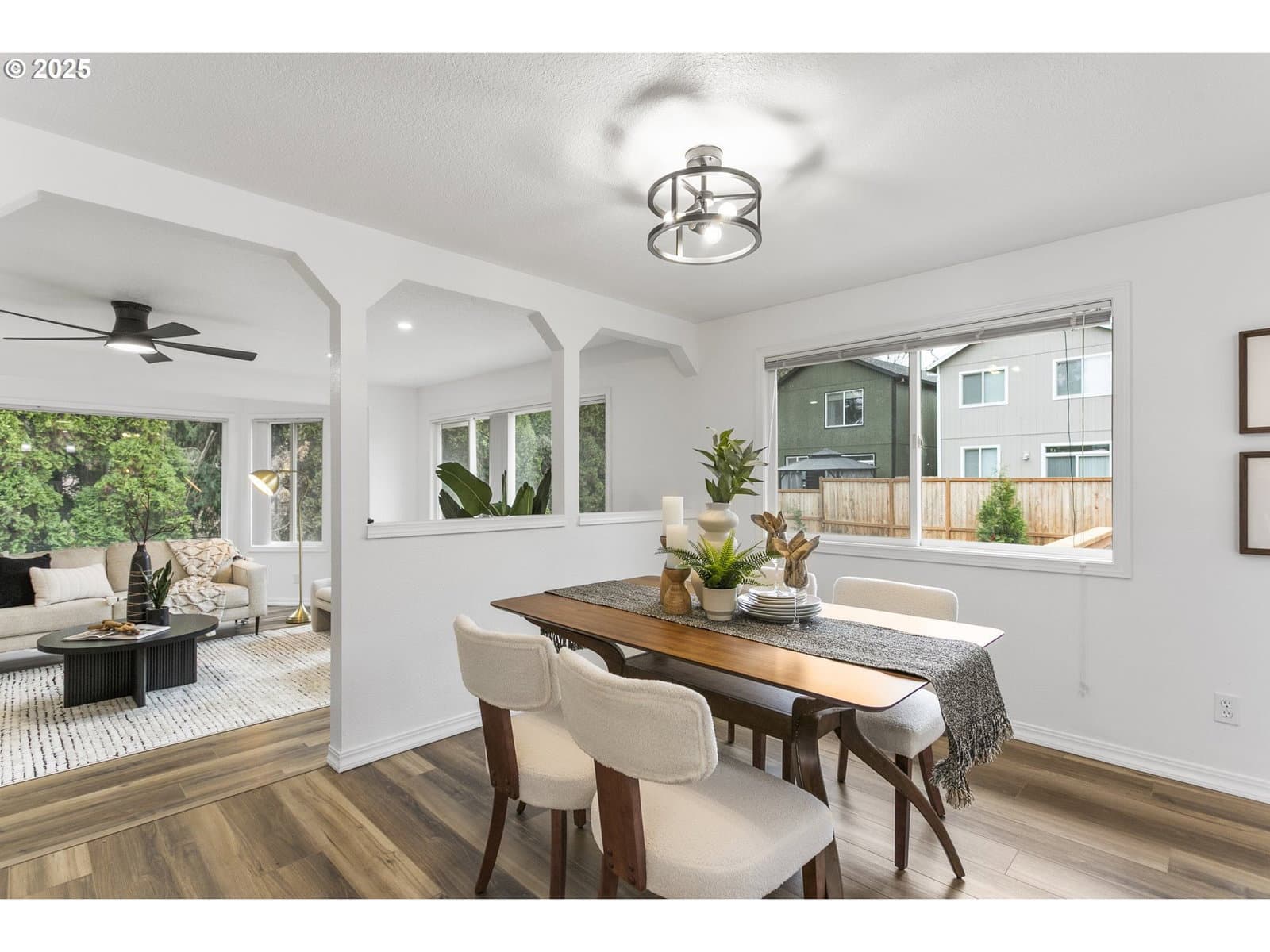Offer deadline of 2/28/2026 @ 5:00 p.m.!!! Step inside this beautifully renewed 3-bedroom, 2-bathroom home where modern design is paired with warm, comfortable living and a BRAND NEW ROOF. Abundant windows brighten every room, highlighting the fresh finishes and creating an inviting, airy feel throughout. The main level features wide-plank luxury vinyl flooring, adding both durability and style as it connects the living, dining, and kitchen spaces seamlessly. At the center of the home is a kitchen designed to bring people together. The oversized island with sleek 3mm quartz countertops offers plenty of space for meals, conversations, and everyday routines. Clean white cabinetry, matte black hardware, and a textured black tile backsplash give the space a polished, contemporary character that feels both fresh and timeless. The primary suite is a standout, featuring a custom accent wall and an elegant ensuite with warm gold fixtures, a marble-inspired shower, and a thoughtfully designed vanity. Two additional bedrooms offer flexibility for guests, work, or play, each updated with soft carpeting, modern lighting, and large windows. The second full bath boasts a dual-sink vanity and striking deep-blue tile that adds depth and personality. Out back, the spacious yard is ready for relaxation or gathering, complete with an inviting outdoor fire-pit that creates a comfortable spot for evenings under the open sky. Every space in this home has been refreshed with intention, offering a move-in-ready blend of function, style, and comfort. This isn’t just an updated home—it’s a welcoming place to settle in and make your own.