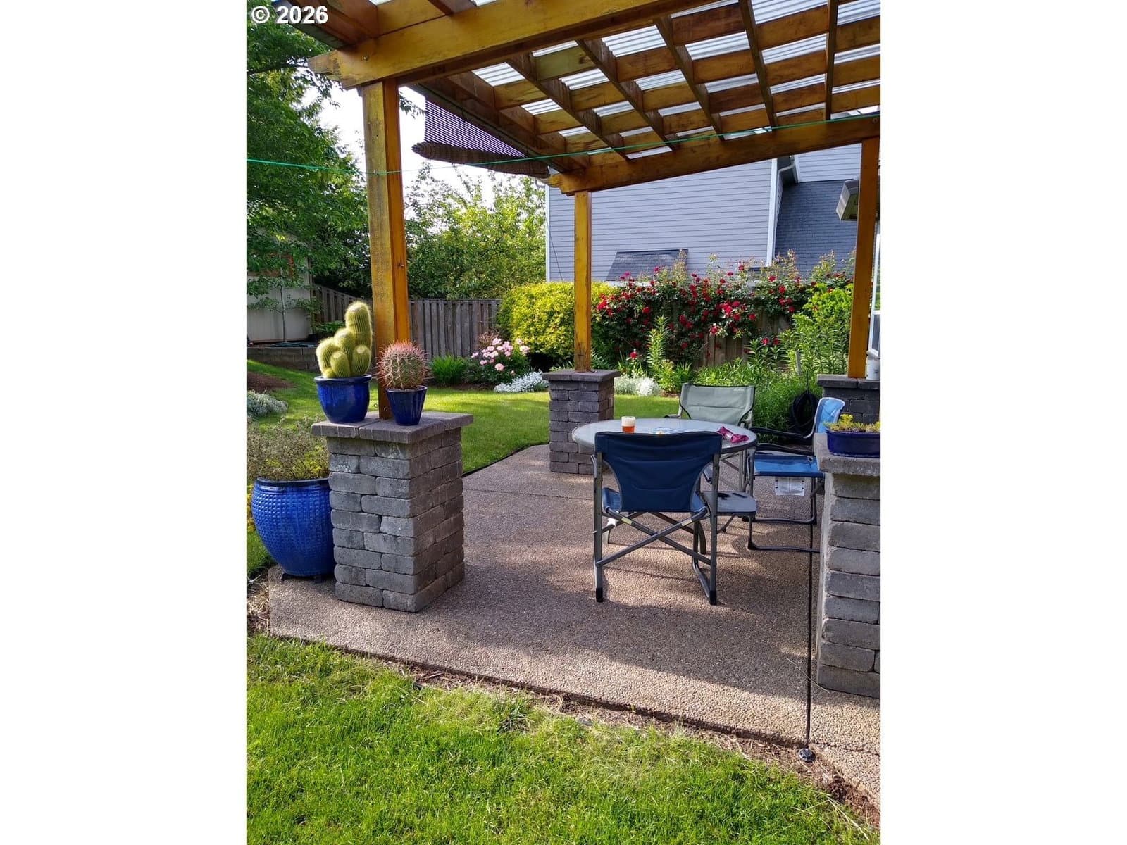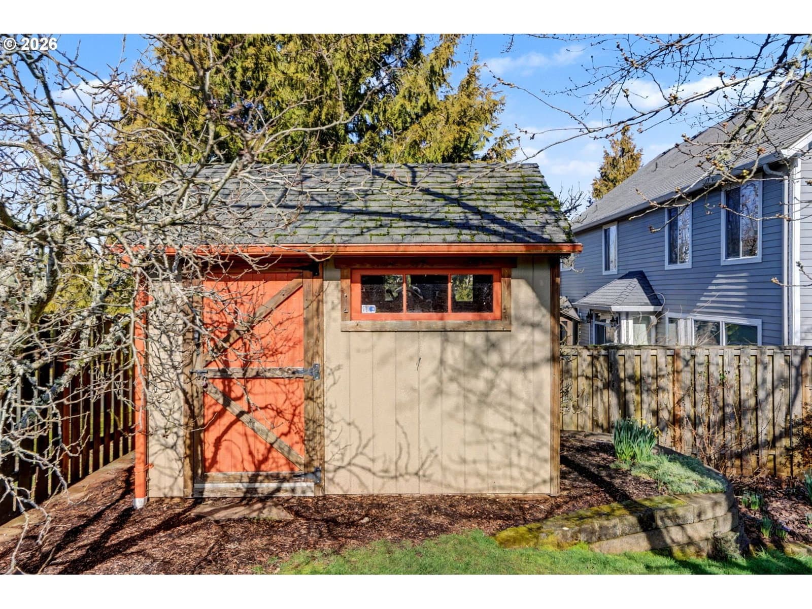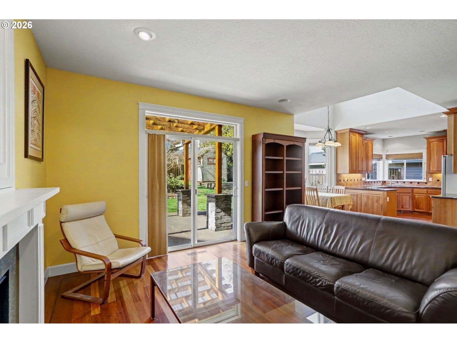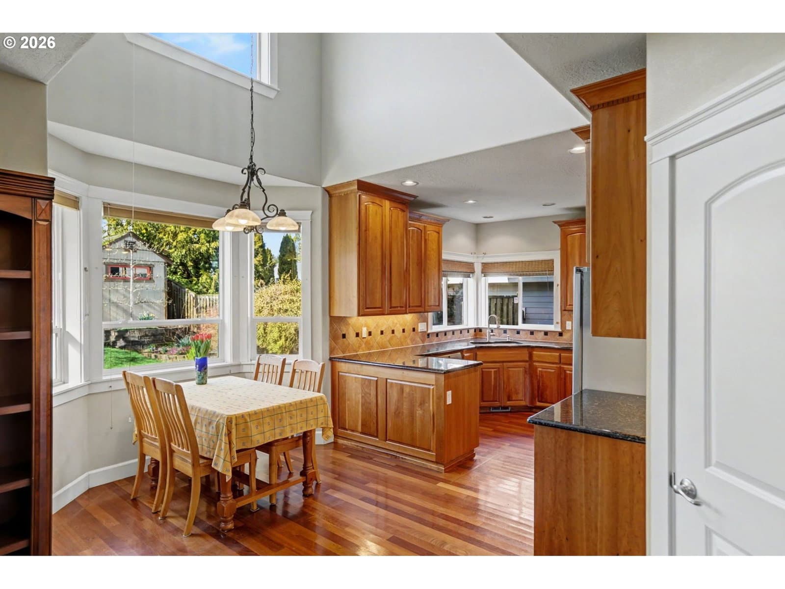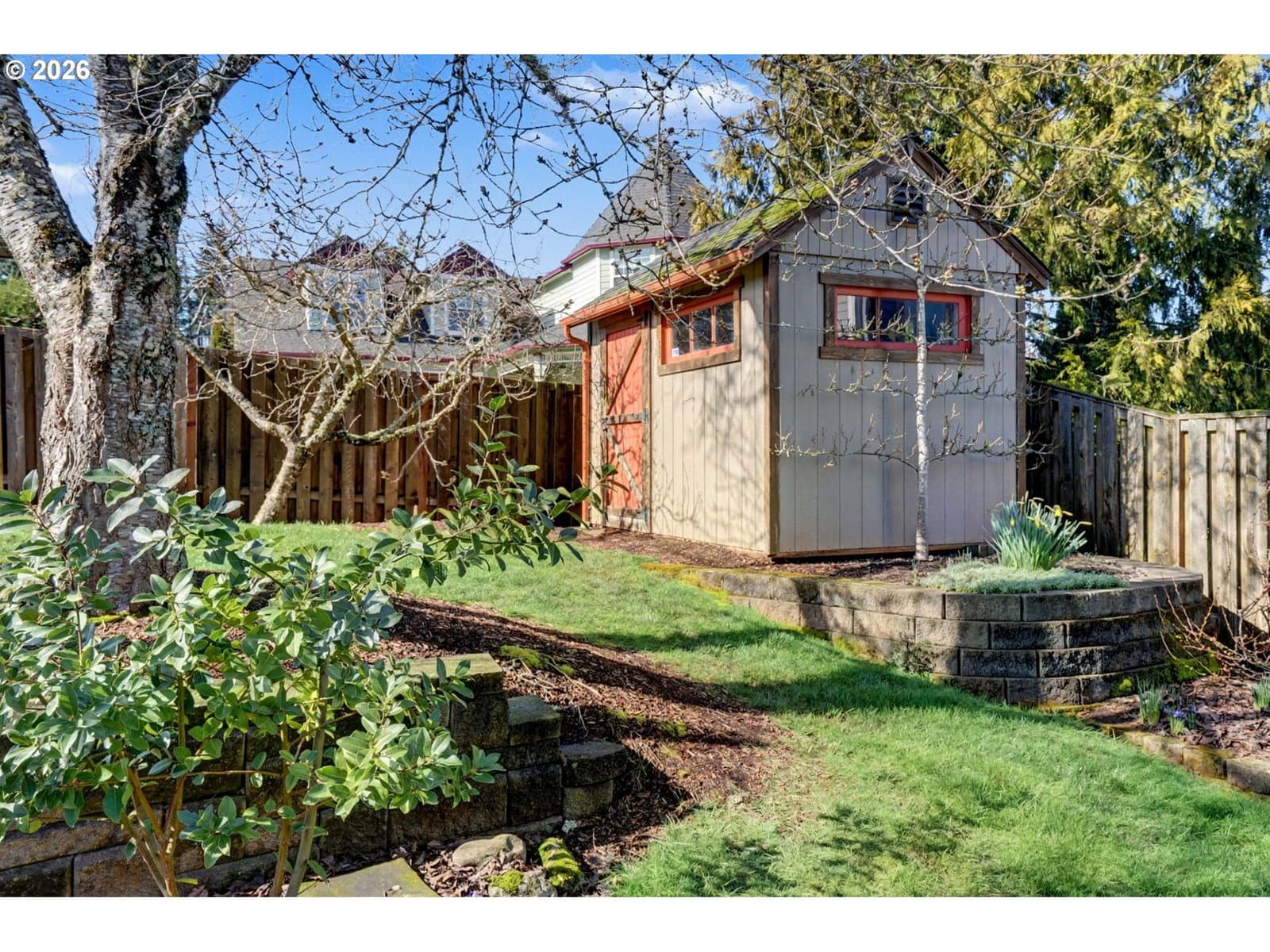 Well-maintained and very energy efficient 4 bed, 2.5 bath home offering 2,627 SF on a quiet cul-de-sac. Flexible layout includes a main floor bedroom, formal living & dining rooms, and both living and family rooms, each with gas fireplaces. Light-filled nook off the gourmet kitchen featuring granite countertops, cherry cabinetry, stainless Frigidaire appliances, and a walk-in pantry. Cherry cabinets continue throughout the bathrooms and laundry room for a cohesive, high-quality finish. Hardwood flooring on the main level. Spacious bonus room provides ideal space for media, office, or playroom. Primary suite features a walk-in closet, jetted tub, walk-in shower, and vaulted sitting/retreat area. Dual heating and cooling systems provide efficient comfort year-round. Central vacuum and central speakers included. The backyard is a true highlight with seven raised garden beds, fruit trees, grapevines, and abundant flowering plants, all within a fully fenced and beautifully landscaped setting. Covered patio, sprinklers, garden shed, and plenty of space to relax or entertain.